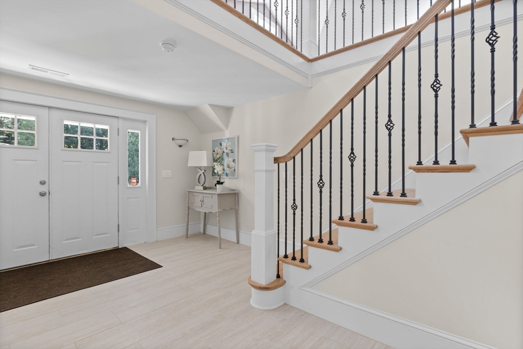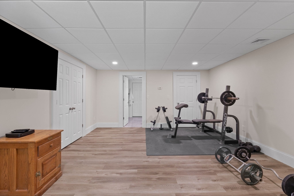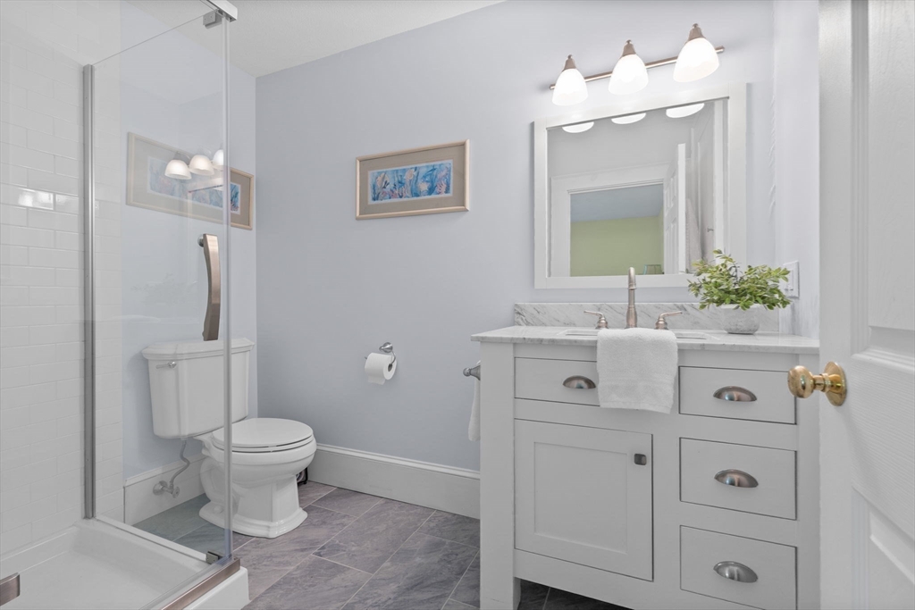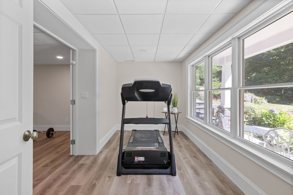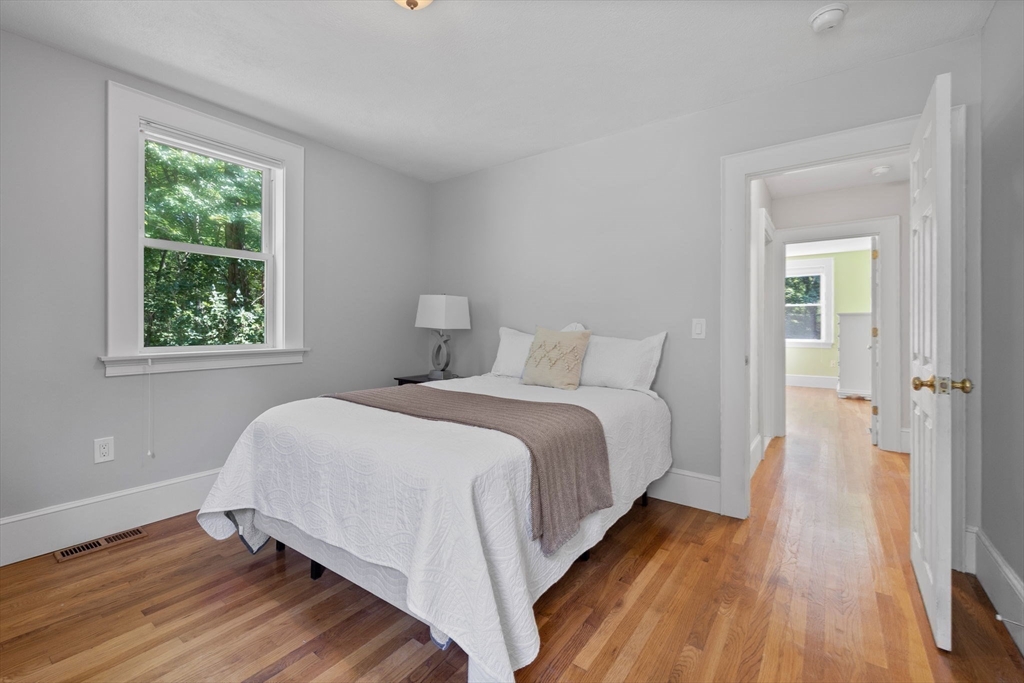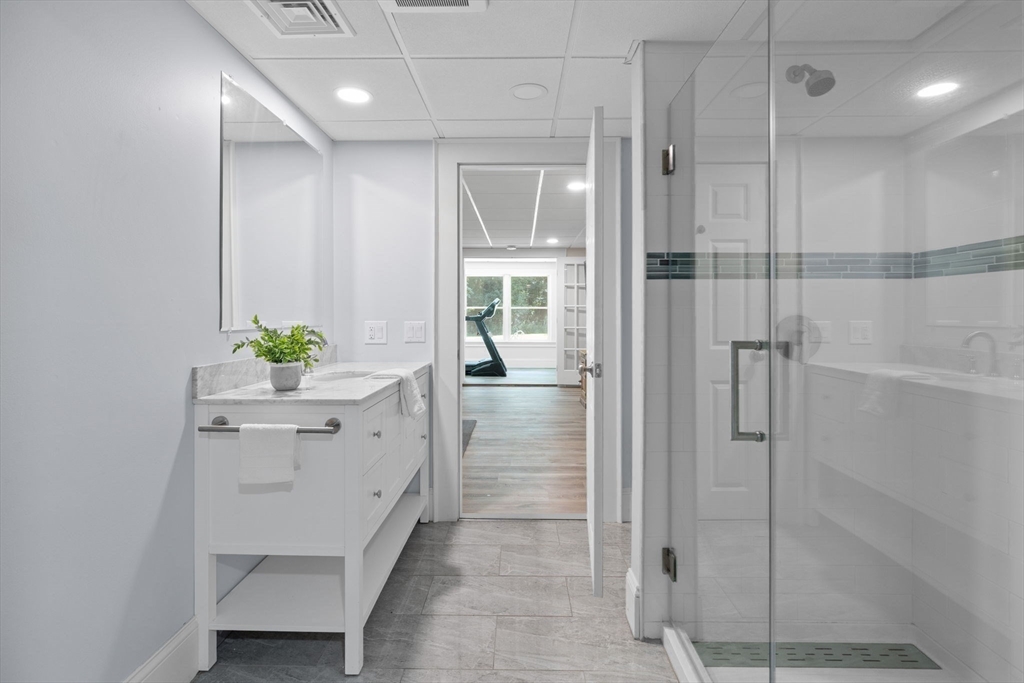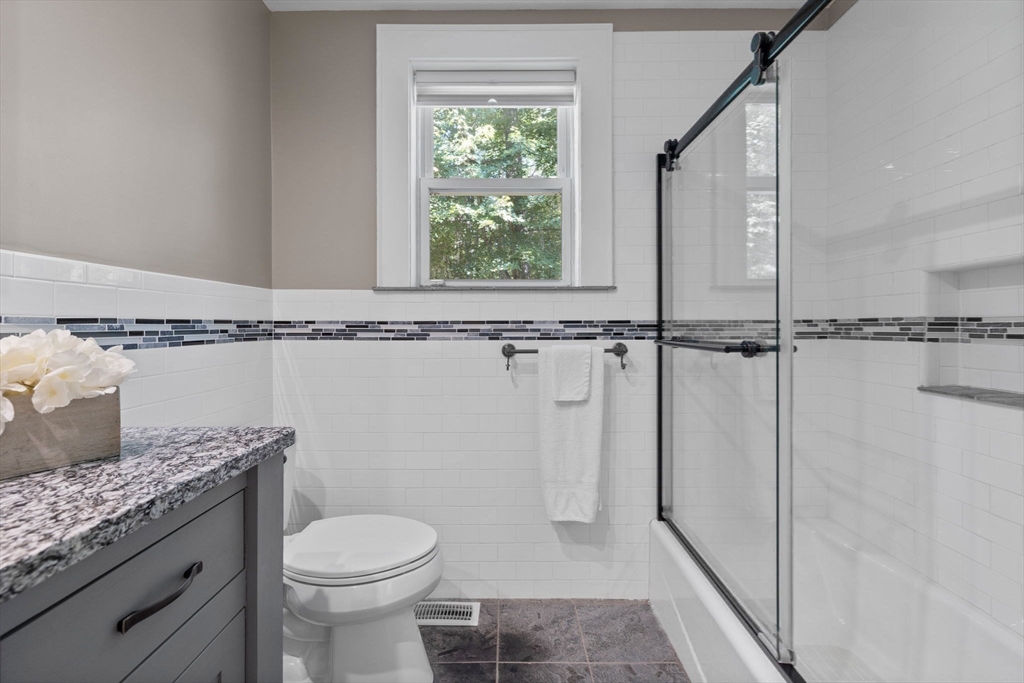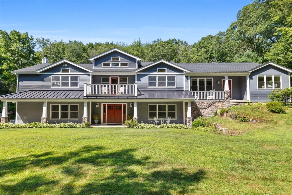 Nestled in the bucolic woods of Boxford, this beautifully updated 4 bed, 3 bath ranch is set on over 9 acres of serene privacy and natural beauty. Thoughtful craftsmanship is evident throughout, offering timeless charm and modern convenience. Live comfortably on the main level with the option to expand into the finished lower level-perfect for guests, recreation, or a home office. The oversized living room is ideal for entertaining and features a striking floor-to-ceiling stone fireplace w/brand-new carpeting. The updated kitchen boasts granite counters, all SS appliances, including brand new stove and refrigerator, a charming farmer's sink, soft lighting above the cabinets, and a spacious walk-in pantry. The inviting family room with a wood-burning stove offers a more intimate gathering space. The primary suite features HDWD flrs and an updated en-suite bath, while 2 more bedrms round out the 1st floor with HDWD flooring. Enjoy the backyd oasis with ovrszd firepit & patio w/pergola!
