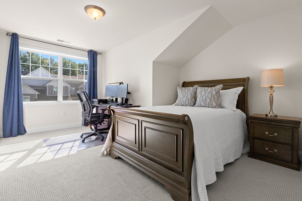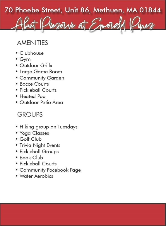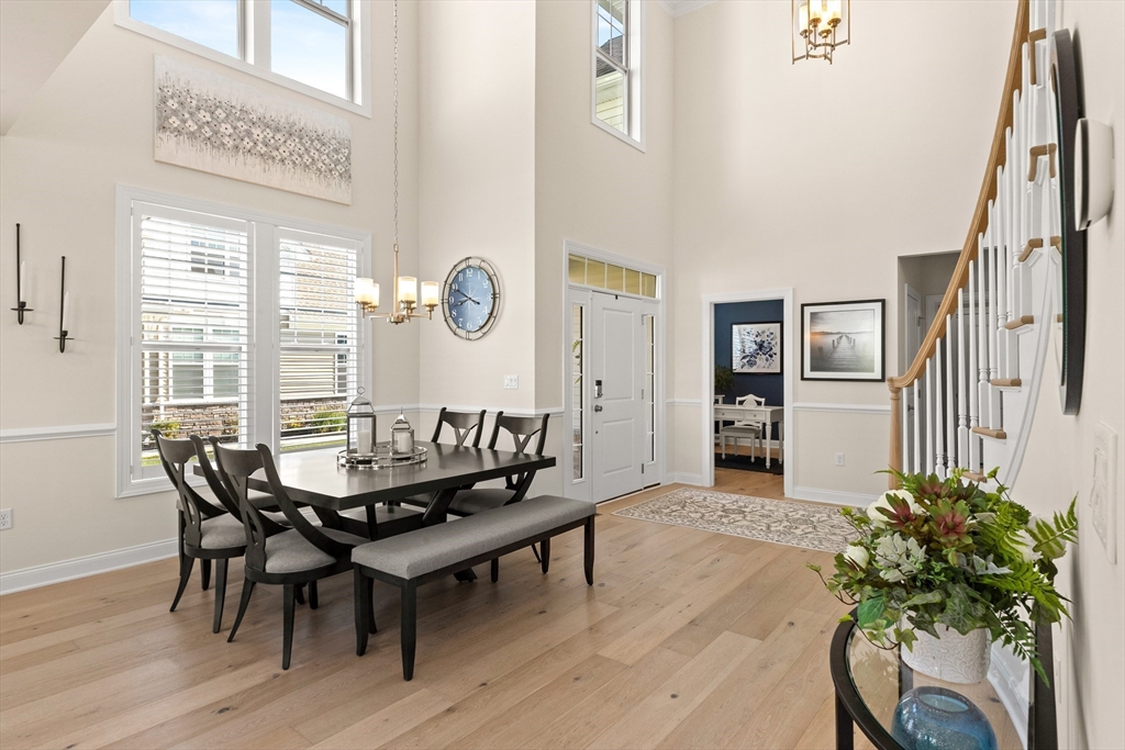 Downsize without compromise in this pristine Kington model at 70 Phoebe in the Preserve at Emerald Pines. This nearly new three-bedroom end unit lives like a designer model home, with high-end finishes and an open, elegant layout. The sun-drenched first floor features dramatic floor-to-ceiling windows, a spacious dining area, a home office, and a luxurious primary suite with a tray ceiling, two walk-in closets, and a spa-like bath with dual vanities. The chef’s kitchen is outfitted with high-end appliances, custom cabinetry, and a large quartz island that anchors the open-concept living space, perfect for entertaining. Upstairs, you'll find a generous loft and two additional bedrooms, ideal for guests or extended family. Embrace a low-maintenance lifestyle and spend your weekends enjoying, not maintaining, your home. No more yardwork, no more shoveling. Just beautifully kept grounds, a gorgeous clubhouse, pickleball, fitness center, and a resort-style pool to enjoy at your leisure.