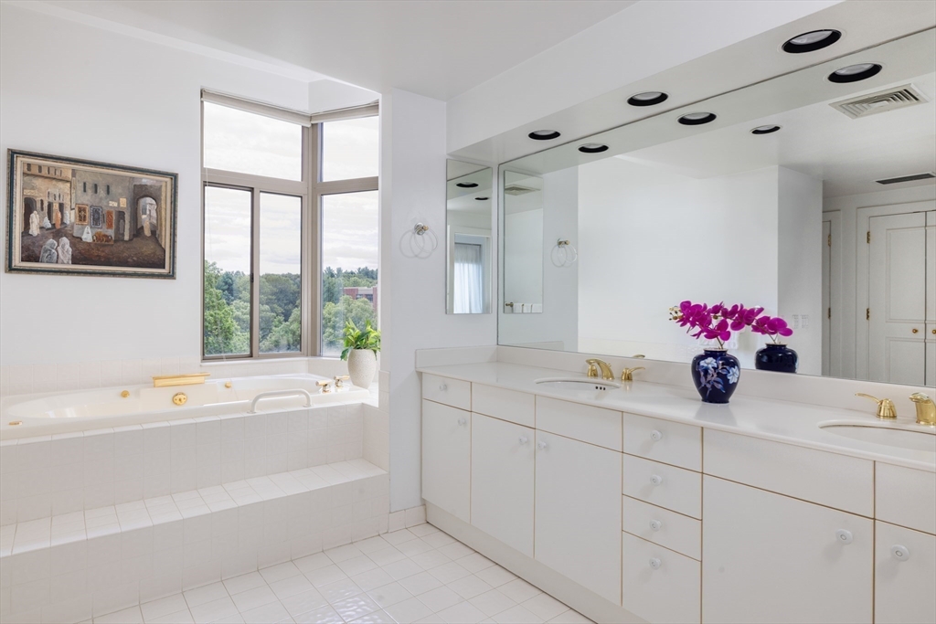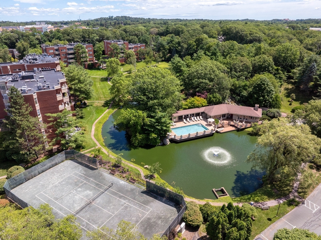 Life at the top! This spectacular, rarely available penthouse at “The Farm” in Chestnut Hill is the epitome of luxury & easy living. Graced with soaring ceilings, stunning skylights, and direct elevator access to a private foyer, this exquisite property offers 2,689 sq ft of glorious, light-filled living space on one level with multiple private terraces, garage parking for two vehicles, and views of the incredible, lushly landscaped 14-acre grounds including a pond, waterfall, in-ground pool, and Japanese gardens. Includes expansive living & dining spaces with showstopping views + sliders to a sprawling terrace. Eat-in-kitchen with addl. terrace. Sumptuous primary w/ incredible views from your soaking tub. Two addl. guest bedrooms (one currently used as an office.) Fabulous den with wet bar, library. Ample closet space + laundry. Amazing proximity to premier Ch. Hill shops, dining & Wegman's. Amenites inc. gym, tennis, walking trails+ clubhouse. Prof on-site mgt. In a class by itself!