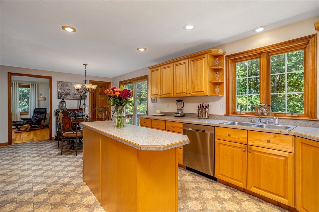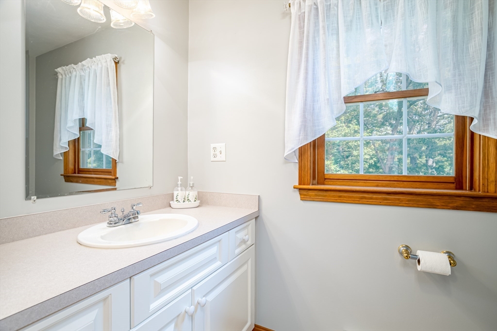 Charming One-Owner Colonial, lovingly maintained, tucked away on a peaceful cul-de-sac! Discover this spacious and inviting home that offers an abundance of living space and thoughtful features throughout. Step inside to find a large kitchen, perfect for entertaining, complete with generous counter space and a spacious island. Enjoy special occasions in the formal dining room, beautifully framed by glass doors. Relax in the cozy family room featuring a fireplace, or gather in the impressive great room with vaulted ceilings. Convenience meets function with a first-floor laundry room and half bath. Step out onto your private deck and take in serene views of lush greenery and mature trees, a perfect spot for morning coffee or summer evenings. Upstairs, you’ll find 3 generously sized bedrooms, including a main suite that boasts its own ensuite bath and a walk-in closet. Add more value by finishing the walk-up attic into additional living space, play room or a home office.