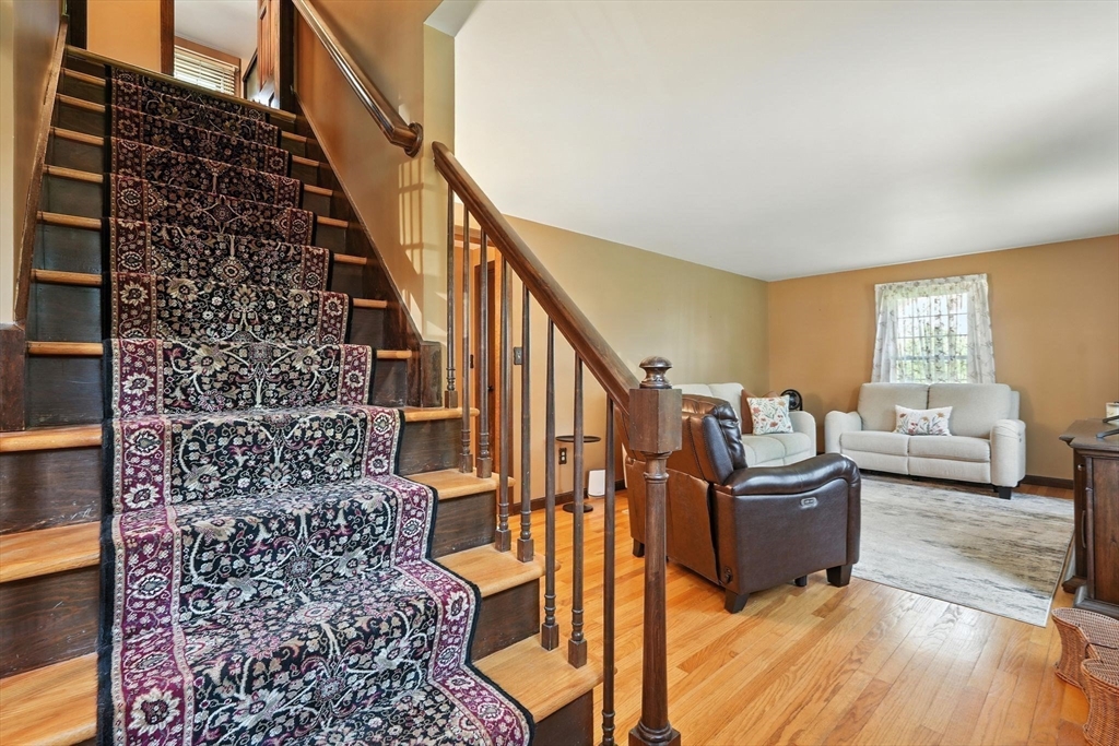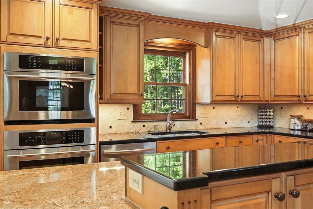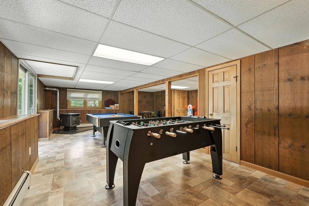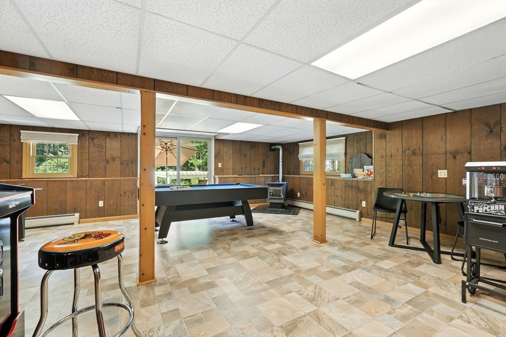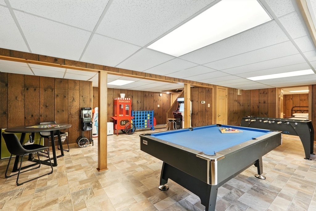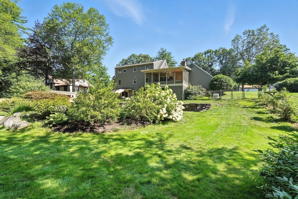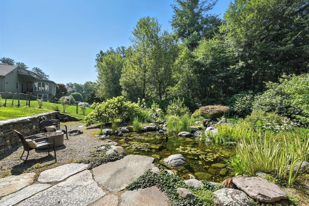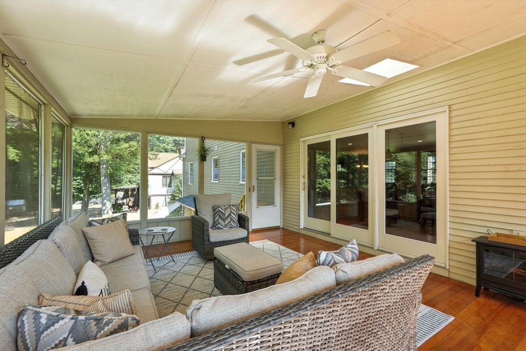 This stunning, well-maintained home is full of charm and thoughtful updates! The show-stopping Herzenberg kitchen is truly the heart of the home—featuring a massive island, stainless steel appliances, two ovens and recessed lighting. It opens to a formal dining area and spacious family room with a gas fireplace, creating the perfect open-concept layout. A cozy living room offers added space to unwind. Step into the serene three-season porch overlooking a fenced-in backyard oasis with a koi pond, waterfall, and pergola. The first floor includes a flexible bedroom or home office, with three additional bedrooms upstairs. The finished walkout basement offers a large family room with a pellet stove—ideal for entertaining or relaxing and another room of your choice bedroom or office. Truly a special property inside and out!