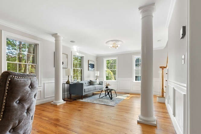 Welcome to this stunning center entrance colonial in desirable Skyewood Acres! A perfect blend of timeless design and modern comfort. This 4-bedroom, 3.5-bath home offers a spacious and well-appointed layout ideal for today’s lifestyle. Inside, you'll find hardwood floors throughout and an inviting main level featuring a bright, open-concept kitchen with granite countertops, stainless steel appliances, and plenty of space for both casual dining and entertaining. Large fire-placed great room, formal DR, and home office complete the 1st flr. Upstairs, the primary suite is a true retreat with a private en suite bath and generous closet space. 3 additional bedrooms are spacious and full of natural light, offering room for family and guests. The finished LL offers direct access from the 2 car garage is perfect for a recreation room, media space, or home gym. Step outside to enjoy the private, covered rear deck, a peaceful setting for morning coffee or evening gatherings, rain or shine!