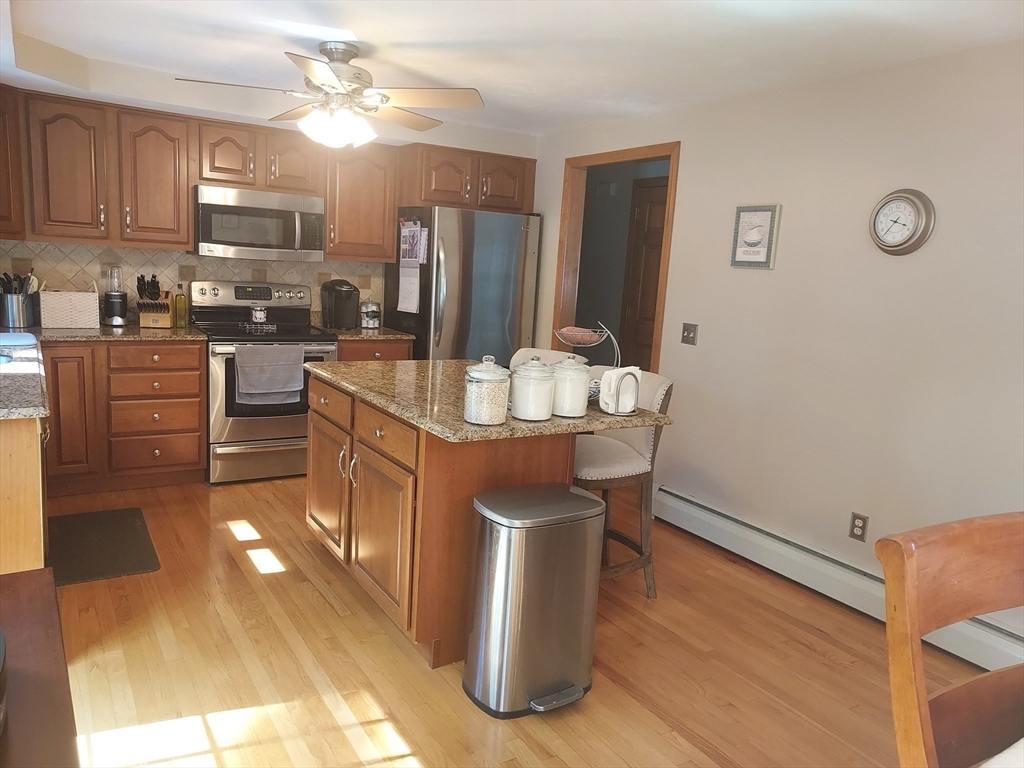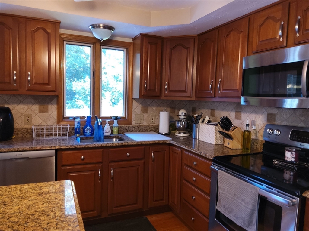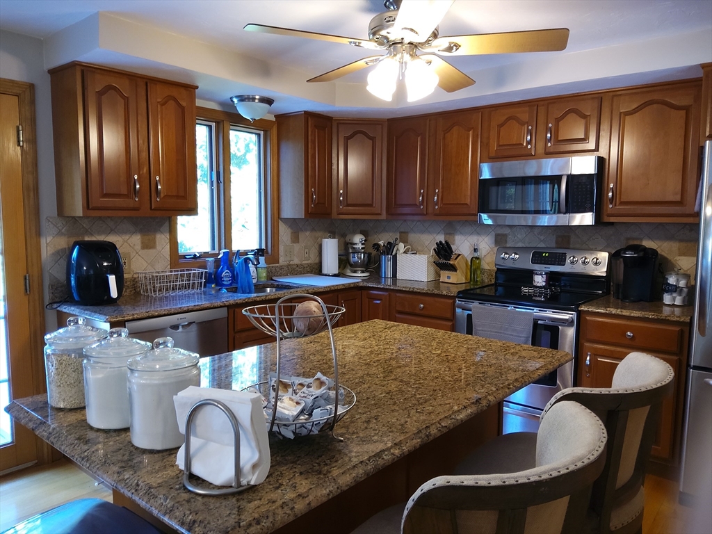 Welcome to Dorianna Circle. A quiet cul de sac setting w/ center island sites this immaculate 1800+ sf raised ranch.Step into the large entry foyer & view the Gorgeous hardwood floors enhancing all the 1st floor rooms. The beautiful classic updated kitchen & dining room are a chefs dream. Large center island with overhang for seating. Cherry cabinets,granite and hardwood flooring. Deck access from the atrium doors.. Loaded with natural light and open floorplan this home is warm and welcoming. Large Fireplaced living, mini split for central air/or heat. 3 spacious bedrooms, with double closets, ceiling fans and gleaming hw floors. The primary bedroom is spacious, w/ a spectacular updated primary ensuite bath with glassed door shower &pebble flooring. Lower level adds additional living space and has been nicely renovated. Half bath and laundry off family room. Exterior access from the rear, custom cabinetry-laminate floor perfect for family fun..or an amazing office/gym. Welcome Home