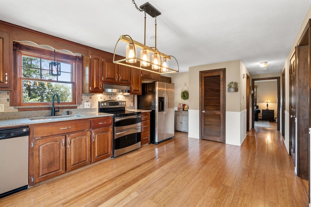 Welcome to 32 Linda Dr, a beautifully updated and well maintained spacious 3-bedroom, 2 full bathroom home. The main level of the home offers an updated kitchen with pantry, a full bathroom, dining room and living room with fireplace. The private den has sliders leading to a screened in porch and deck, perfect for relaxing or entertaining while taking in breathtaking sunsets. Upstairs is a large primary bedroom, two additional bedrooms, ample closets and a full bathroom. The walk-out lower level provides flexible living space - for a home office, playroom, or workout area. The additional basement space offers workshop space and storage. Outside, enjoy a large backyard with room to garden, play, or simply unwind. Additional features include one garage space and plenty of off-street parking. Close proximity to East Mountain Country Club, Ashley Reservoir, Holyoke Mall. Easy access to 90/91. Recent upgrades include a newer roof, septic. Come see this move in ready home today!