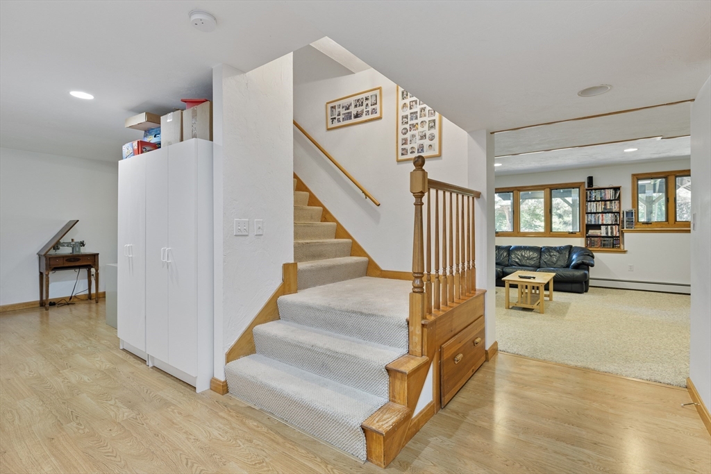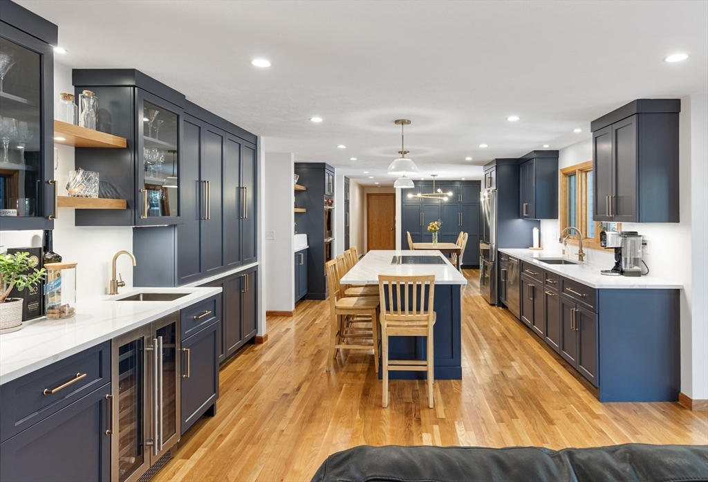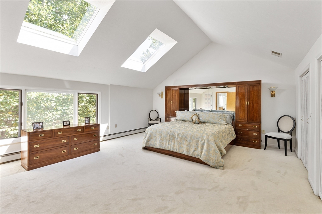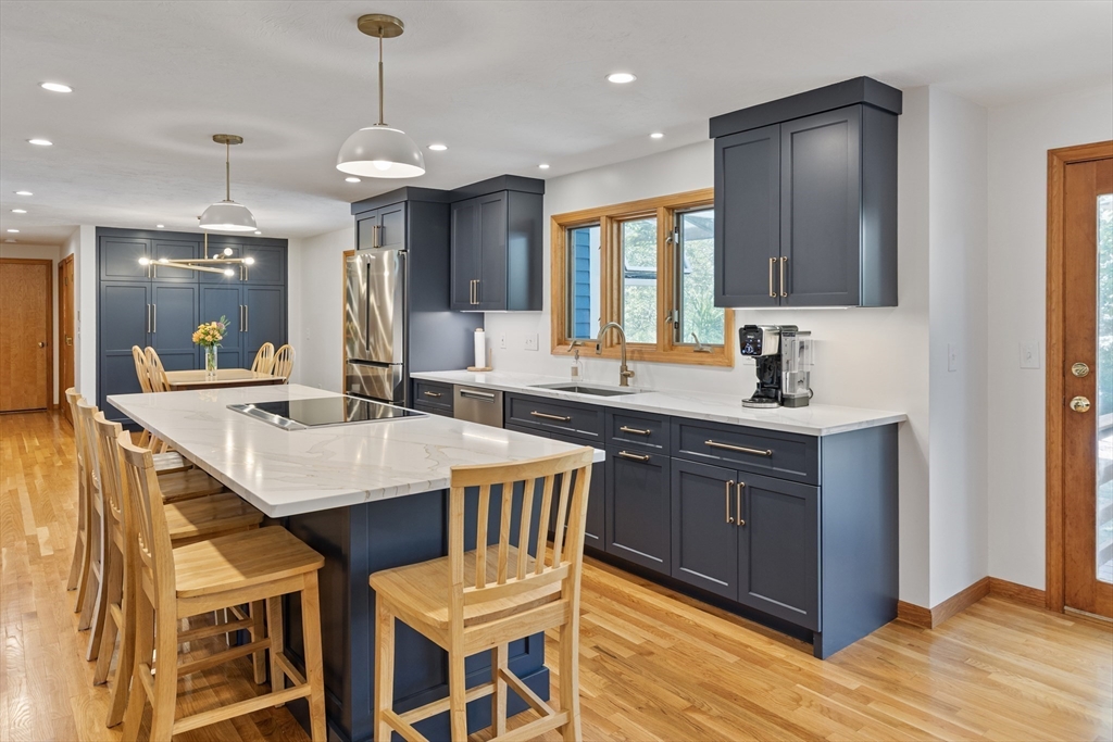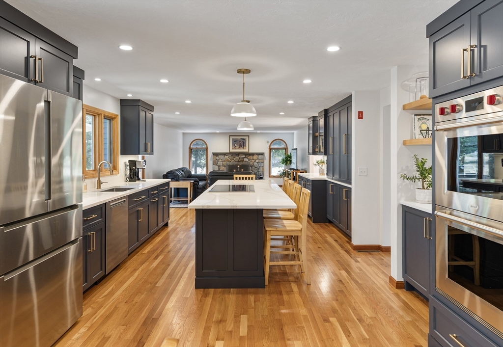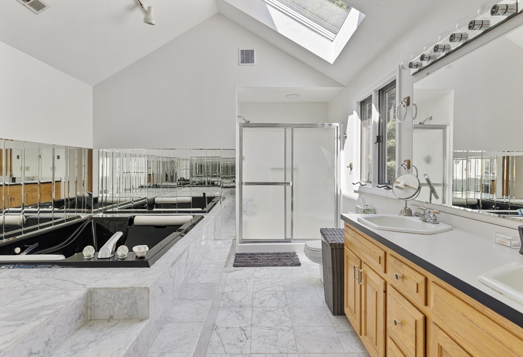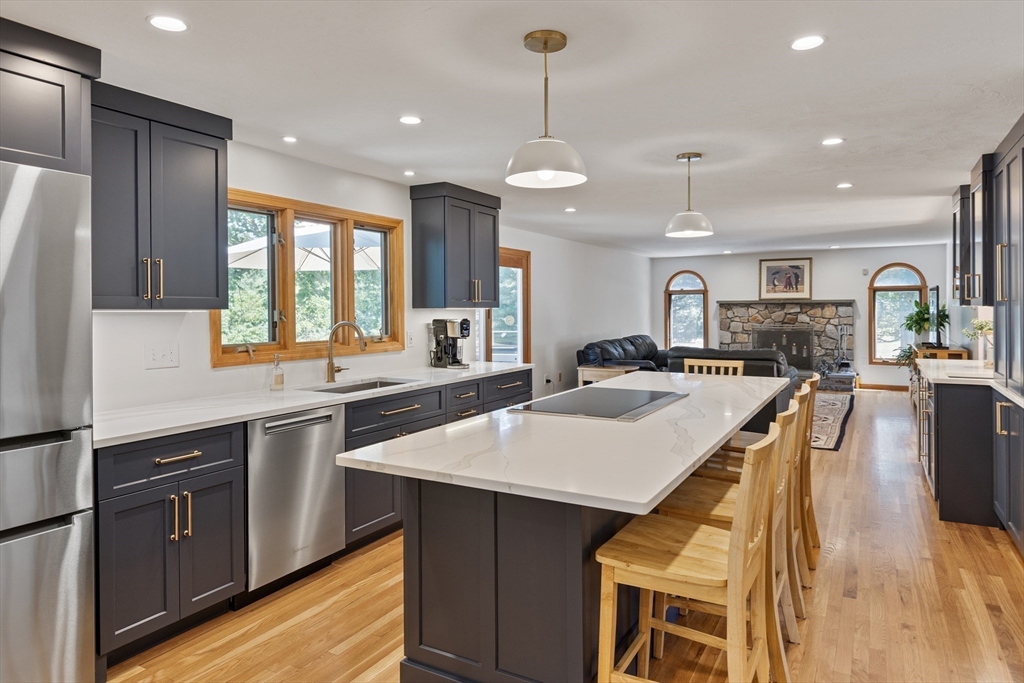 GORGEOUS 2022 HIGH-END KITCHEN RENOVATION offered in this 4000 SF Contemporary in sought after Hopkinton Springs, a neighborhood on the shores of Lake Whitehall w/ access to an 8-mile trail around the lake & year-round recreational activities where hiking, kayaking, fishing & cross-country skiing are steps away! Fantastic Open floor w/ Kitchen wide open to pretty stone fireplaced Family Room for 54' total length! Sun splashed Sun Room. Step down vaulted Living Room w/ skylights. Banquet size Dining Room! Two half baths. Vaulted Primary Bedroom w/ 2 skylights, several closets, ensuite Bath & Loft Office! Good sized secondary Bedrooms & Hall Bath/Laundry. Finished walkout lower level Great Room, Office, Bonus Room plus 2 storage rooms. 2020 Burnham Boiler, Water Heater & 1st floor AC; 2009 Roof; 2006 2nd floor AC. Beautiful, private well-landscaped level lot perfect for outdoor activities & gatherings w/ hot tub included! Top rated schools & easy access to 495, MA Pike & commuter rail!