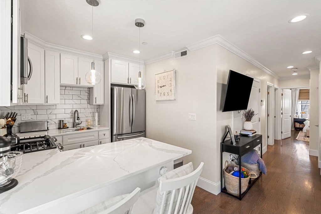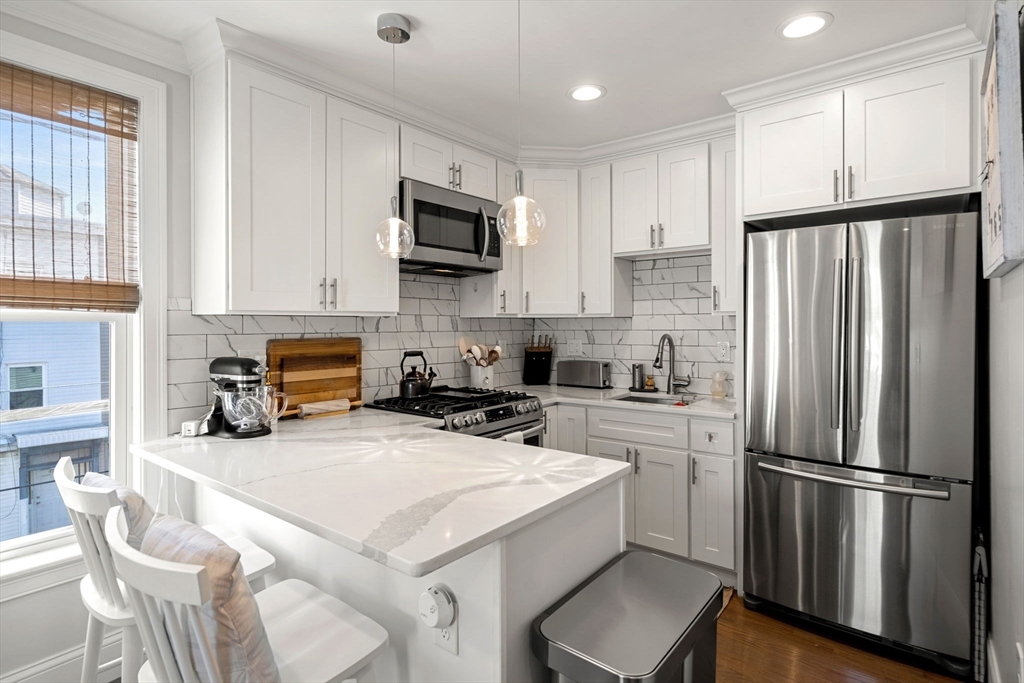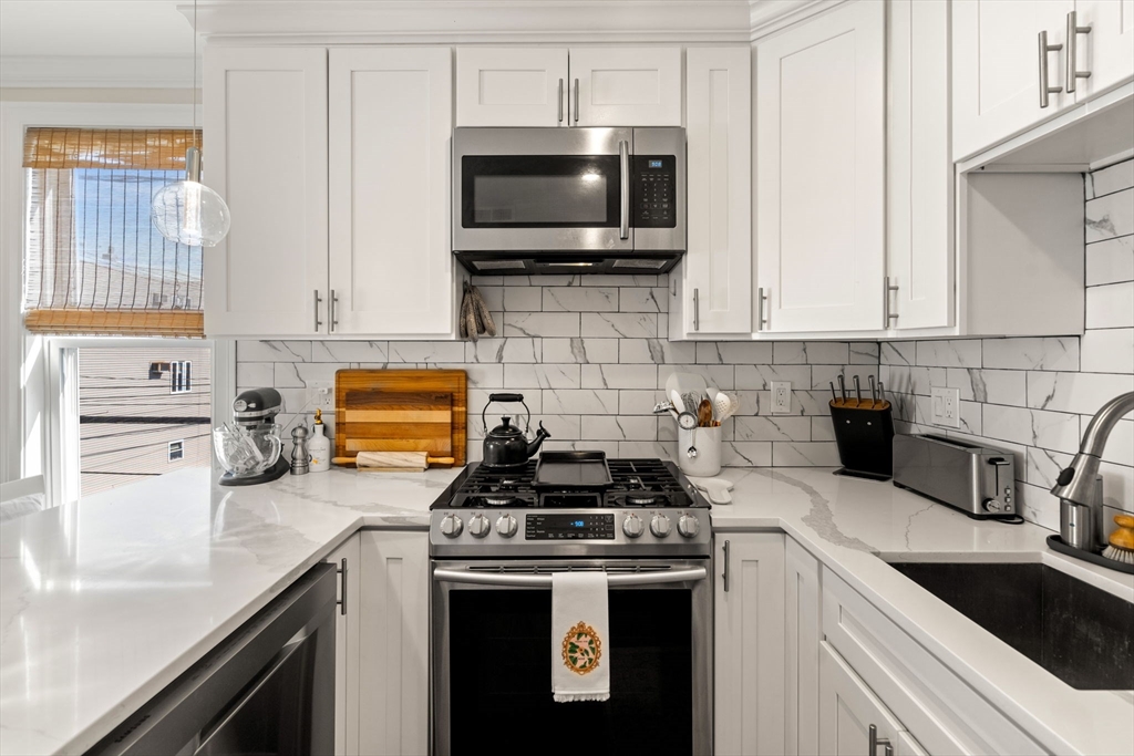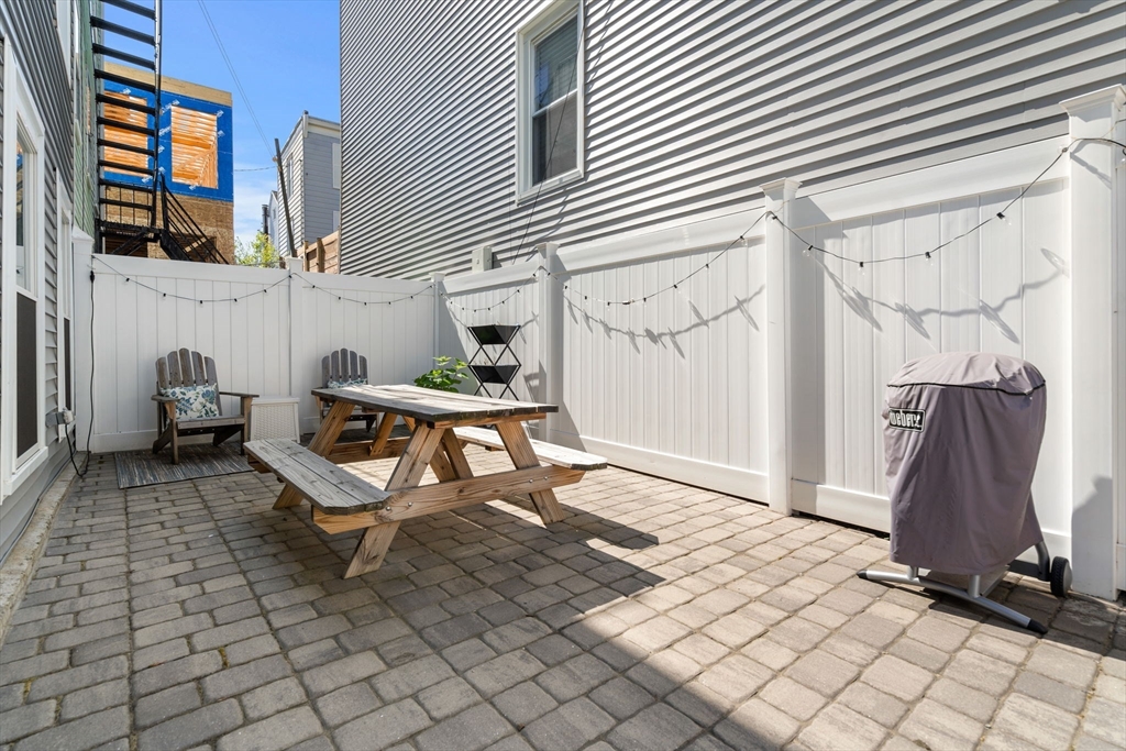 Investment Opportunity!! Fall in love with this Jeffries Point gem, where timeless charm meets modern luxury. Fully renovated in 2020, this light-filled home features an airy layout, white shaker kitchen with crown molding, quartz counters, stainless appliances, and gas range. Two sunlit bedrooms, spa-like bath, in-unit laundry, and a large private storage room add comfort and convenience. A spacious shared patio with picnic table and grills is perfect for gatherings or summer evenings under the stars. Just minutes to Maverick T, waterfront parks, dining by the pier, and sweeping skyline views. This isn’t just a condo—it’s your invitation to the East Boston lifestyle in a highly sought-after location.