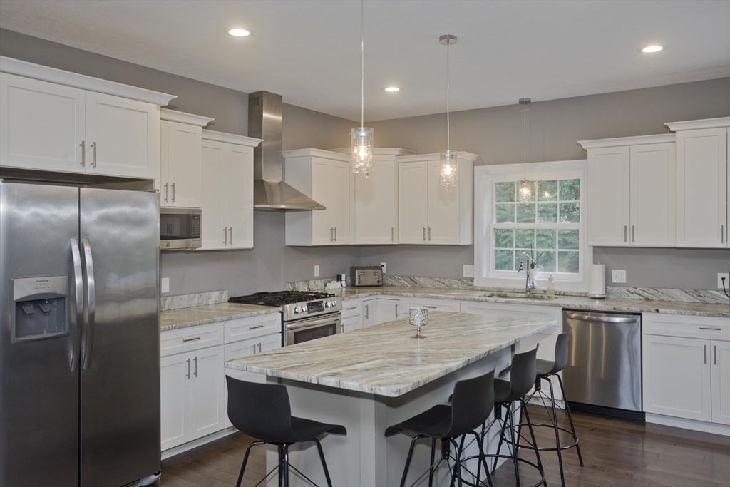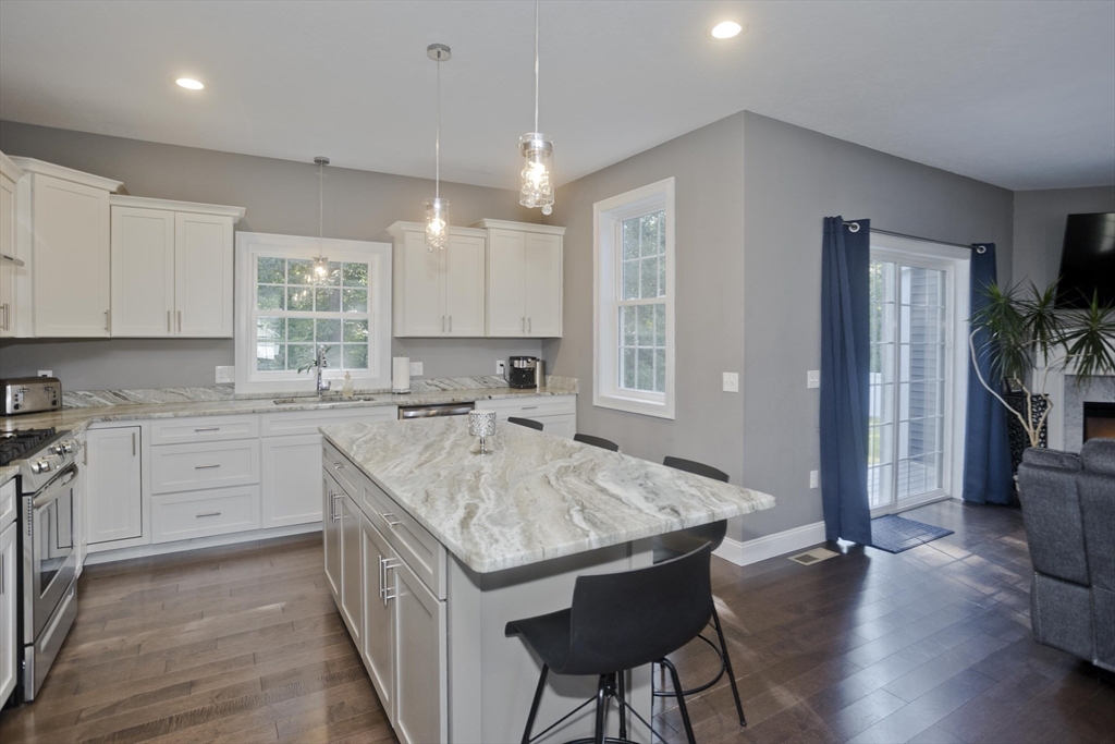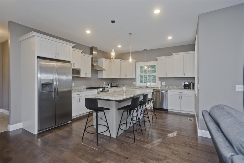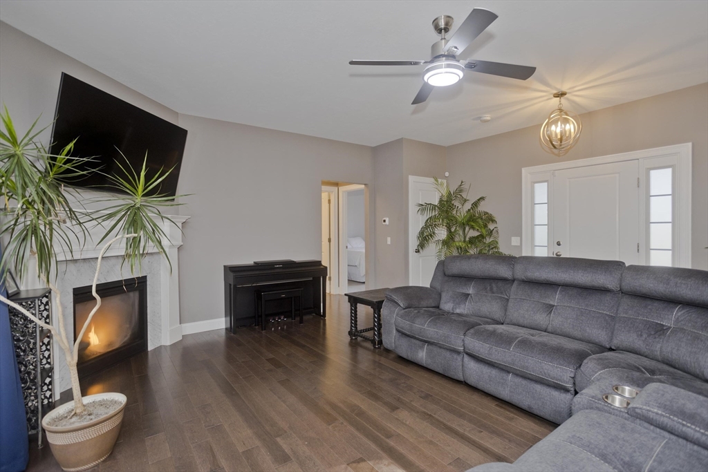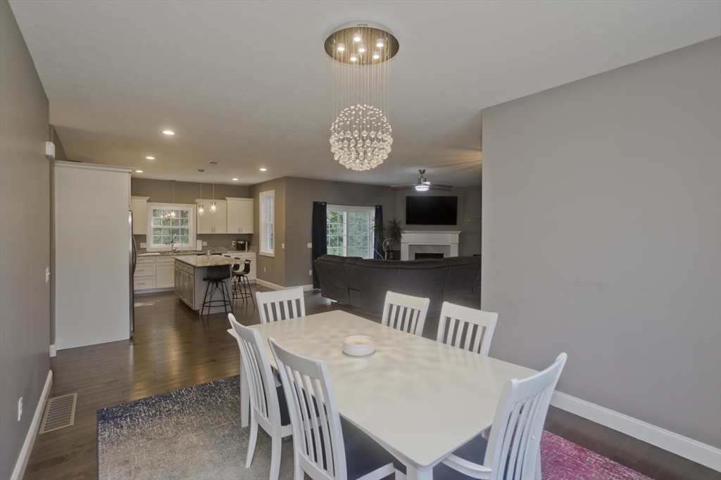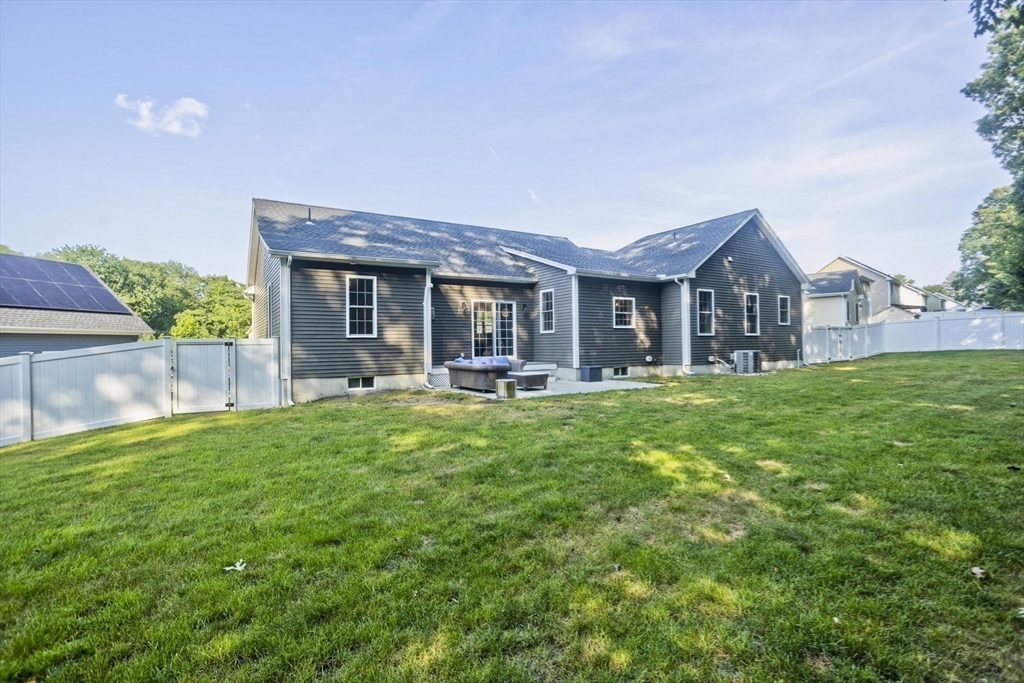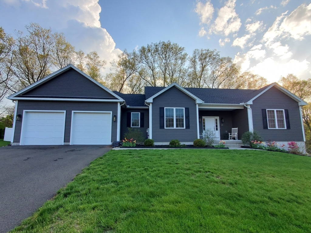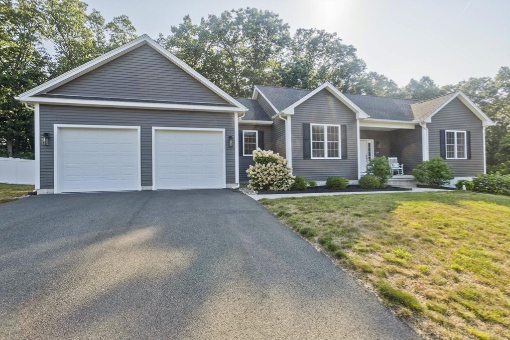 Move-in-ready beautiful 3-bed, 2-bath ranch on a quiet Chicopee cul-de-sac! Built in 2020, this open-floor plan home features granite countertops, stainless steel appliances, gas fireplace, and first-floor laundry. Central air keeps you cool on hot summer days. Gleaming hardwood floors flow through the living room, dining room, and kitchen. The spacious main bedroom offers an ensuite with double sinks and a walk-in closet. Enjoy a private, fenced-in backyard abutting woods with a cement patio. Large, dry basement with separate exterior entrance offers potential for additional living space—ideal for a teen retreat, guest area, or in-law setup. Two-car garage, close to highways and shopping. Showings begin at Open houses Sat & Sun (8/2–8/3), 12–2 PM. This one won’t last!