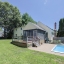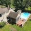 Welcome to this charming Gambrel Cape located on a quiet cul-de-sac. The first floor features gleaming HW floors, a well-appointed kitchen with dining area, and a spacious cathedral-ceiling family room with skylights, stunning fieldstone fireplace, and cozy wood stove. Enjoy additional living space with a formal living room featuring built-ins and a second fireplace, a dining room with bay window, a bright sunroom, a first-floor bedroom, and a full bath—ideal for guests or multi-generational living. Upstairs, the main bedroom offers a huge walk-in closet and direct access to a beautifully updated Hollywood-style bath with a large tiled shower with glass doors. Two more generously sized bedrooms complete this floor. The finished basement provides excellent bonus space for a game or playroom. Outside, relax on the screened porch or entertain on the deck overlooking the refreshing inground pool. Don't miss this spacious and versatile home, perfect for everyday living and entertaining!