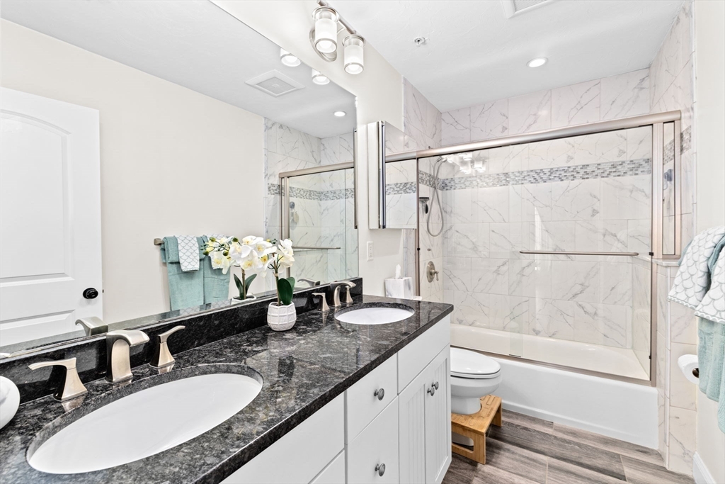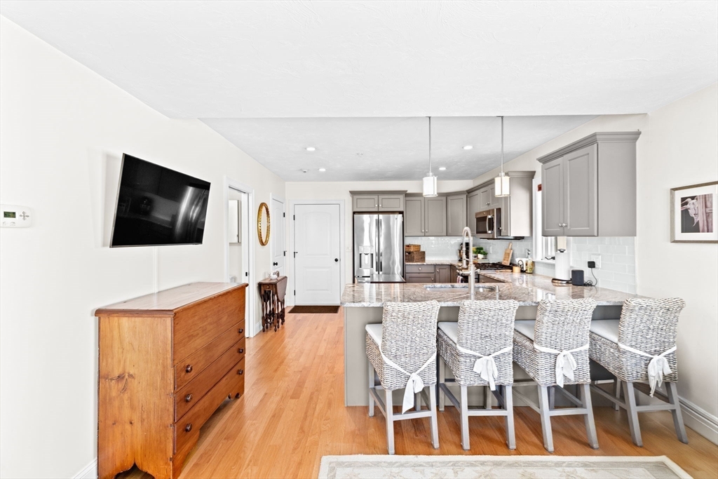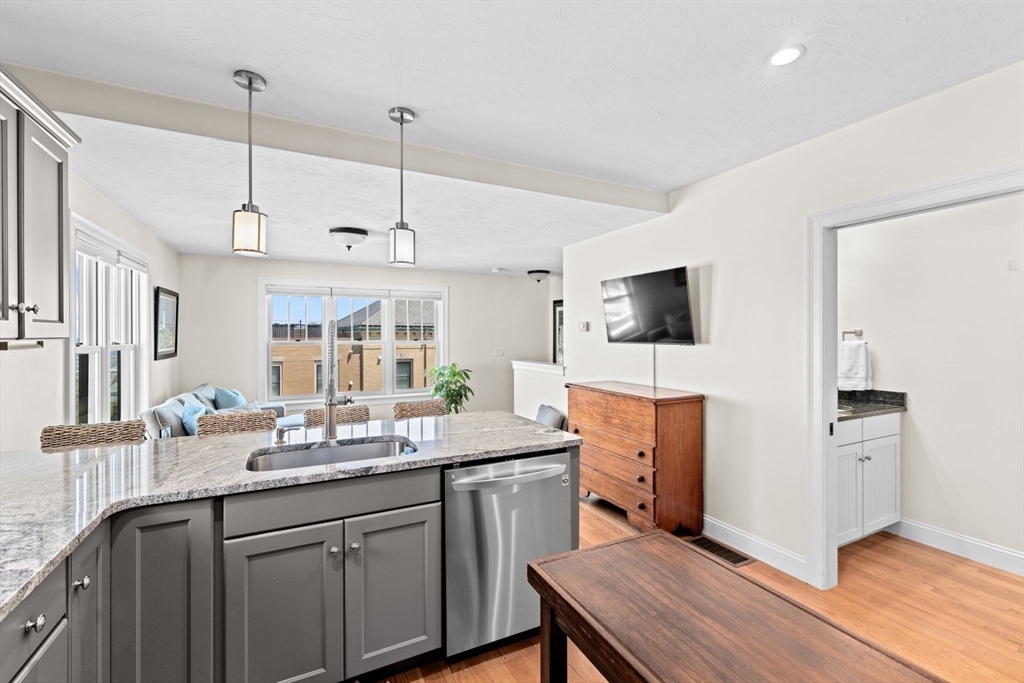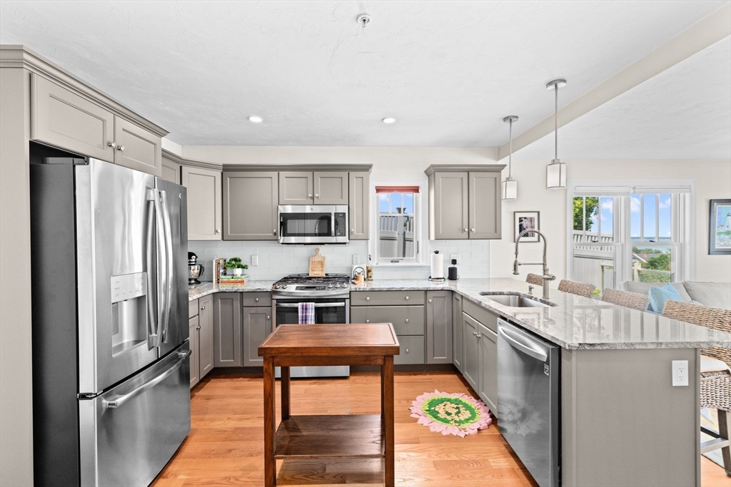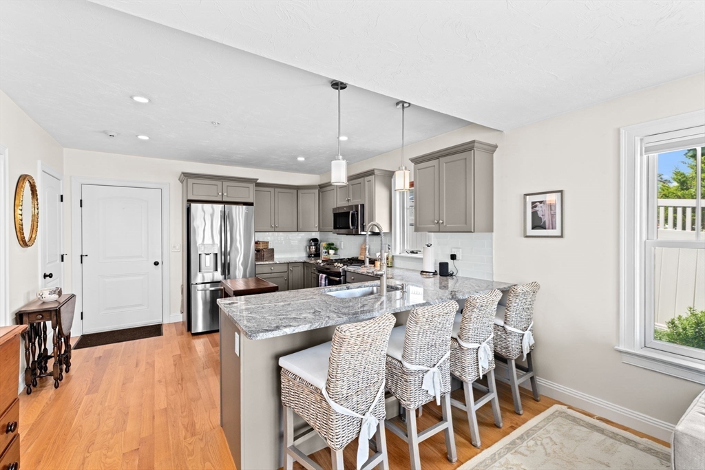 Enjoy the best of coastal living in this stunning 1-bedroom, 1.5-bath condo situated on a quiet street in vibrant downtown Plymouth. With intriguing town, harbor, ocean, views, watch the boats and hear the ship horns from this serene retreat. Comfort, privacy, and unbeatable access to charming shops, top-rated restaurants, and historic waterfront. Inside, you'll find a granite kitchen, hardwood floors, central air, an open living space designed for relaxation and entertaining. Your spacious bedroom features a full en-suite bath, walk in closet. Large windows and glass doors flood the space with natural light while framing harbor views and historic rooftops. Enjoy morning coffee or evening cocktails on your private patio, or use the space as your peaceful pied-à-terre by the sea. This well-maintained unit includes two deeded parking spaces, low HOA fees, plenty of closet space, and the quiet privacy of a tucked-away location, while keeping you close to everything Plymouth has to offer.