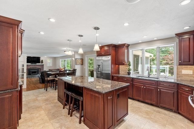 Welcome to Groton Woods, a premier neighborhood on Groton’s east side with easy access to the highway & wooded trails, just a mile from the town beach. This well-appointed home features a spacious mudroom with laundry & half bath, updated kitchen with beverage fridge & radiant heat floors, & an open flow to the family room, dining room, and screened porch. Perfect for entertaining. The main level offers hardwood floors or tile throughout. The large primary suite has hardwood, an updated bath with soaking tub & tiled shower, WIC, and an office that can also be accessed from the garage. There are three more LG bedrooms with new carpet plus a finished third floor with two skylit rooms. Enjoy outdoor living with a hot tub, deck, patio, fire pit, & large screened porch. Additional perks include a 2-car attached garage, heated 3-car detached garage with air compressor and game room above. Landscaping includes irrigation, & lovely gardens. This home & the town of Groton have much to offer!