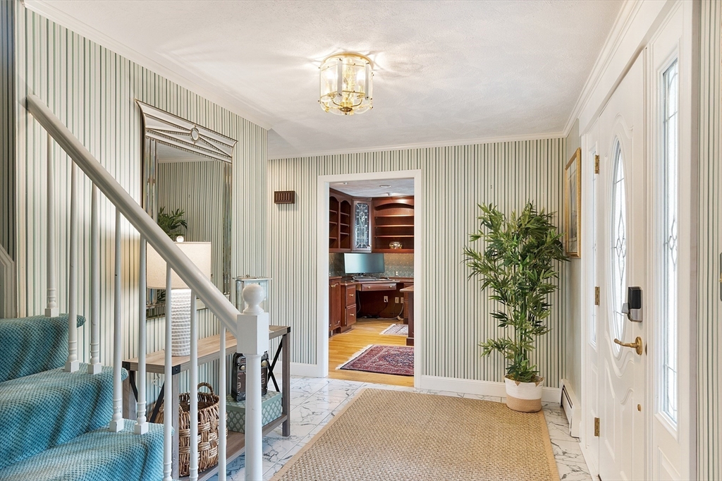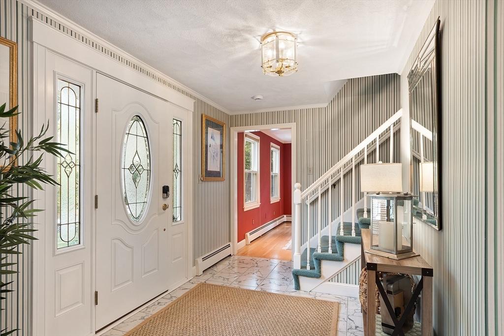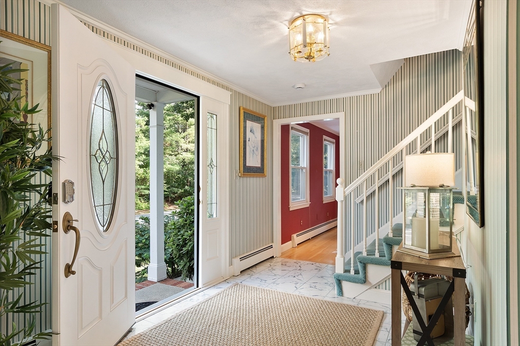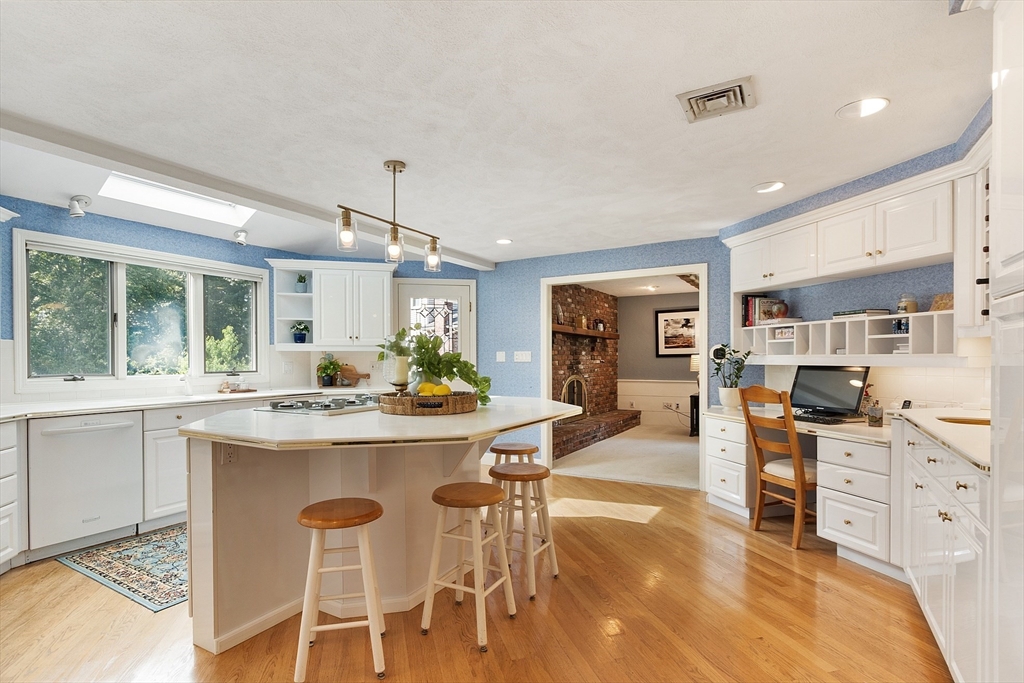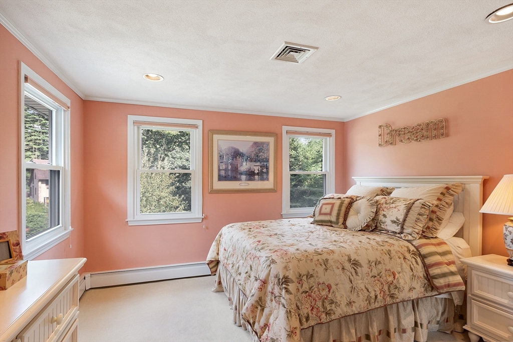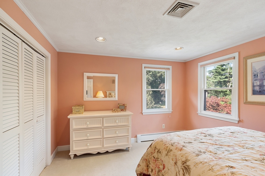 Welcome to this beautiful colonial nestled in a sought after cul-de-sac neighborhood offering privacy, charm and endless potential. Set on a generous lot with a spectacular yard, mature plantings and lush landscaping, this home provides a serene outdoor retreat perfect for relaxing or entertaining. Inside you will find spacious rooms, a classic layout and abundant natural light throughout. The custom-designed, oversized kitchen is truly the heart of the house. Perfect for everyday living and entertaining, this thoughtfully designed space offers an abundance of cabinetry, expansive countertops and a spacious island. This home has been lovingly maintained and offers a solid foundation for your vision and personal touches.The lower level has baseboard heat and presents a fantastic opportunity to add finished living space. Don't miss your chance to own in this desirable location that hosts neighborhood barbecues and other events throughout the year.