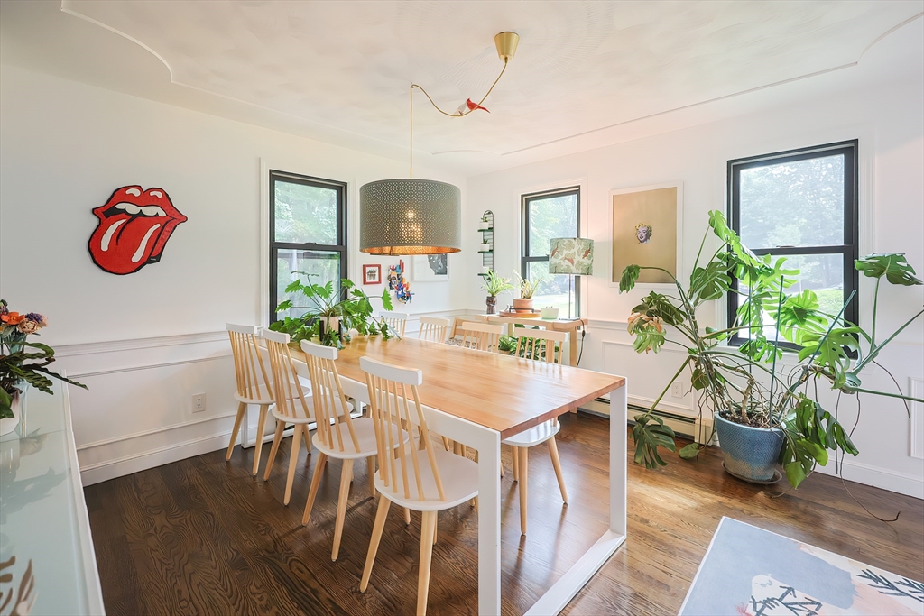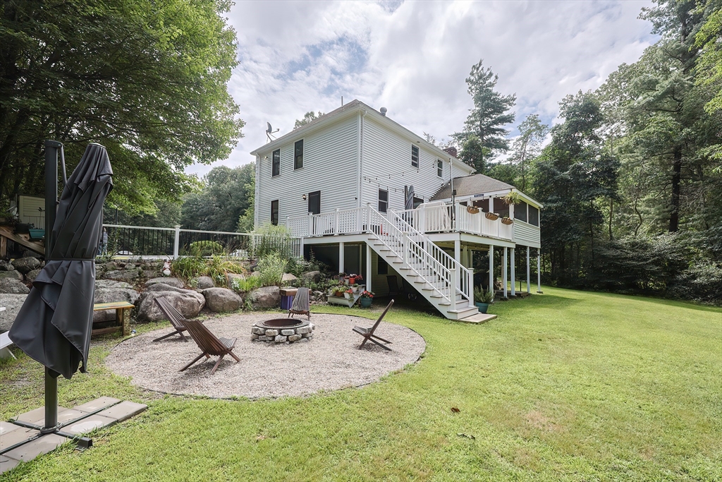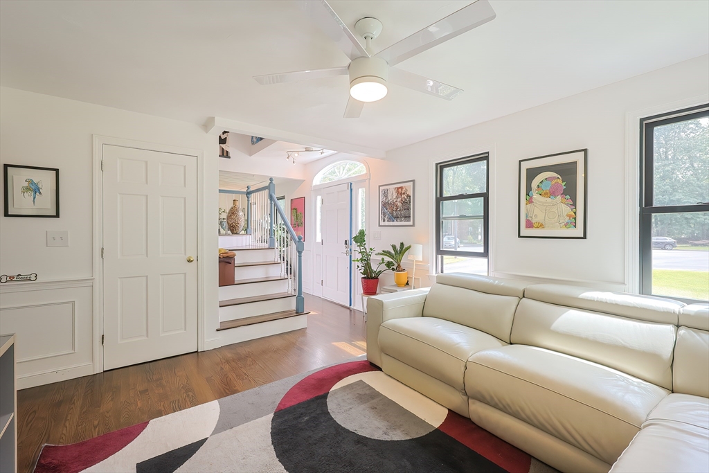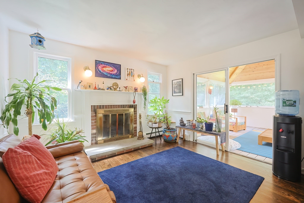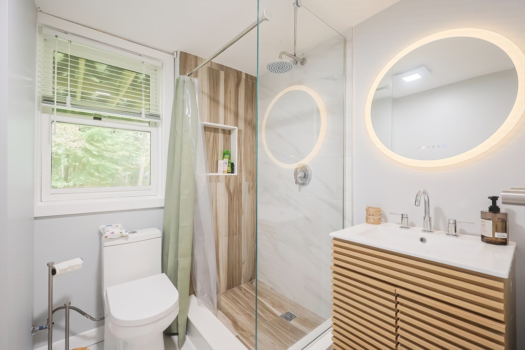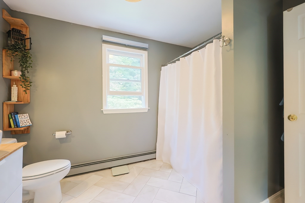 Beautifully updated home at the end of a quiet cul-de-sac! This 4-bed, 3-bath colonial offers a spacious eat-in kitchen with plenty of white cabinets, a large granite island, stacked stone backsplash, stainless steel appliances, a dining area, living room, and a family room with a cozy wood fireplace. Hardwood floors run throughout the first level along with a full bath. Upstairs features a full bath with double sinks and marble herringbone tile, a large front-to-back primary bedroom with walk-in closet, two additional bedrooms, and a convenient laundry room. The high-ceiling walk-up attic offers great potential for expansion. Enjoy the enclosed porch with newer wooden ceiling leading to a composite deck and private backyard abutting conservation trails. The remodeled walk-out basement includes a family room, bedroom, stunning tiled full bath, and a water connection—perfect for adding a bar or kitchenette. Make this your new home!