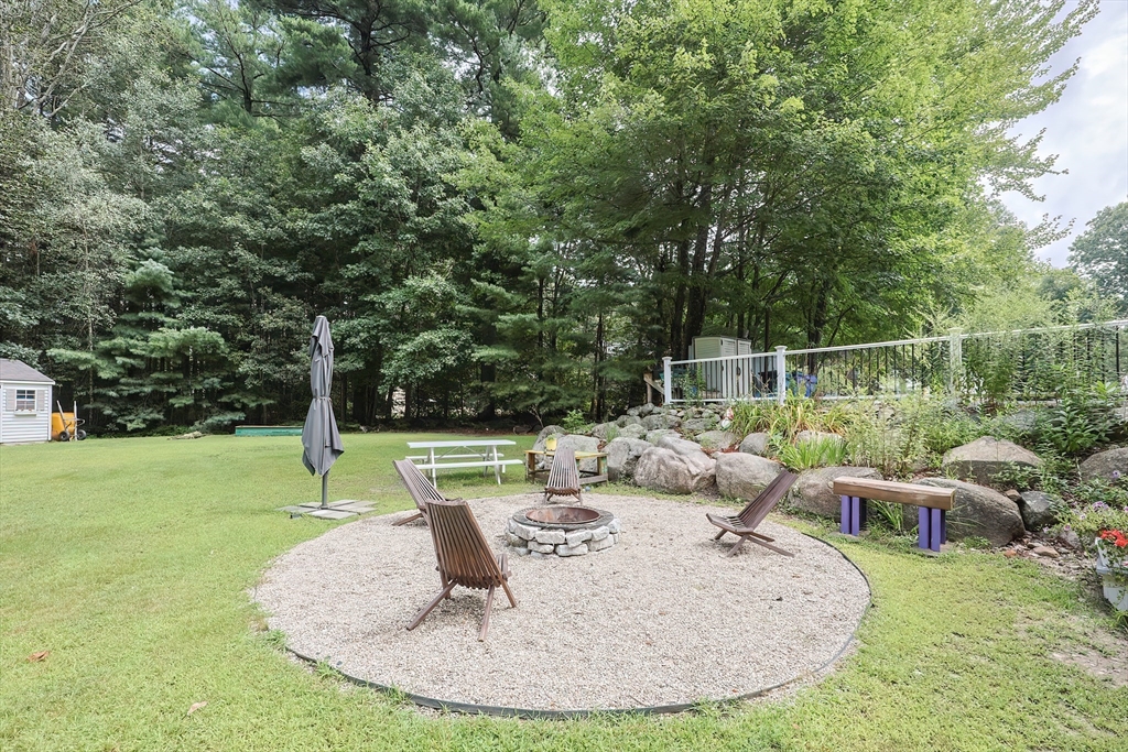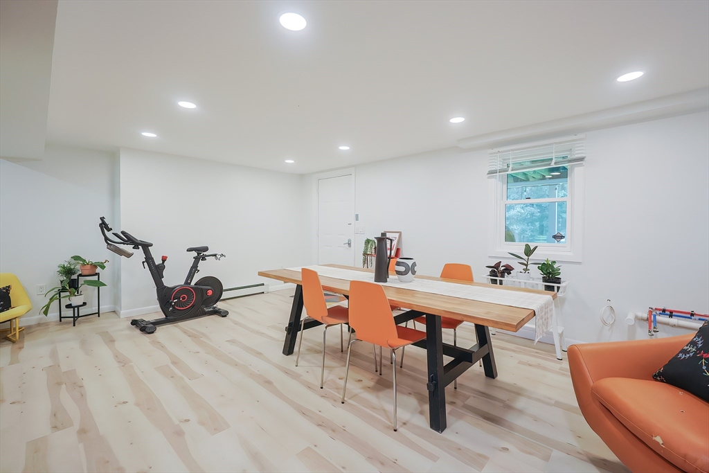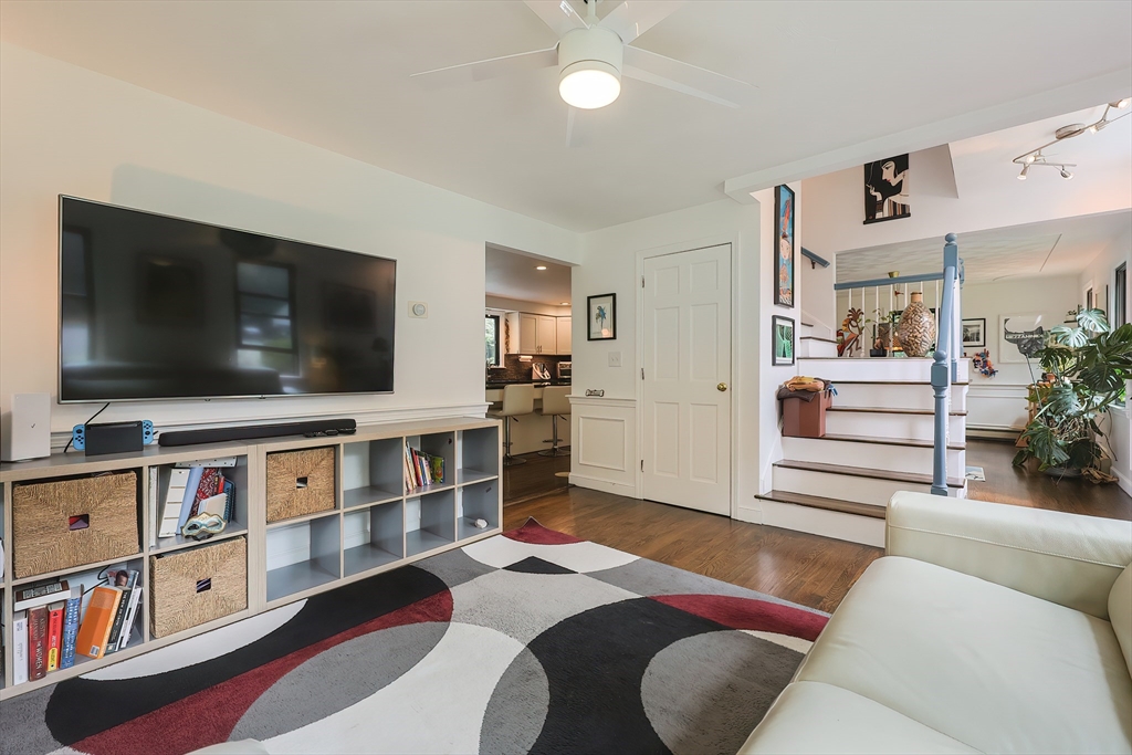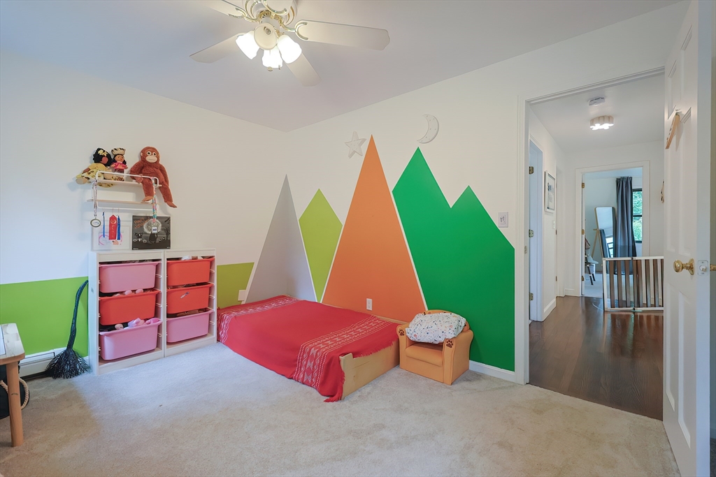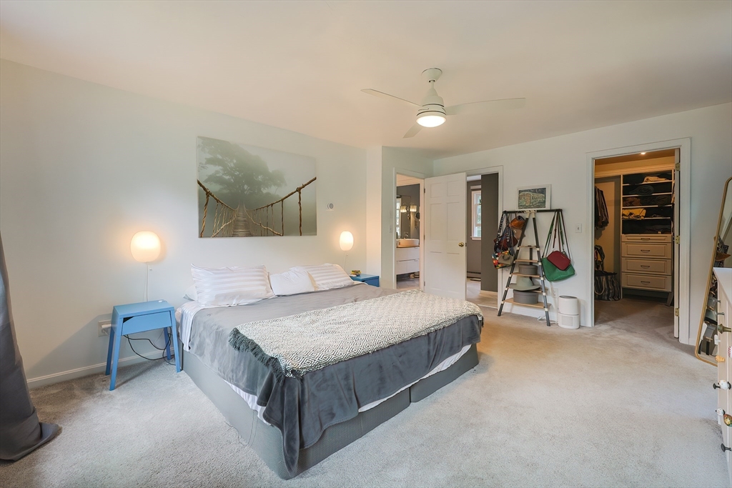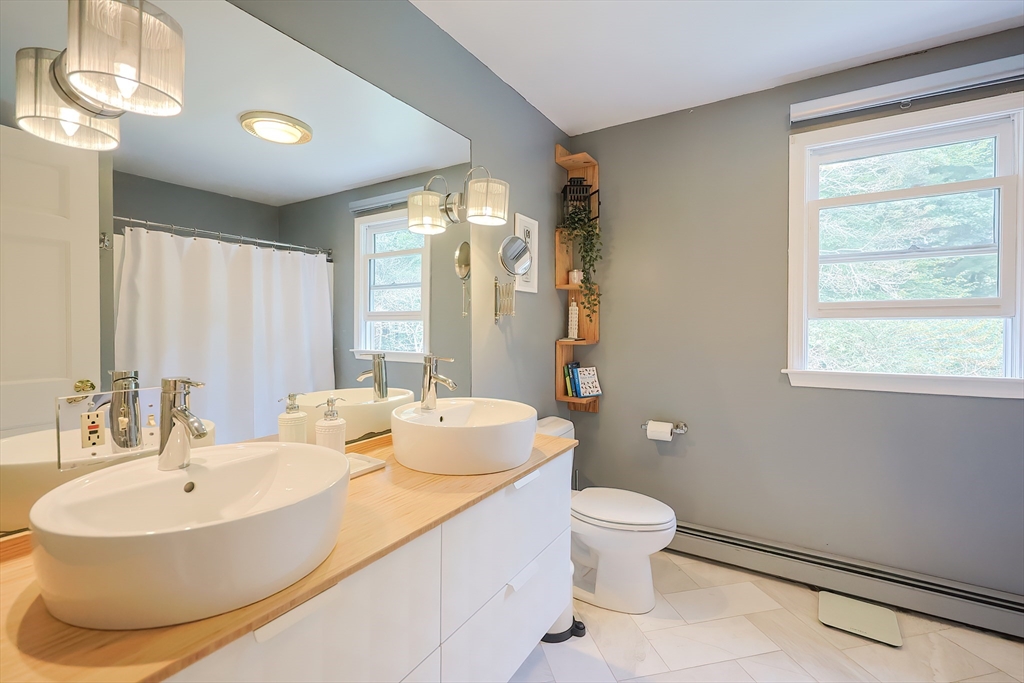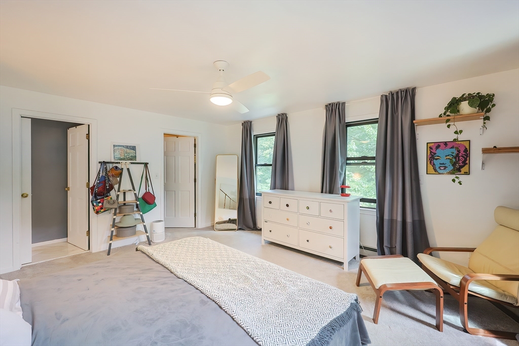 Beautifully updated home at the end of a quiet cul-de-sac! This 4-bed, 3-bath colonial offers a spacious eat-in kitchen with plenty of white cabinets, a large granite island, stacked stone backsplash, stainless steel appliances, a dining area, living room, and a family room with a cozy wood fireplace. Hardwood floors run throughout the first level along with a full bath. Upstairs features a full bath with double sinks and marble herringbone tile, a large front-to-back primary bedroom with walk-in closet, two additional bedrooms, and a convenient laundry room. The high-ceiling walk-up attic offers great potential for expansion. Enjoy the enclosed porch with newer wooden ceiling leading to a composite deck and private backyard abutting conservation trails. The remodeled walk-out basement includes a family room, bedroom, stunning tiled full bath, and a water connection—perfect for adding a bar or kitchenette. Make this your new home!