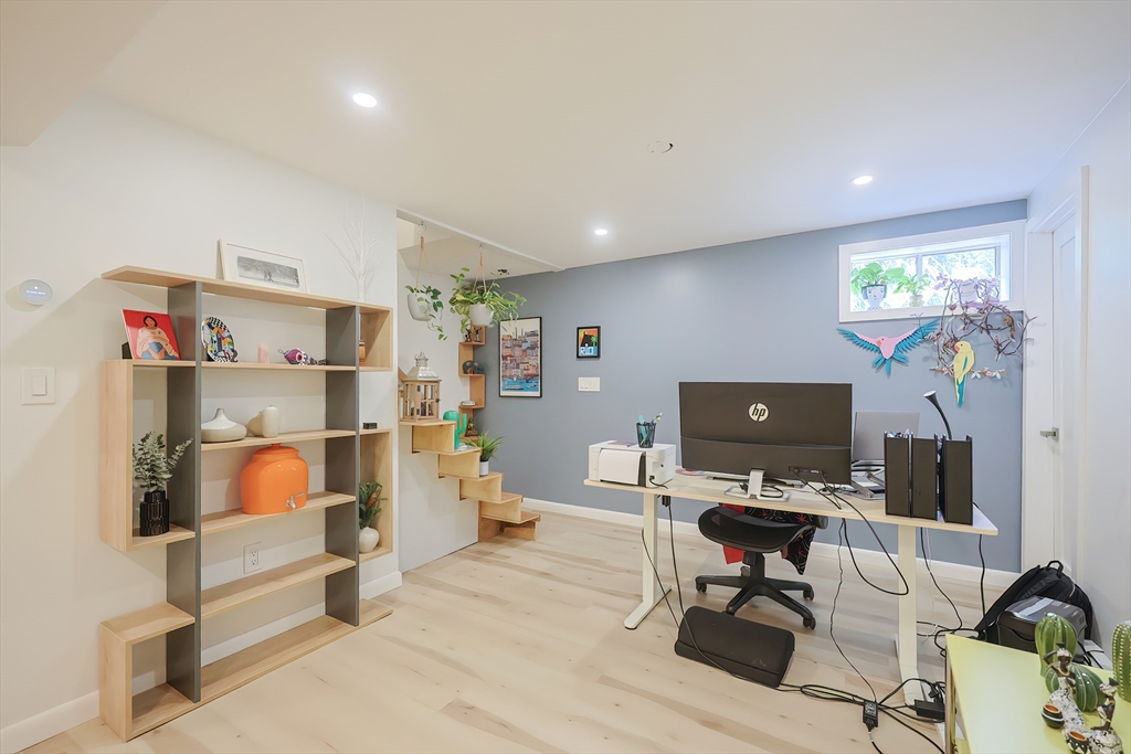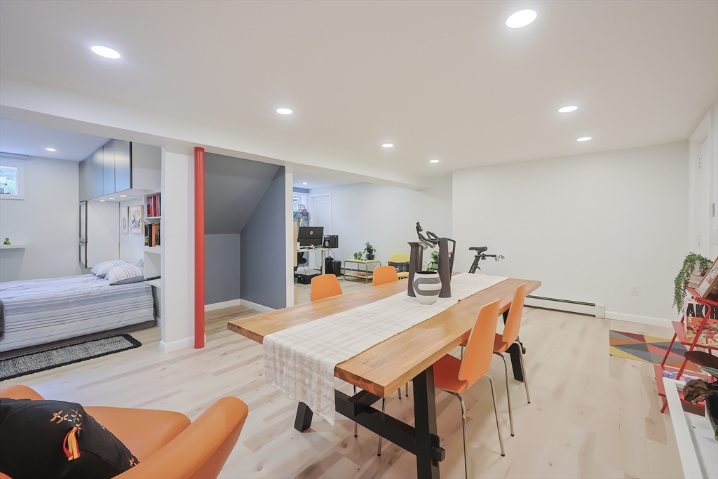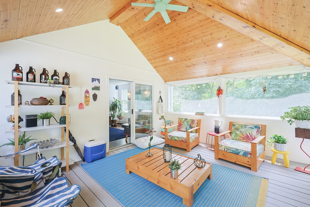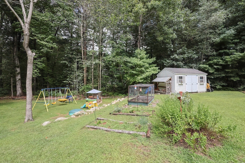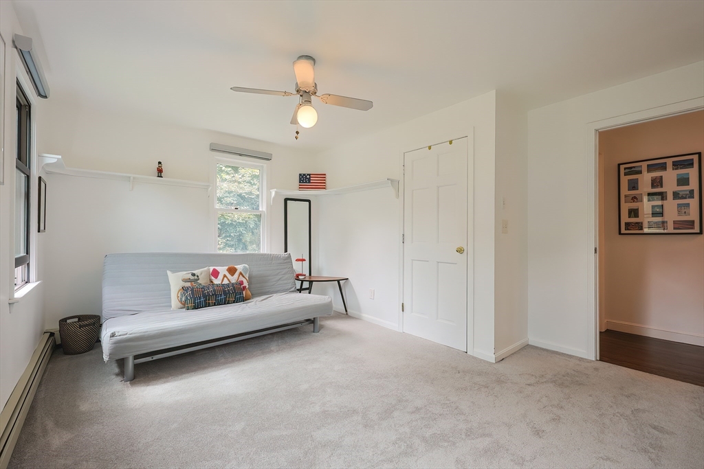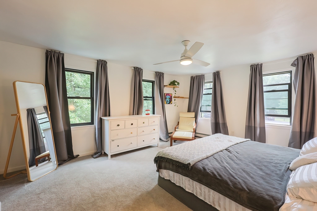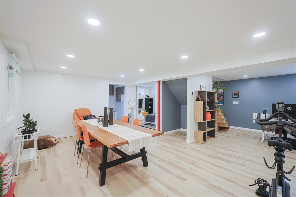 Beautifully updated home at the end of a quiet cul-de-sac! This 4-bed, 3-bath colonial offers a spacious eat-in kitchen with plenty of white cabinets, a large granite island, stacked stone backsplash, stainless steel appliances, a dining area, living room, and a family room with a cozy wood fireplace. Hardwood floors run throughout the first level along with a full bath. Upstairs features a full bath with double sinks and marble herringbone tile, a large front-to-back primary bedroom with walk-in closet, two additional bedrooms, and a convenient laundry room. The high-ceiling walk-up attic offers great potential for expansion. Enjoy the enclosed porch with newer wooden ceiling leading to a composite deck and private backyard abutting conservation trails. The remodeled walk-out basement includes a family room, bedroom, stunning tiled full bath, and a water connection—perfect for adding a bar or kitchenette. Make this your new home!