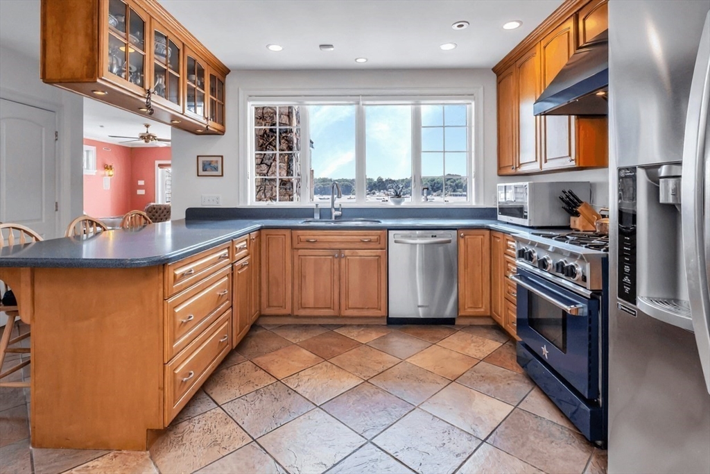 Welcome to 33 Crescent Avenue, a rare offering with direct riverfront access, featuring a rare, permitted, tidal dock and private mooring—perfect for boating, kayaking, and paddleboarding at high tide. This 4-bedroom, 3-bath home has been thoughtfully updated with high-end appliances, custom finishes, a fully finished basement with a bar, Murphy bed and bath for guests and a layout designed for comfort and entertaining. The open-concept main level is filled with natural light and offers sweeping views of the Danvers River. Whether you're hosting guests or enjoying a quiet morning on the deck, the connection to the water is always front and center. Ideally located close to downtown Beverly, the commuter rail, and with easy highway access, this home combines the serenity of waterfront living with the convenience of everything the North Shore has to offer.