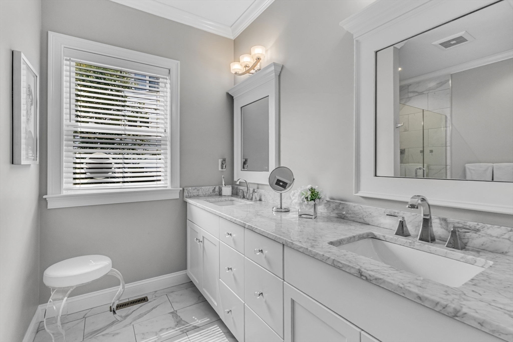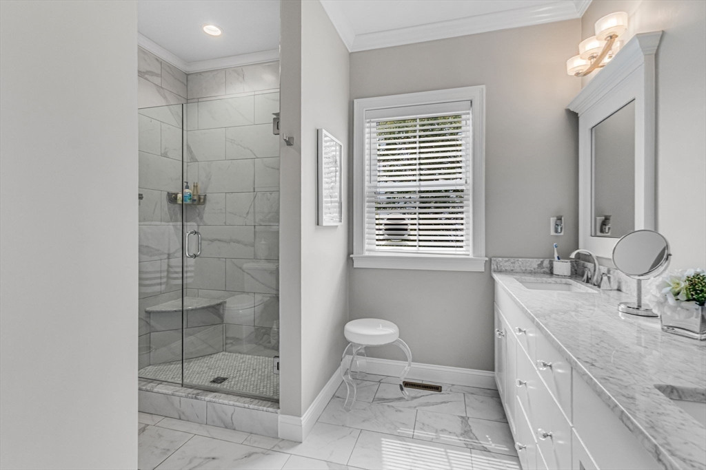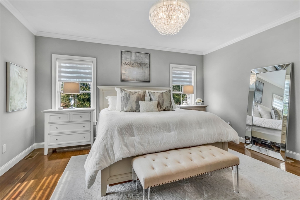 Enjoy luxury living in this impeccably maintained & beautifully decorated detached Cape style home at Rockwood Meadows- an upscale, highly desirable 55+ community. No details have been overlooked in this pristine home that tastefully combines elegance, functionality & comfort. The main level features an open concept w/ 9 ft ceilings & gorgeous hardwood floors. The kitchen boasts stunning custom white cabinets, an 11’x4’ quartz island, marble backsplash, double ovens & Café/Bosch appliances- sure to please seasoned cooks & avid entertainers. It flows seamlessly w/ the dining area, family room w/ gas fireplace & sitting room/office. There is triple crown molding & wainscoting throughout. The primary suite,1/2 bath, mudroom/laundry room w/ beadboard complete the 1st floor. The 2nd level offers an additional bedroom, loft area, office w/ French door & full bath. Beautiful sunsets from the composite deck & paver patio covered by an electric awning. Clubhouse w/ gym & many activities.