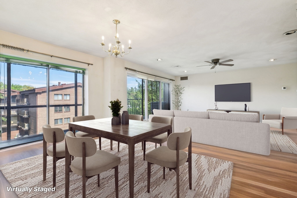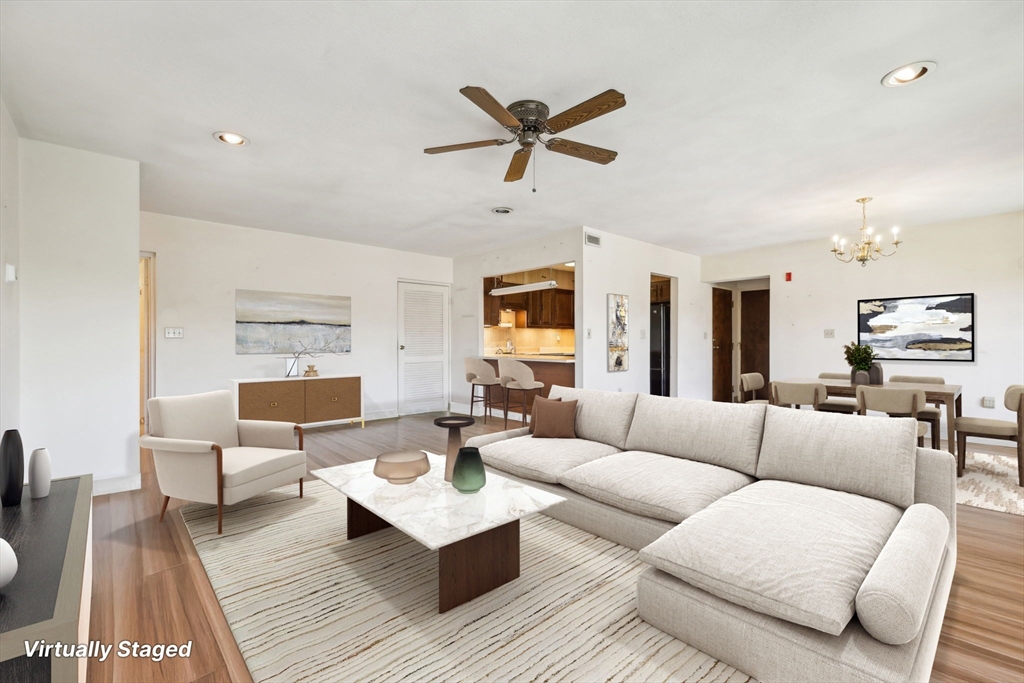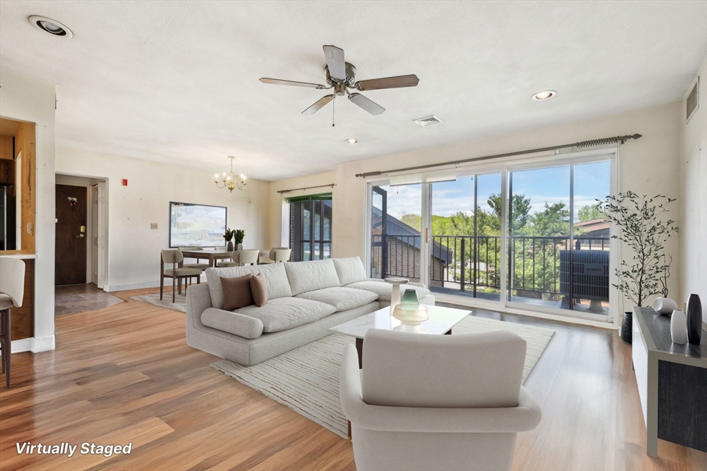 Rare 3-bedroom penthouse at highly desired Ledgewood Condominiums. This top-floor unit offers a bright open-concept layout with greenhouse-style nook and large balcony (new double sliders 2025) overlooking pool and clubhouse. The kitchen features plentiful cabinetry and peninsula seating. Highlights: in-unit laundry (2024 high-efficiency steam washer and 7?cu?ft dryer), abundant closets, utility/storage room, and additional basement storage. The primary suite boasts double closets, en suite bath, and vanity dressing area. Energy-efficient 2025 window panels and sliding door improve insulation and light. Bosch HVAC (2022) ensures year-round comfort. Fresh paint and updated flooring will make this gem shine. The living and dining areas flow seamlessly into the kitchen, creating an inviting environment for both entertaining and everyday living. Enjoy gentle breezes and sunset colors from your private balcony, perfect for container gardening or quiet morning coffee. Elevator building, pool