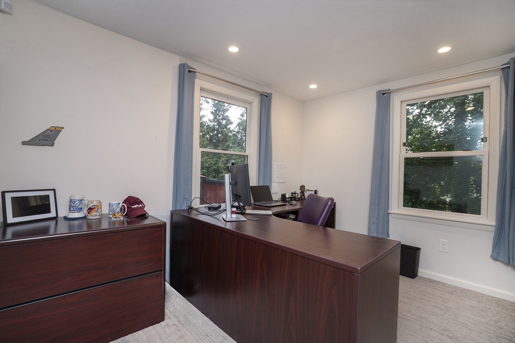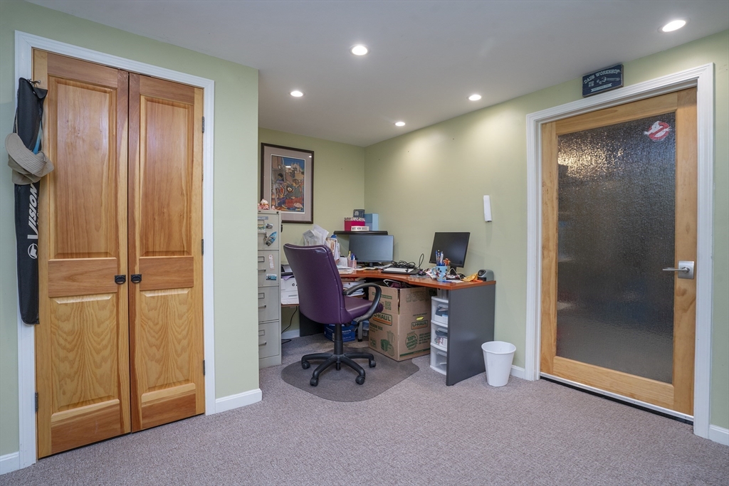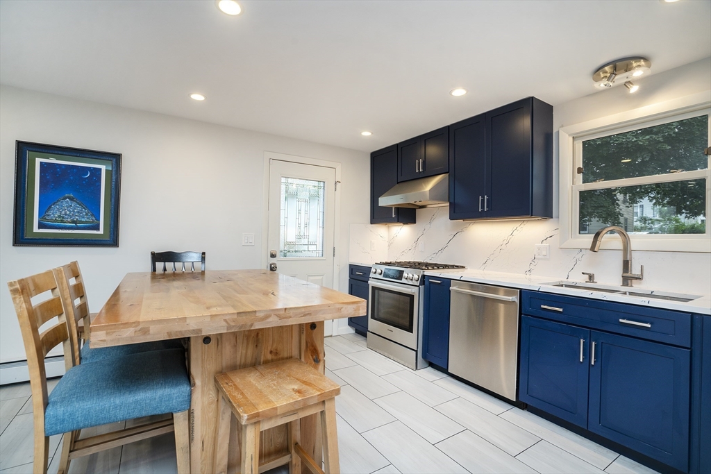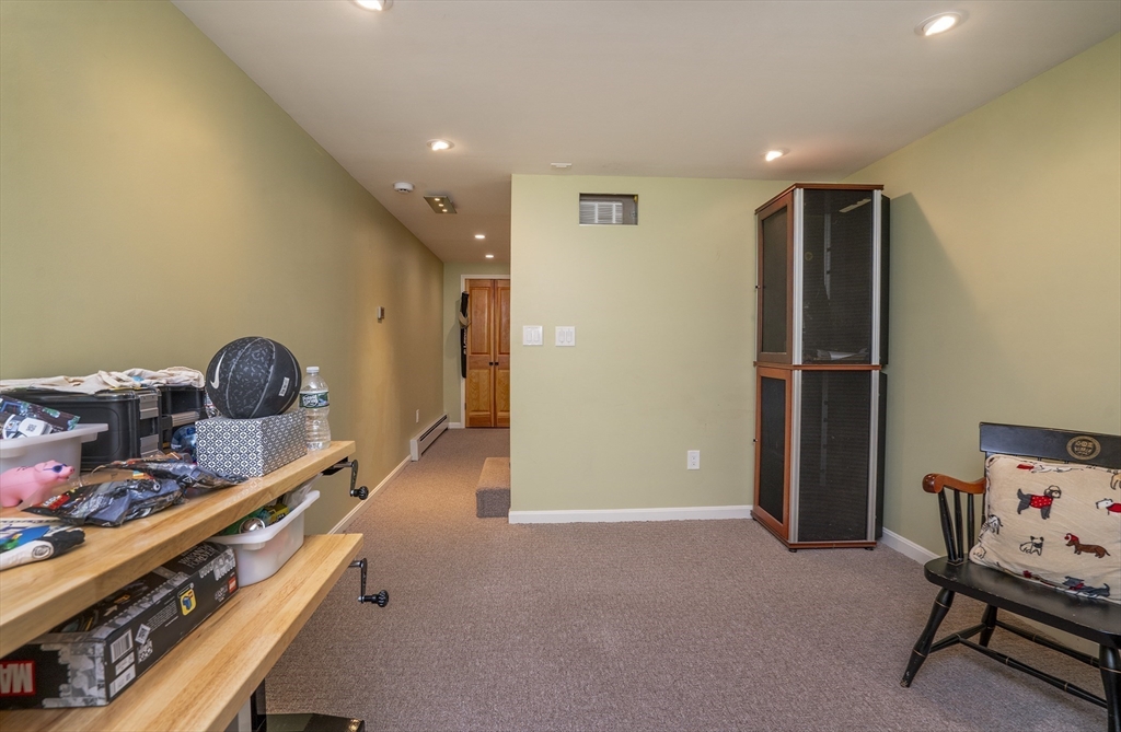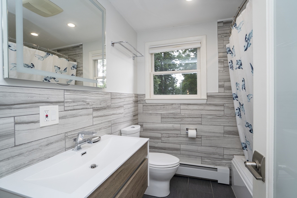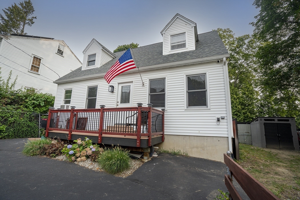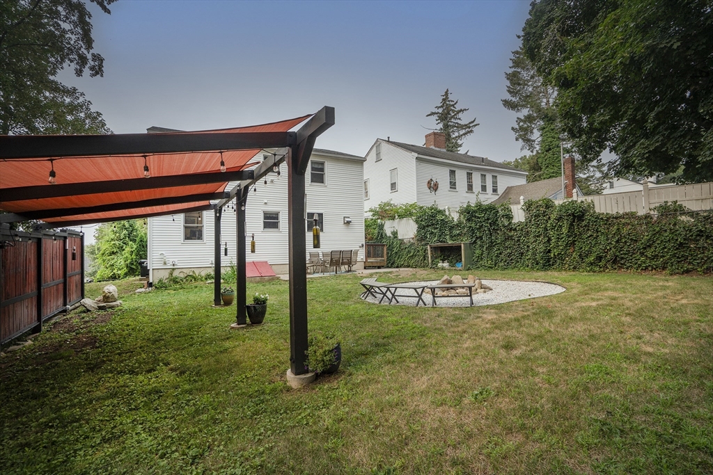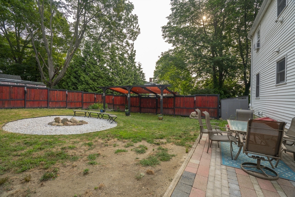 This private oasis is only steps away from downtown Amesbury.with its shops and restaurants. This cape built in 1996 is better than new. The beautiful, recently remodeled open kitchen with Bosch appliances and five burner gas stove has quartz countertops and soft close cabinetry. It is open to a dining area perfect for entertaining and gatherings. The living room is full of light and there is a bonus room that could be an office, hobby room or play room. Upstairs are three bedrooms and a full bath with cast iron soaker tub. The lower level has two finished rooms which offers all kinds of possibilities. But wait until you see the fenced yard. There's a large patio, a fire pit and a shaded sanctuary.