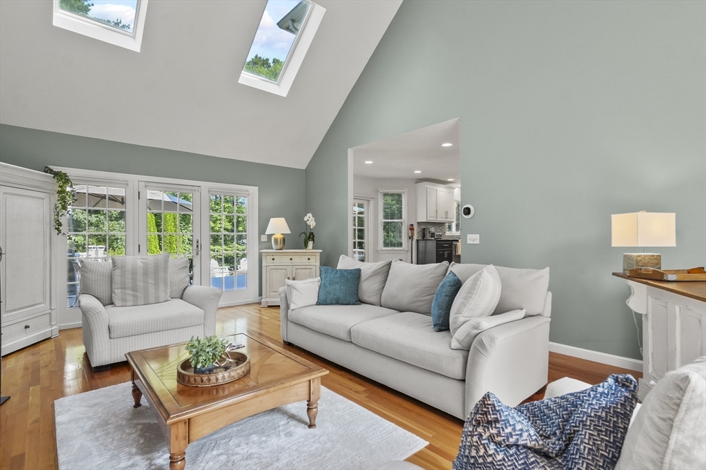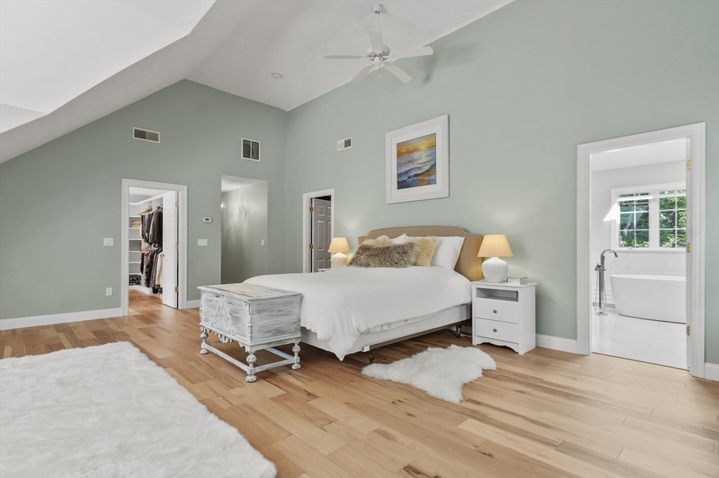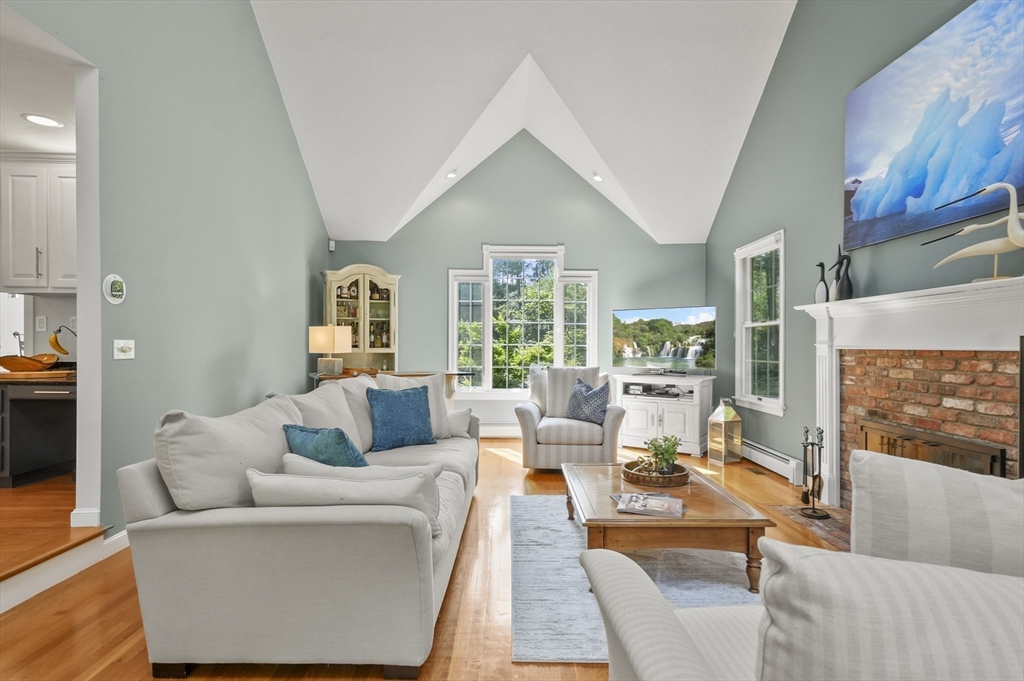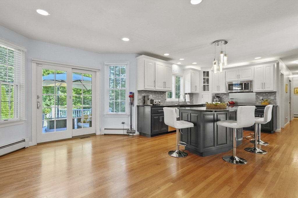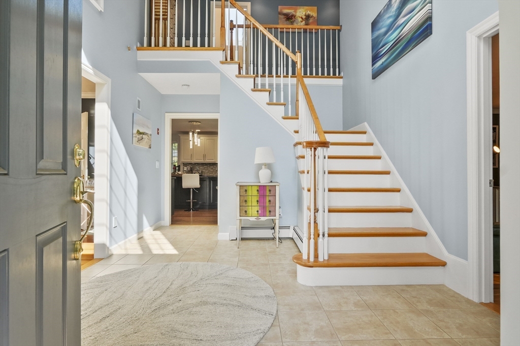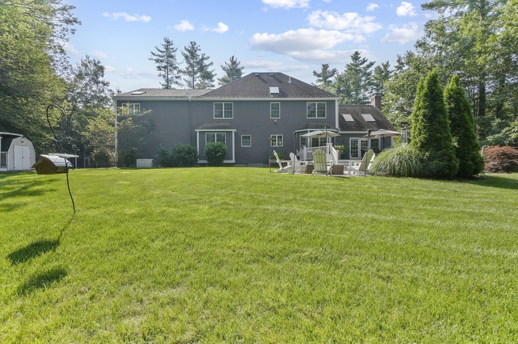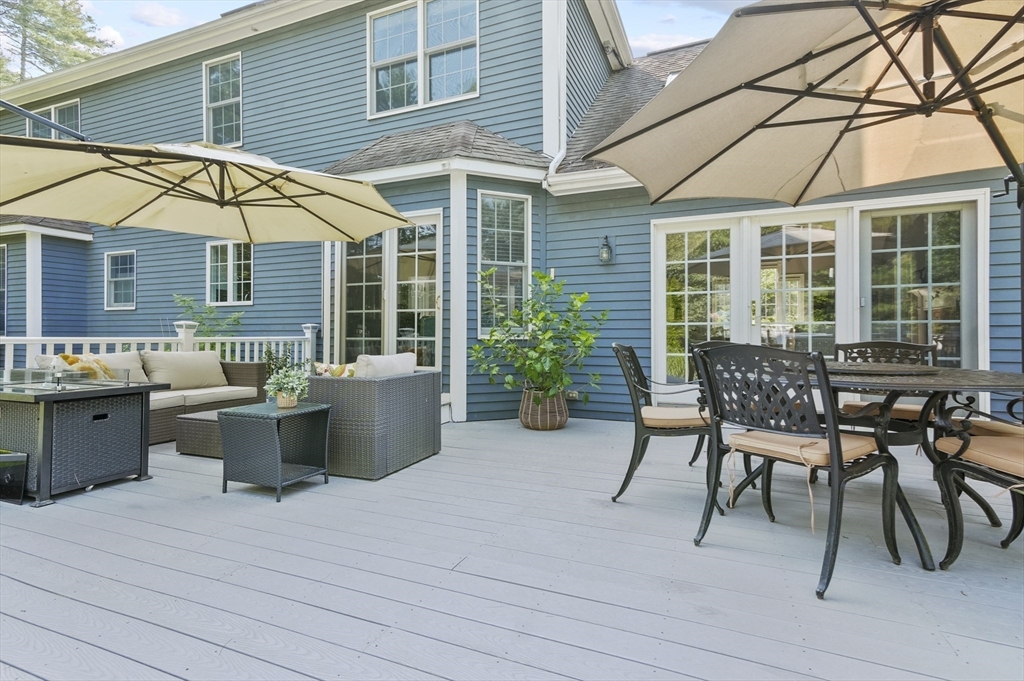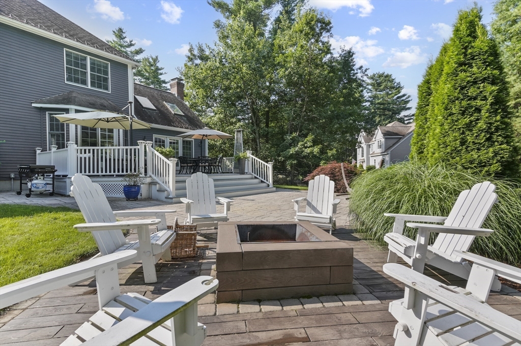 Pride of ownership shines in this elegant 4-bedroom, 2.5-bath Colonial, beautifully sited on over an acre in sought-after Stow. Gleaming hardwood floors flow throughout the first level. The bright, updated kitchen—truly the heart of the home—features a skylight, granite countertops, stainless steel appliances, center island, recessed lighting, and abundant cabinetry. The adjoining dining room with French doors is ideal for entertaining, while the spacious family room offers vaulted ceilings, and cozy fireplace. A sliding glass door leads to an expansive composite deck overlooking a private backyard oasis with paver patio and fire pit. Upstairs, retreat to the fully renovated, spa-like primary suite with vaulted ceilings, a luxurious en-suite bath, two walk-in closets—one a custom dressing room bathed in natural light. A 3-car garage with epoxy floor and oversized parking adds convenience. Meticulously maintained and move-in ready!