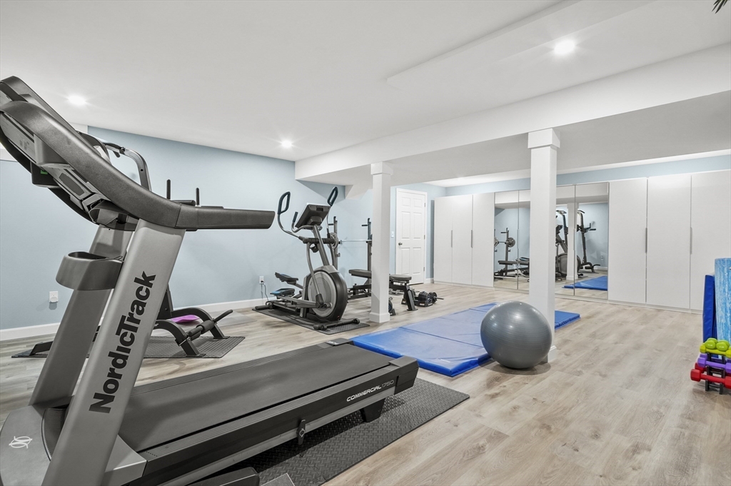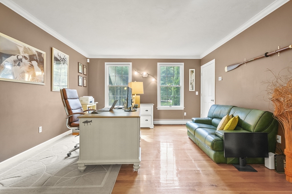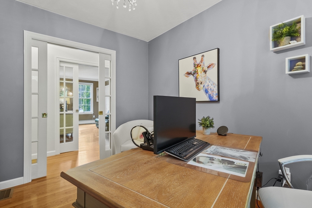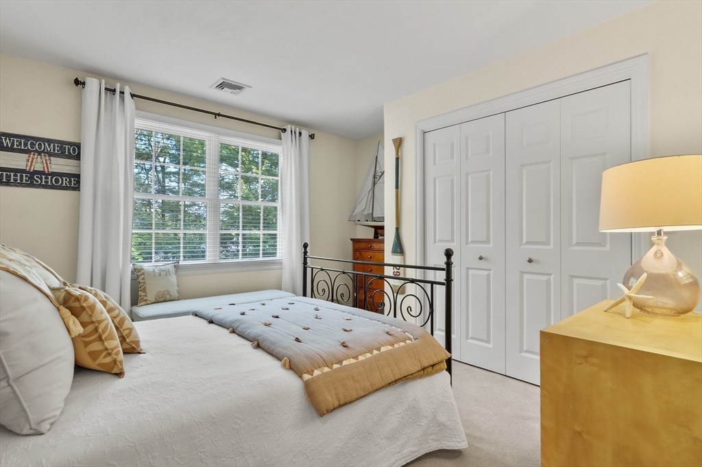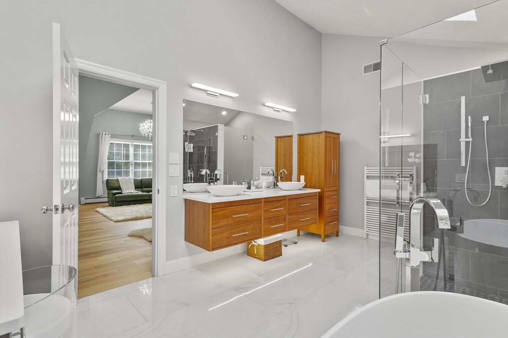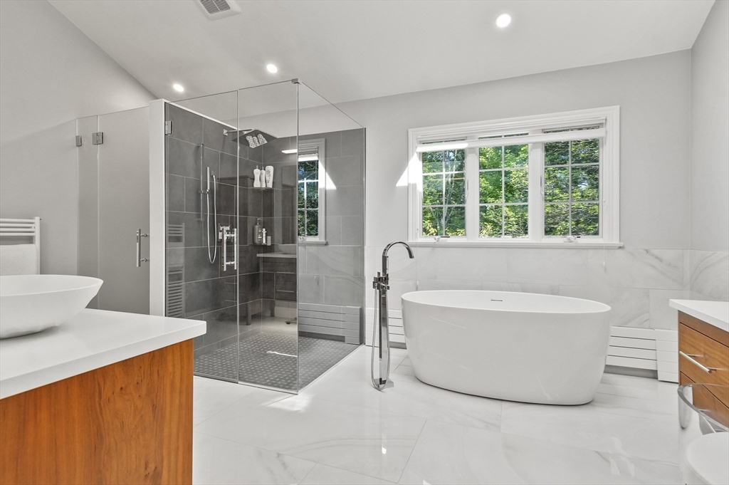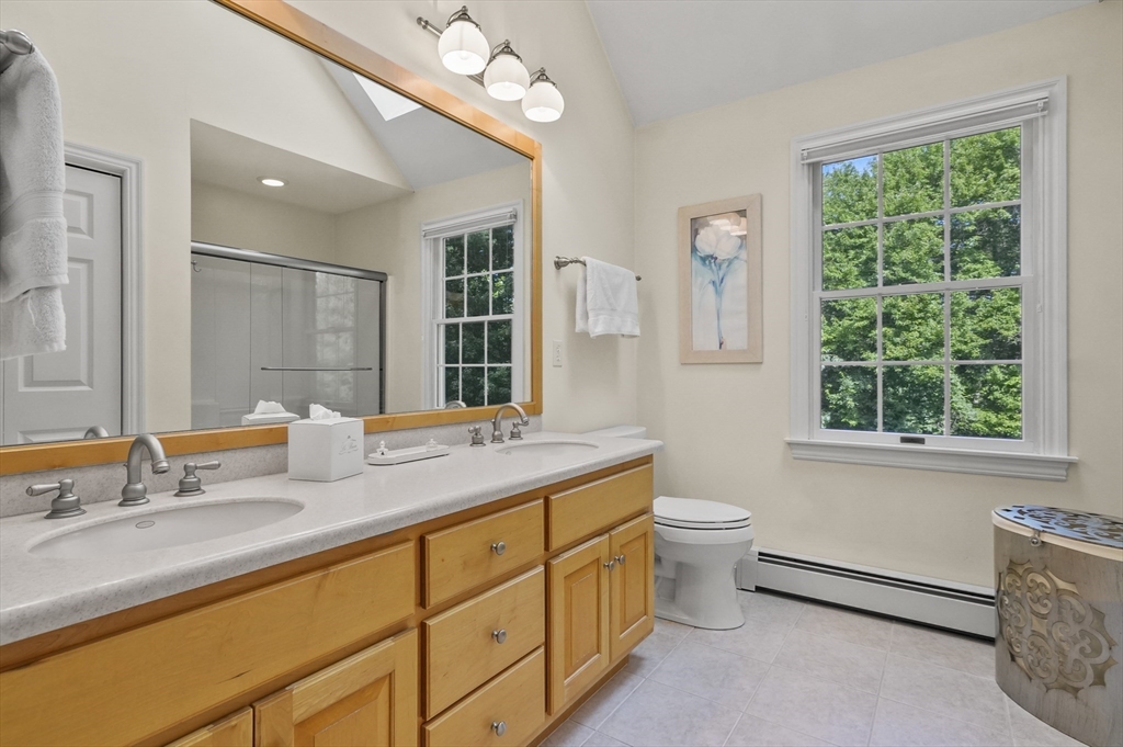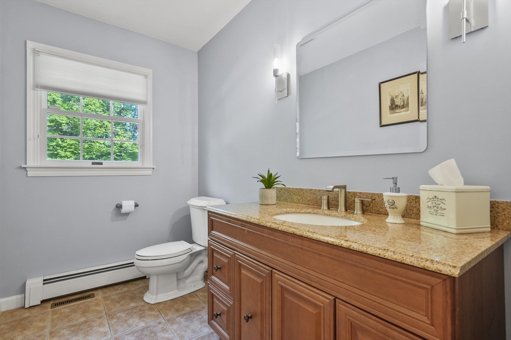 Pride of ownership shines in this elegant 4-bedroom, 2.5-bath Colonial, beautifully sited on over an acre in sought-after Stow. Gleaming hardwood floors flow throughout the first level. The bright, updated kitchen—truly the heart of the home—features a skylight, granite countertops, stainless steel appliances, center island, recessed lighting, and abundant cabinetry. The adjoining dining room with French doors is ideal for entertaining, while the spacious family room offers vaulted ceilings, and cozy fireplace. A sliding glass door leads to an expansive composite deck overlooking a private backyard oasis with paver patio and fire pit. Upstairs, retreat to the fully renovated, spa-like primary suite with vaulted ceilings, a luxurious en-suite bath, two walk-in closets—one a custom dressing room bathed in natural light. A 3-car garage with epoxy floor and oversized parking adds convenience. Meticulously maintained and move-in ready!