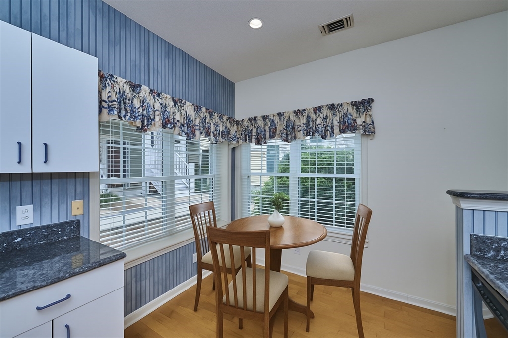 Welcome to sought-after Devon Woods. Step inside this beautifully maintained townhouse featuring a two story foyer with skylight leading to a spacious eat in kitchen with abundant cabinets, granite counters, and pantry. The bright living room offers a cozy wood burning fireplace and a slider leading to a private front porch—ideal for morning coffee or evening relaxation. Upstairs, you'll find a lofted entry to two generous bedrooms, each with ample closet space, vaulted ceilings, and connected by a Jack-and-Jill full bathroom. The primary bedroom features a walk-in closet. Additional highlights include in-unit laundry, hardwood floors, central heat and A/C, outdoor storage closet, a 1-car garage plus separate deeded parking space, and plenty of guest parking. Enjoy all the amenities of Devon Woods, including a sparkling inground pool, tennis courts, and clubhouse. Don't wait for the open house and schedule your private appointment today!