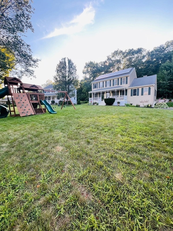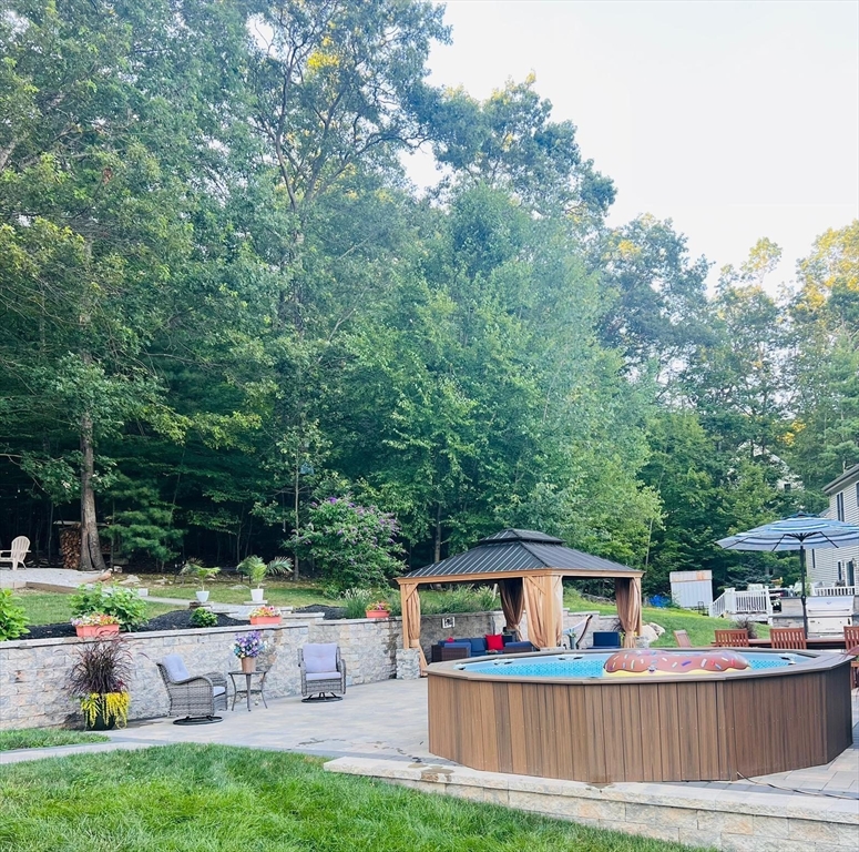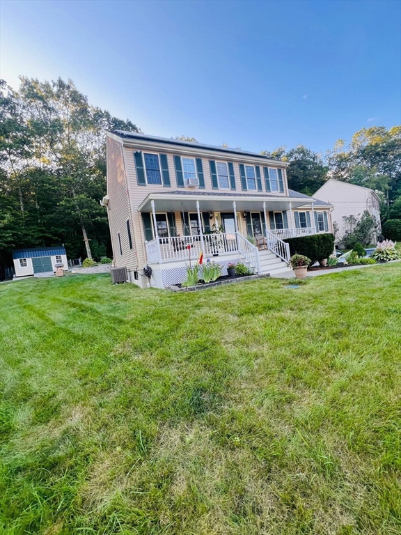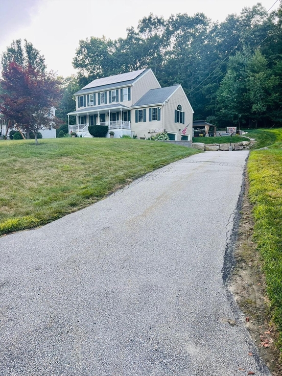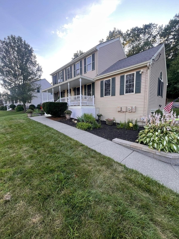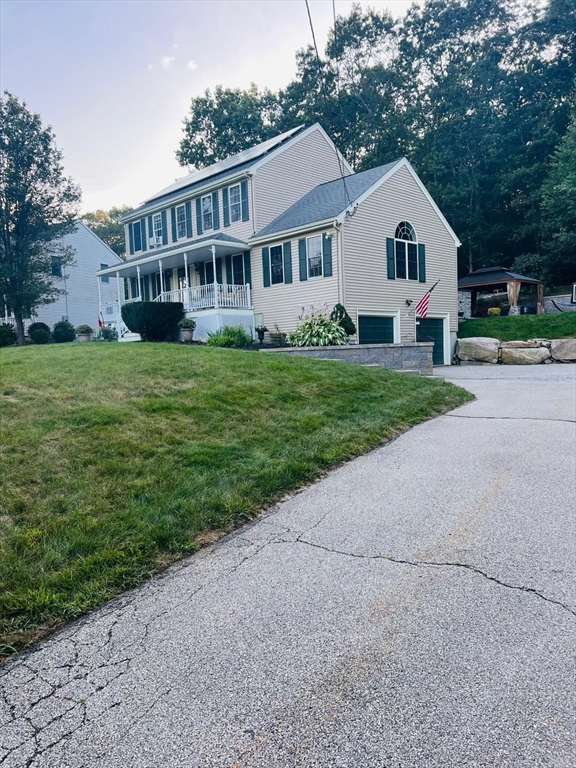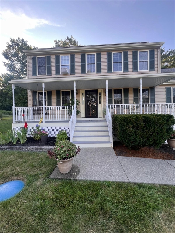 Open House: Saturday & Sunday, 12:00–1:30 PM. Don’t miss this opportunity to own a charming 3-bedroom, 2.5-bath Colonial nestled on just over an acre in a desirable cul-de-sac location! The first floor features gleaming hardwood floors throughout, an oversized living room with a pellet fireplace, a half bath with laundry, a sunny eat-in kitchen, and a spacious dining room with sliding doors leading to a beautifully landscaped backyard. Step outside to enjoy a stone patio, custom-built BBQ area, and fire pit -perfect for entertaining. Upstairs, the lovely primary suite offers two closets and a private bath. Two additional generously sized bedrooms and a full bathroom complete the second floor. This home offers comfort, space, and outdoor enjoyment in a sought-after neighborhood .