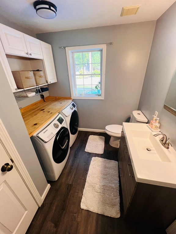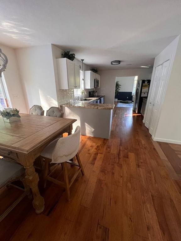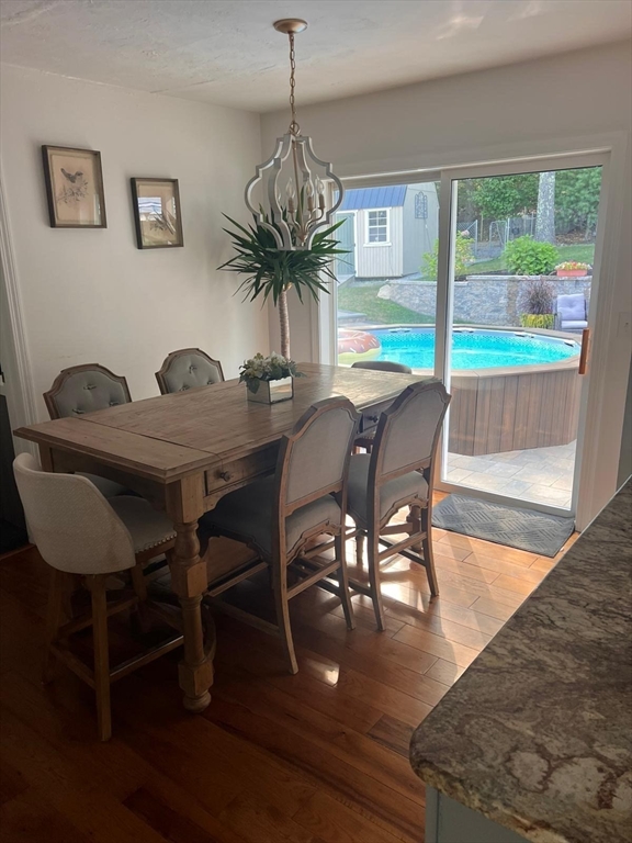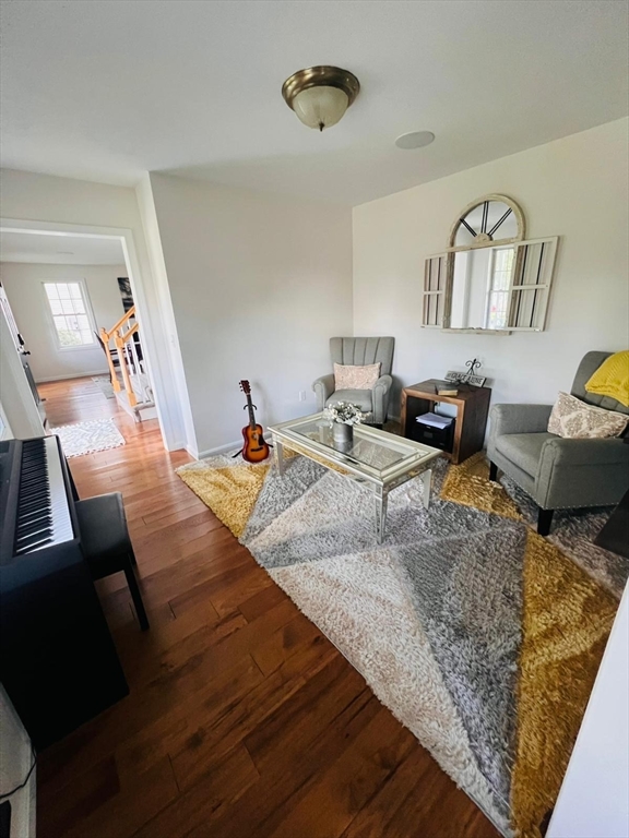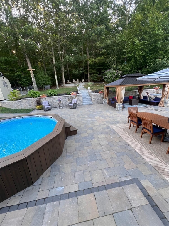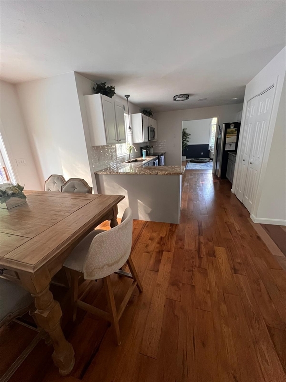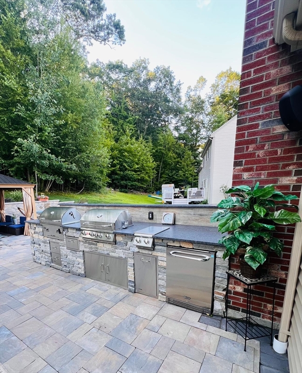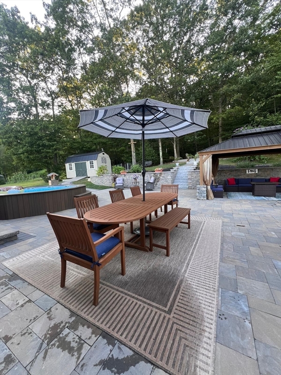 Open House: Saturday & Sunday, 12:00–1:30 PM. Don’t miss this opportunity to own a charming 3-bedroom, 2.5-bath Colonial nestled on just over an acre in a desirable cul-de-sac location! The first floor features gleaming hardwood floors throughout, an oversized living room with a pellet fireplace, a half bath with laundry, a sunny eat-in kitchen, and a spacious dining room with sliding doors leading to a beautifully landscaped backyard. Step outside to enjoy a stone patio, custom-built BBQ area, and fire pit -perfect for entertaining. Upstairs, the lovely primary suite offers two closets and a private bath. Two additional generously sized bedrooms and a full bathroom complete the second floor. This home offers comfort, space, and outdoor enjoyment in a sought-after neighborhood .