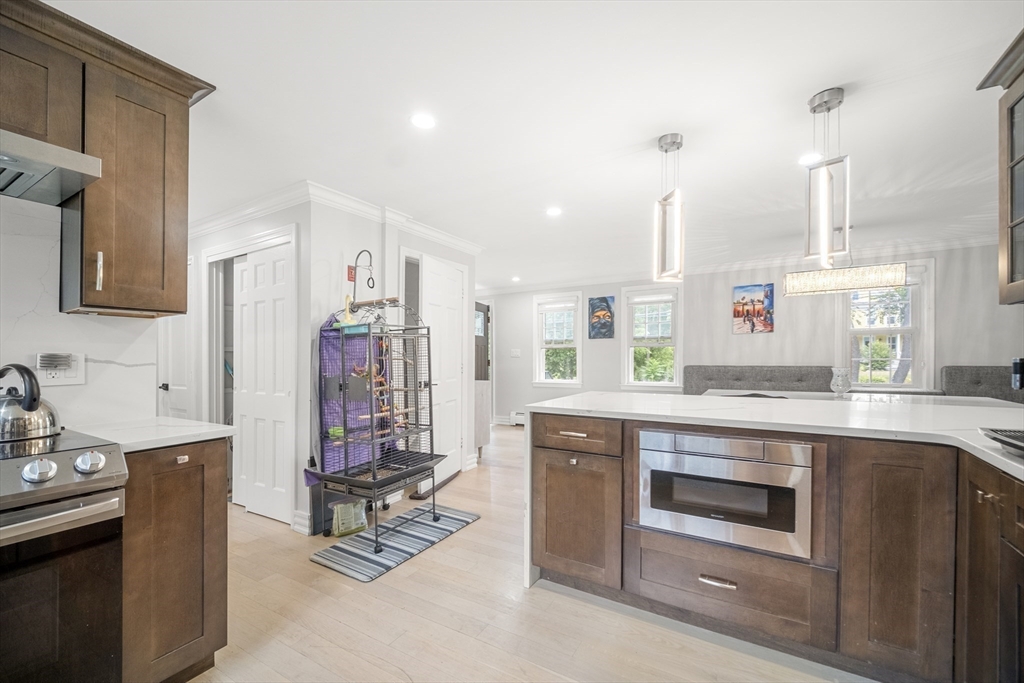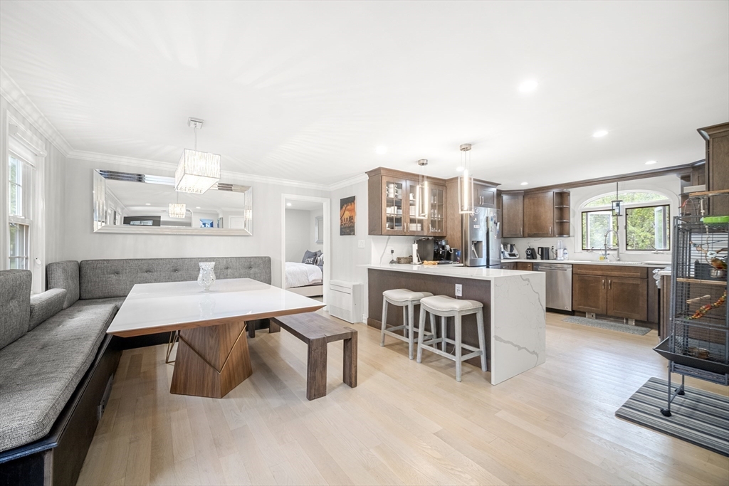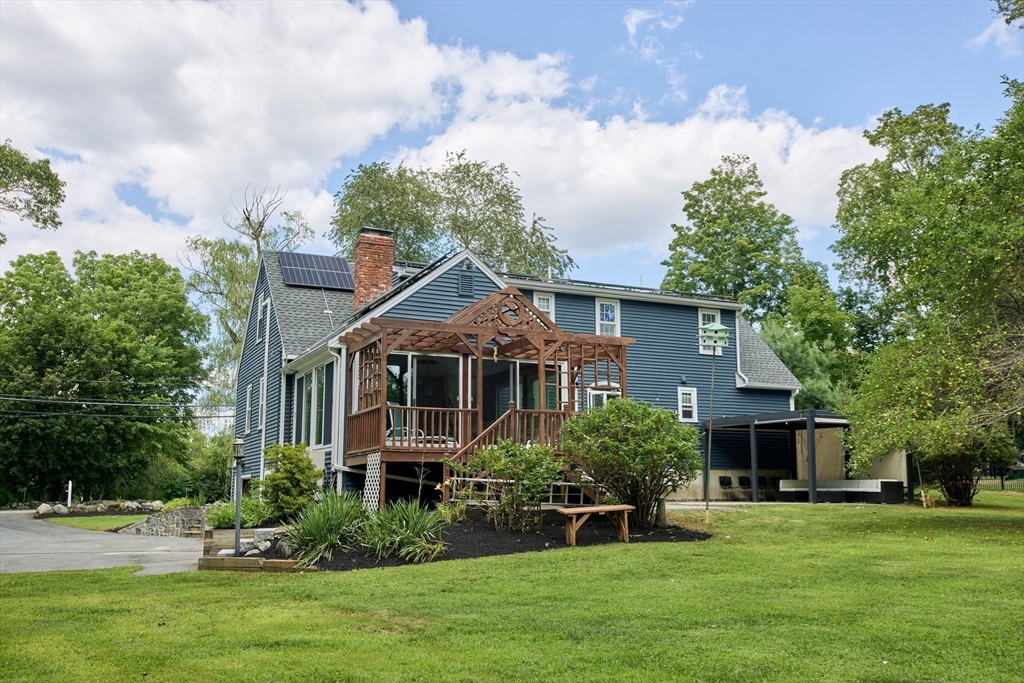 Located at 8 Pleasant St, Andover, MA, this single-family residence in Essex County presents an attractive property in great condition. The living room is designed with both comfort and elegance in mind, featuring a fireplace that serves as a focal point for relaxation and gathering, enhanced by the detailed crown molding and the character of a wood wall. In the kitchen, culinary endeavors are supported by shaker cabinets that offer ample storage and a peninsula, where form meets function, all complemented by crown molding. In the bathroom, the walk in shower is a highlight. Outside, the property offers a private retreat with a pergola, a fire pit for cozy evenings, a shed for storage, and a deck, all set within a generous 44213 square foot lot. With 3 full and 1 half bathrooms and 4 bedrooms, the residence provides ample accommodation within its 3200 square feet of living area. Parking is provided by a 2-space garage and ample parking. Owned solar panels (2023) and New roof (2021).