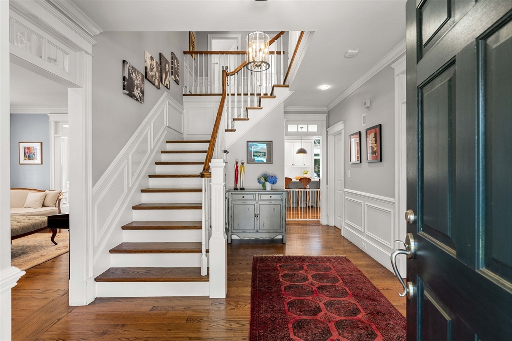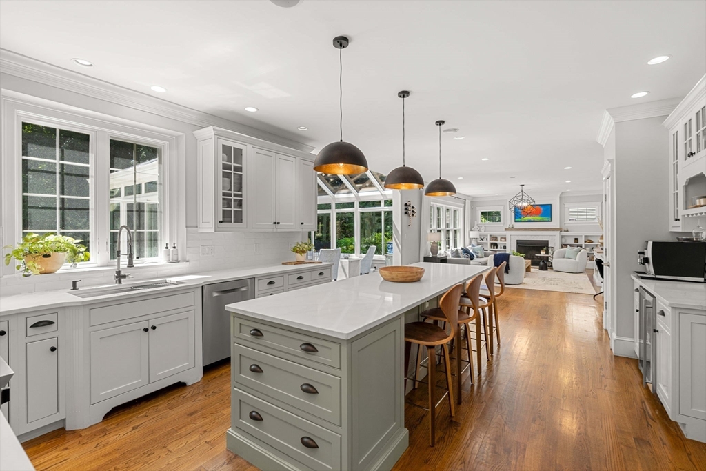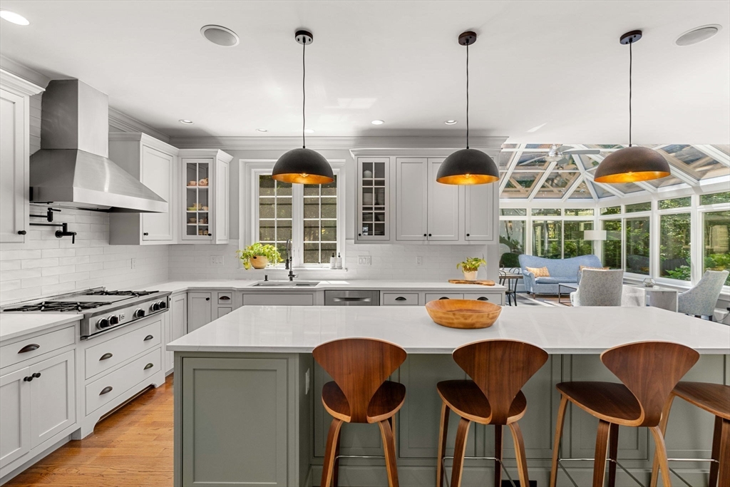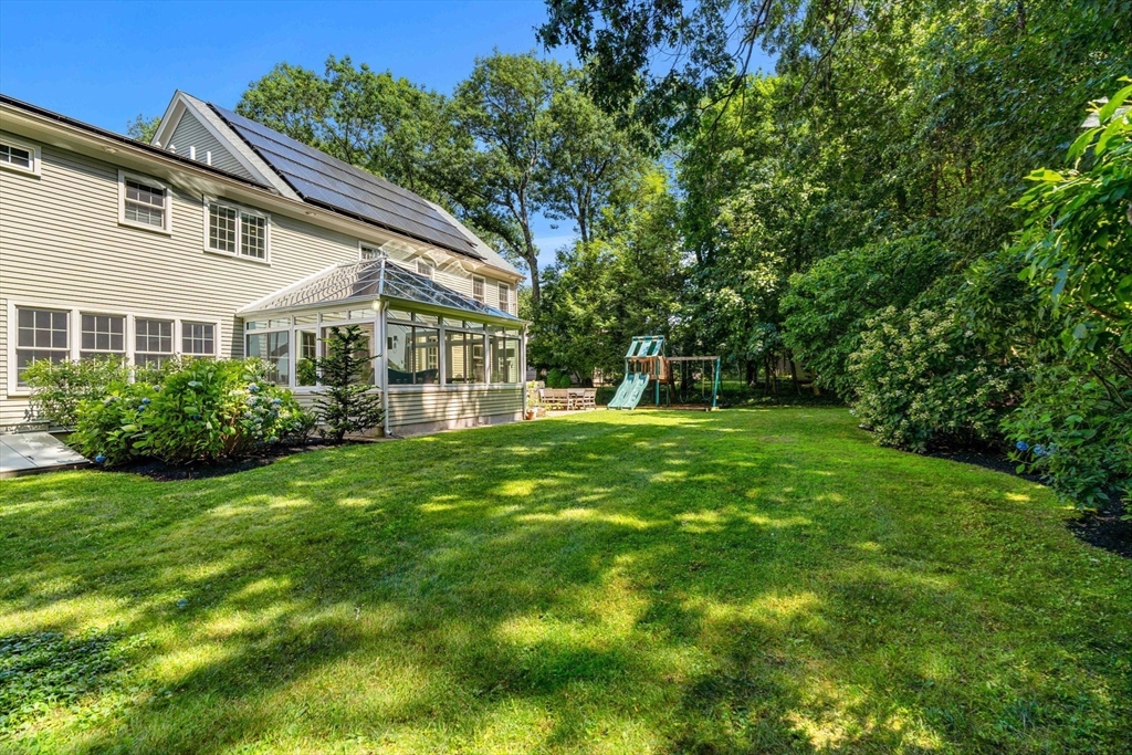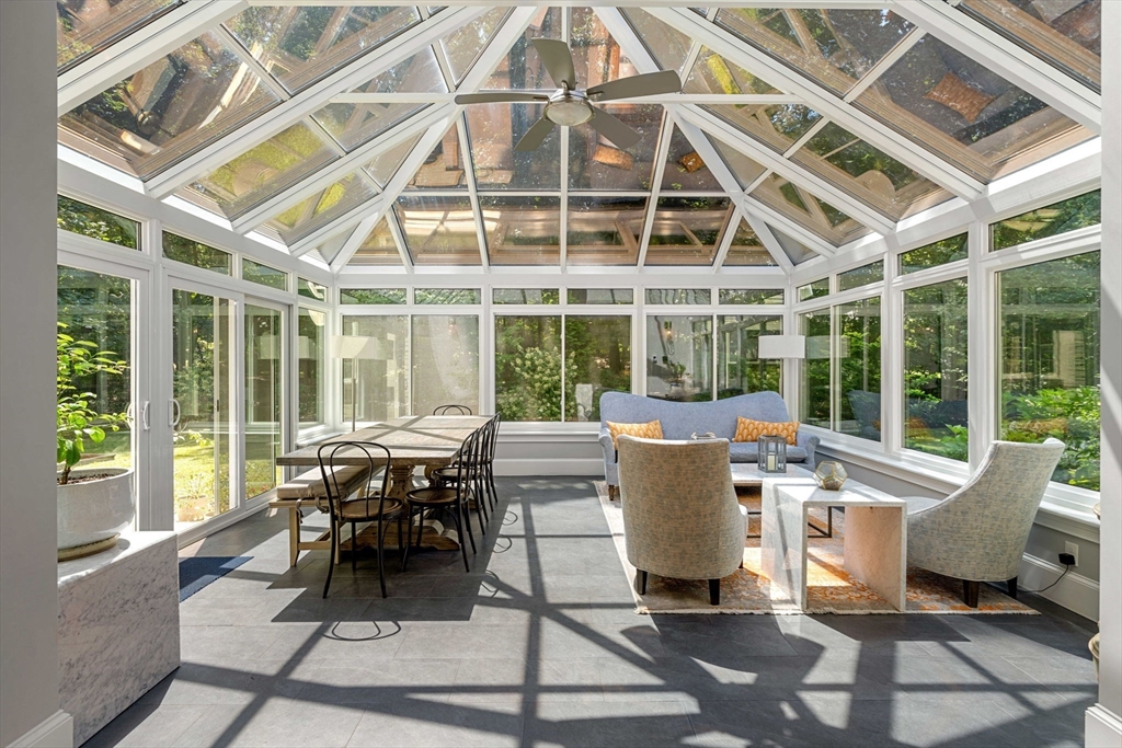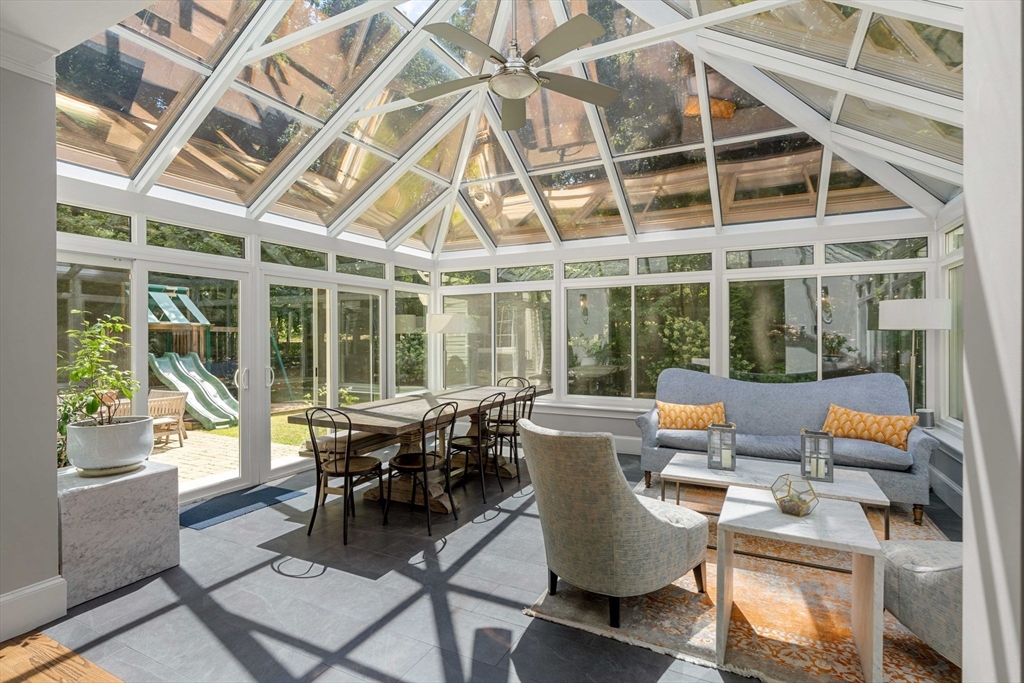 Step into modern elegance at 52 Laconia Street, a beautifully crafted Colonial by a renowned Lexington builder! Don't miss this 4 bedroom, 4.5 bath Colonial in one of Lexington’s most desirable neighborhoods. A stunning 2018 English sunroom overlooks the lush, fenced yard—perfect for year-round enjoyment. The renovated (2022) chef’s kitchen offers Sub-Zero refrigeration, commercial-grade cooktop, pot filler, wine fridge, and opens to a warm family room with wood-burning fireplace and custom built-ins. Gracious foyer leads to formal living and dining rooms with timeless millwork. Beamed home office offers a quiet retreat. Upstairs, the spacious primary suite includes a spa-like bath and oversized walk-in closet, plus a guest suite, Jack-and-Jill bath, and laundry. The private 3rd-floor loft adds flexible space. Finished lower level with full bath, media room, office/guest, and rec space. Bonus! Sonos sound system, intelligent lighting, Solar panels, 2 EV chargers, radiant heat and more!
