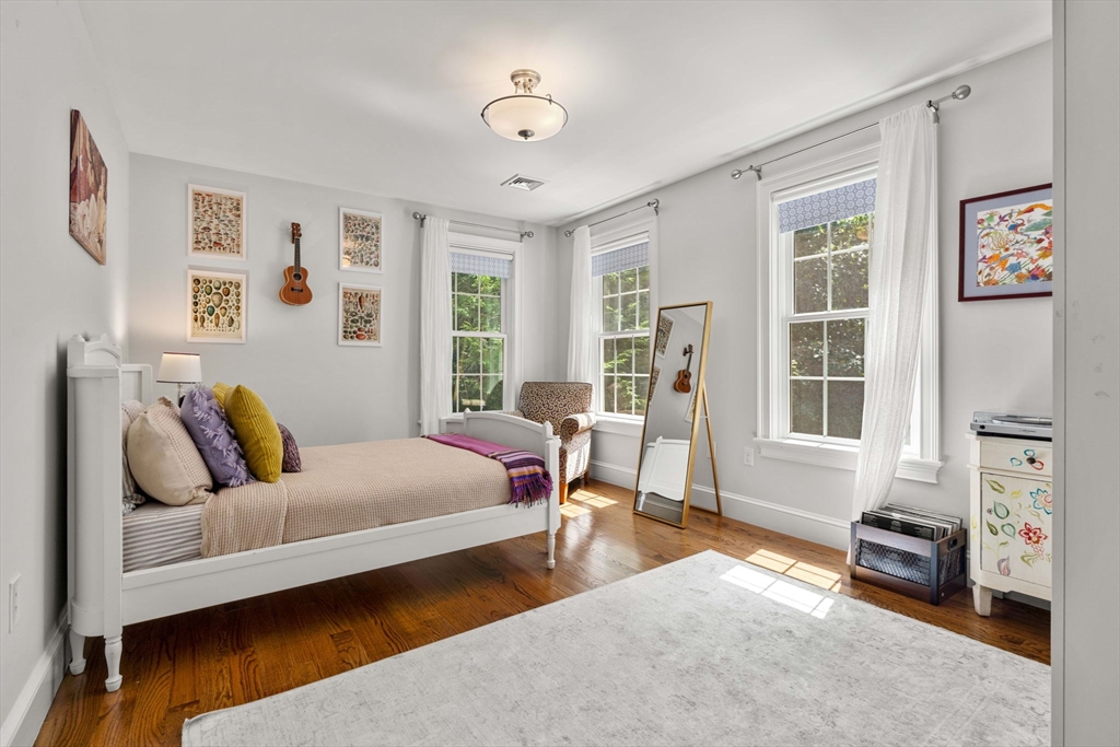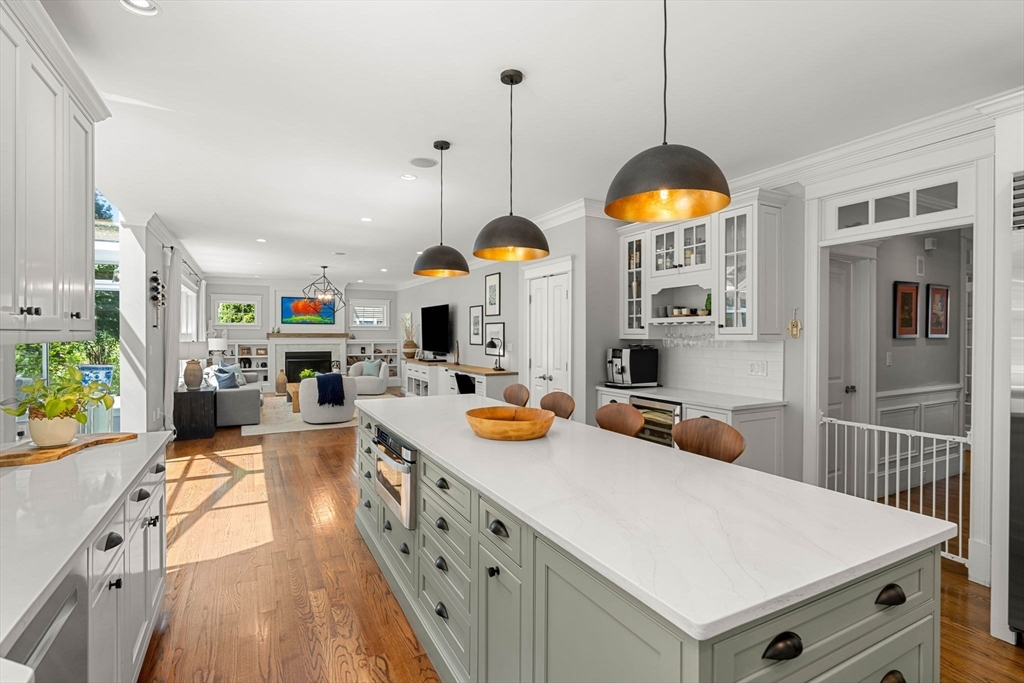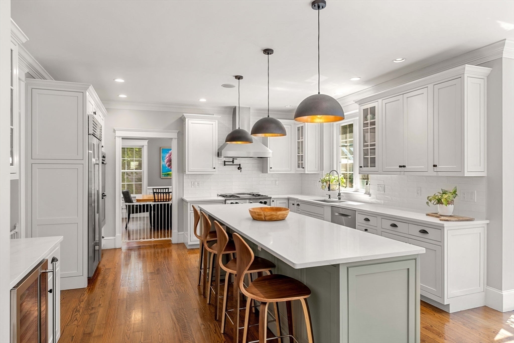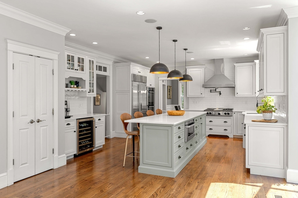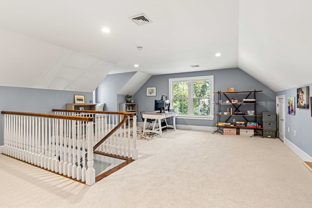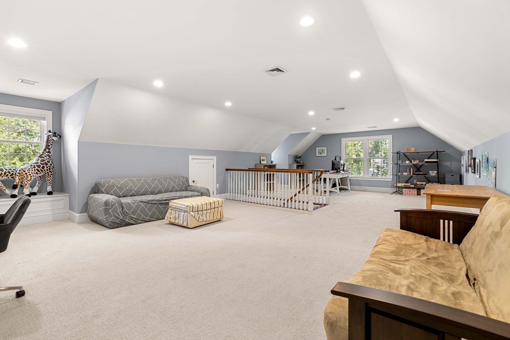 Step into modern elegance at 52 Laconia Street, a beautifully crafted Colonial by a renowned Lexington builder! Don't miss this 4 bedroom, 4.5 bath Colonial in one of Lexington’s most desirable neighborhoods. A stunning 2018 English sunroom overlooks the lush, fenced yard—perfect for year-round enjoyment. The renovated (2022) chef’s kitchen offers Sub-Zero refrigeration, commercial-grade cooktop, pot filler, wine fridge, and opens to a warm family room with wood-burning fireplace and custom built-ins. Gracious foyer leads to formal living and dining rooms with timeless millwork. Beamed home office offers a quiet retreat. Upstairs, the spacious primary suite includes a spa-like bath and oversized walk-in closet, plus a guest suite, Jack-and-Jill bath, and laundry. The private 3rd-floor loft adds flexible space. Finished lower level with full bath, media room, office/guest, and rec space. Bonus! Sonos sound system, intelligent lighting, Solar panels, 2 EV chargers, radiant heat and more!