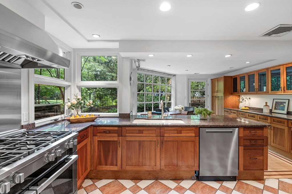 New to the market after 30 years! West Cambridge -- Brattle area. Tucked away atop a pastoral cul-de-sac; contemporary, light-filled, spacious single-family residence without peer in Cambridge. Numerous oversized windows create direct connection to nearly half-acre of lush, landscaped grounds. 2 large wood-burning fireplaces. Superb indoor & outdoor entertaining spaces. Luxurious open kitchen: new Miele 8-burner stove with speed oven, new SubZero fridge, granite countertops & generous informal dining area adjacent to a large dining room. All six bedrooms accommodate king beds! New washer & dryer. 3 spacious patios, 3 decks, and poolside overlook uninterrupted expanse of mature plantings. Secluded in-ground heated swimming pool designed by award-winning landscape architect Morgan Wheelock. 5 large adjacent landscaped yards create a private oasis. Private fully equipped gym just steps from the front door. 3-car parking plus additional spaces by convention. Rare & beautiful property.