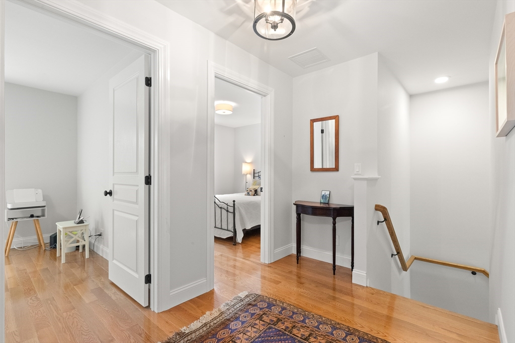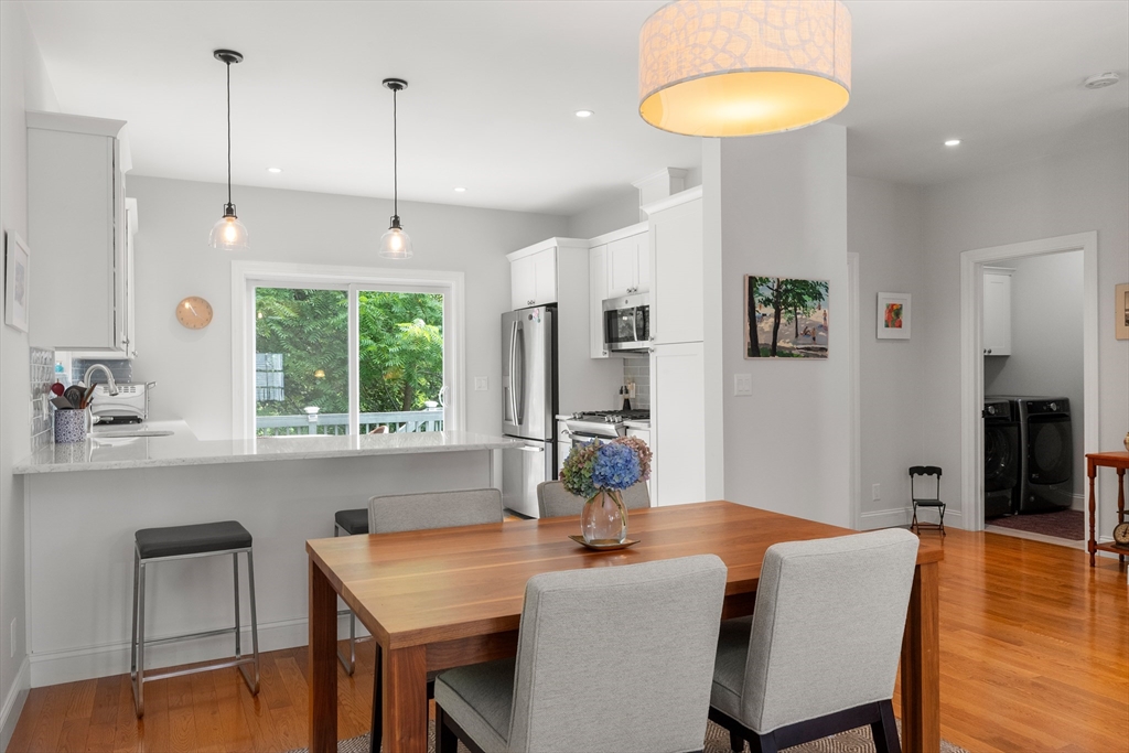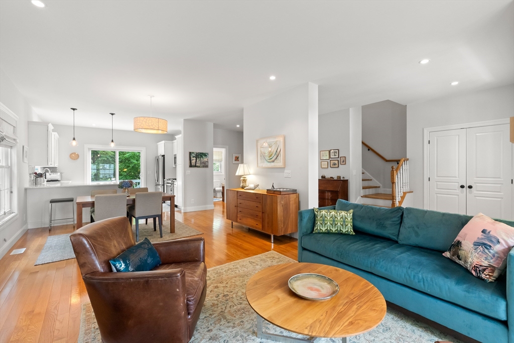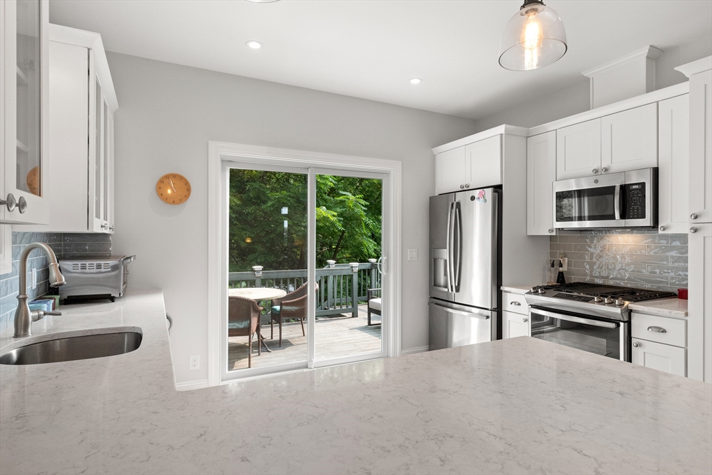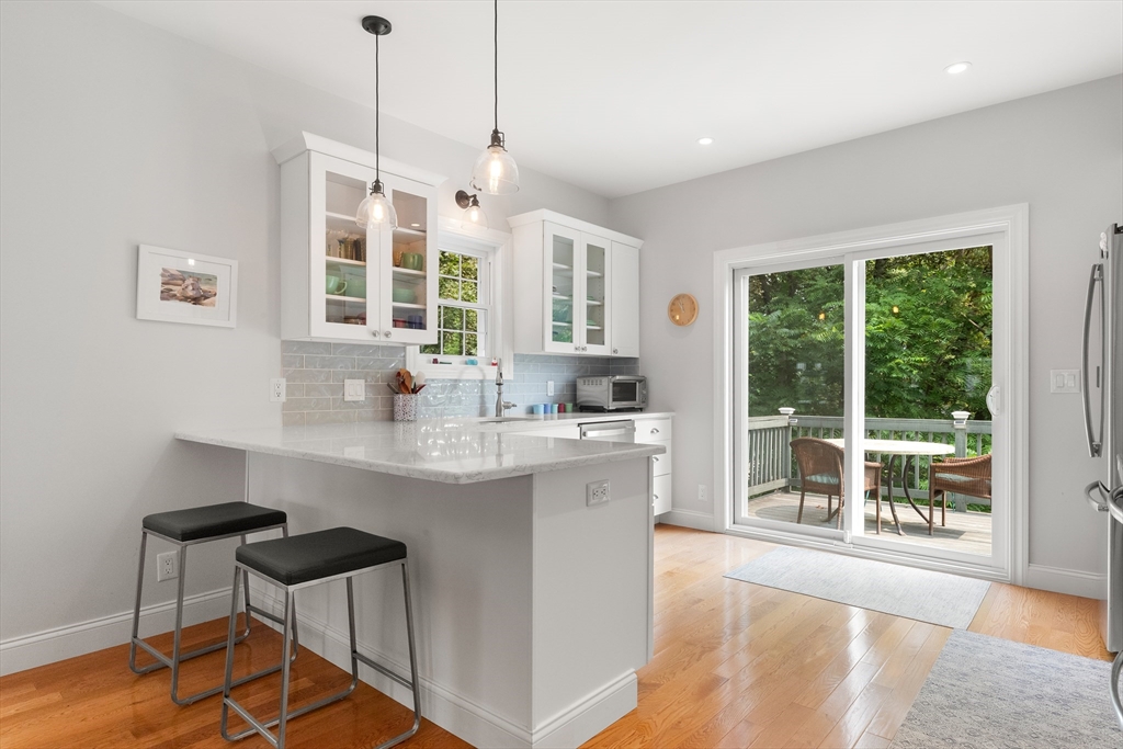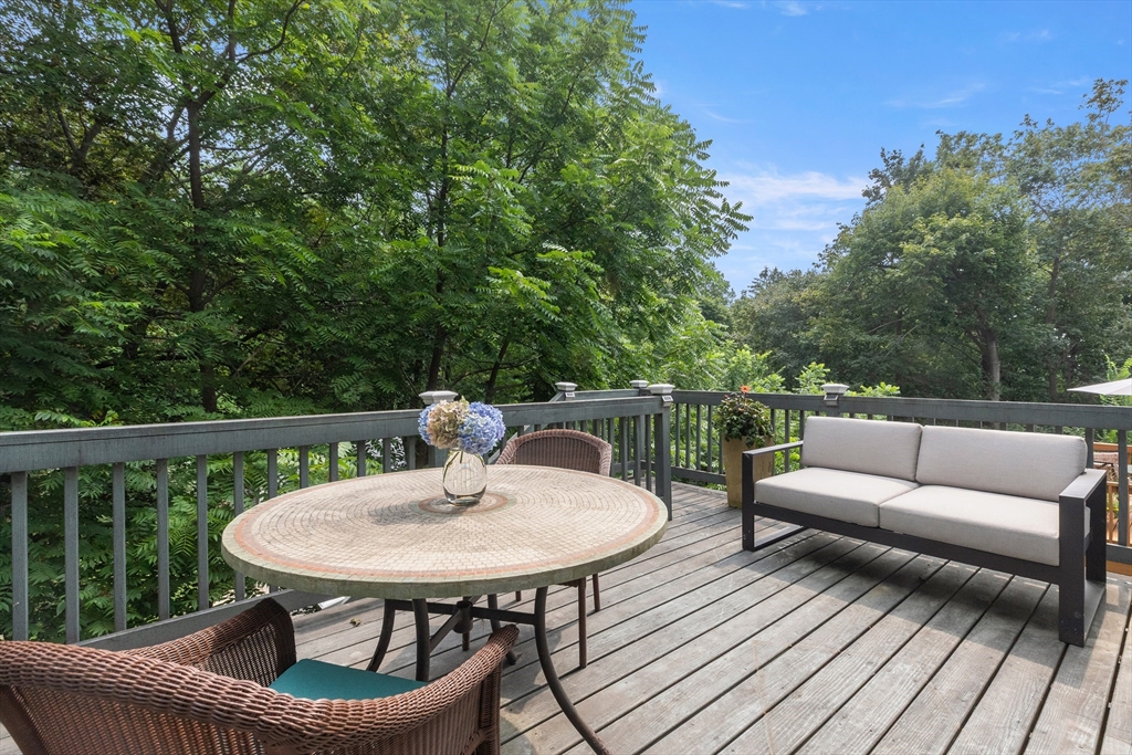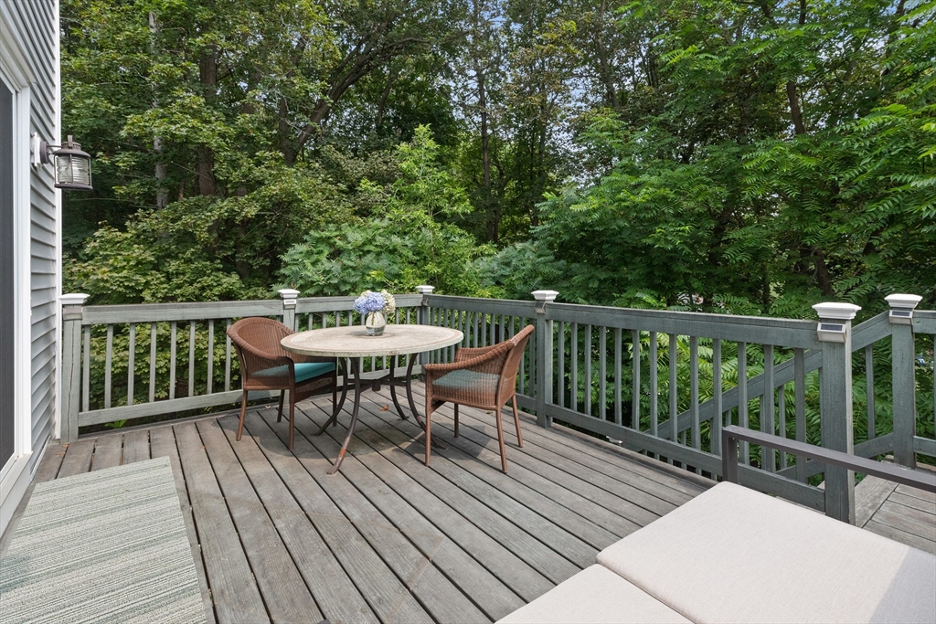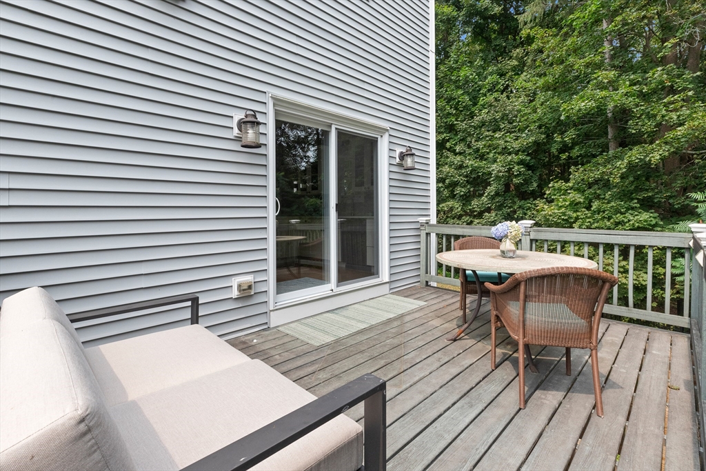 Perched high above downtown Ipswich, this beautifully maintained end-unit townhouse offers the perfect blend of privacy, convenience, & scenic views. Tucked away at the top of the hill on a quiet side street, this home faces a peaceful wooded backdrop while still being just minutes from the commuter rail, shops, schools, YMCA, & area beaches. Inside, the home is in move-in condition with a light, neutral interior & an open-concept main level featuring fireplaced living room, dining area, & breakfast bar that opens into the kitchen. Step right out onto the spacious back deck—ideal for relaxing or entertaining. Thoughtfully designed with ample storage throughout, the home includes generous bedroom closets, full basement, large laundry room, & a pull-down attic. Elfa closet systems have been installed in both the primary bedroom & laundry room. Recent updates include custom blinds throughout, new kitchen pull-outs, & newer dishwasher. Don't delay in calling this beautiful townhouse home!