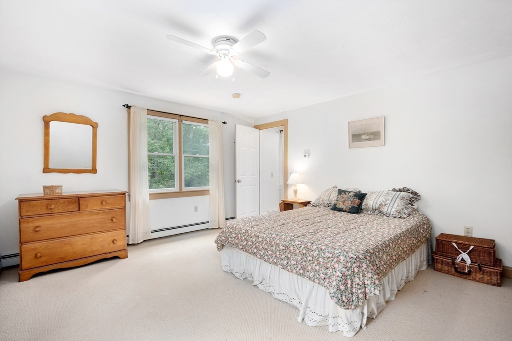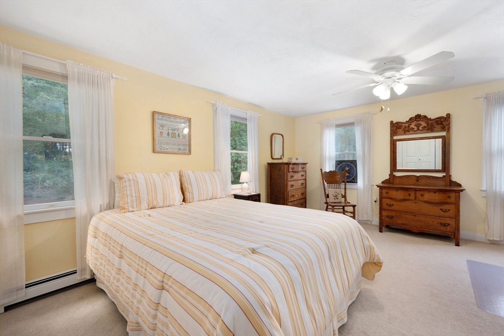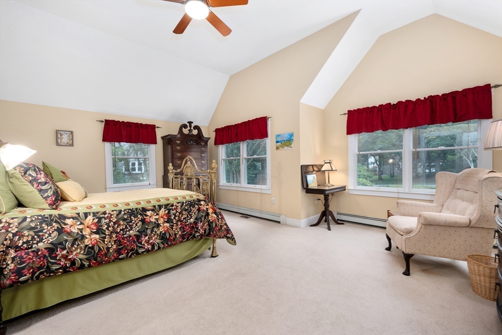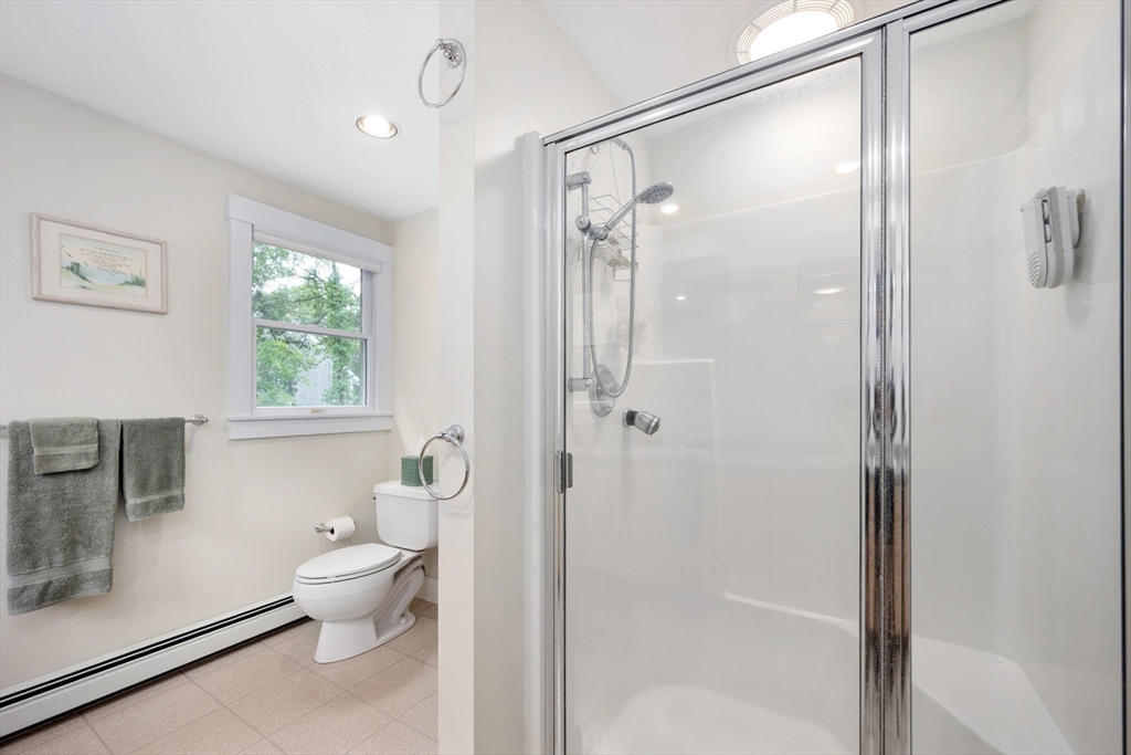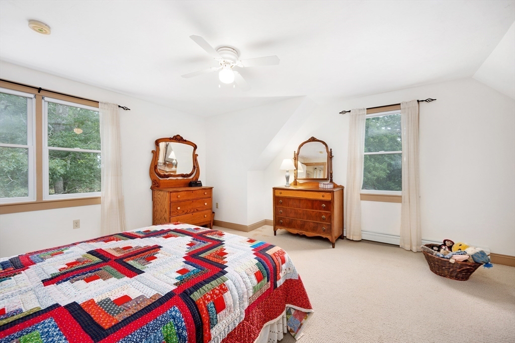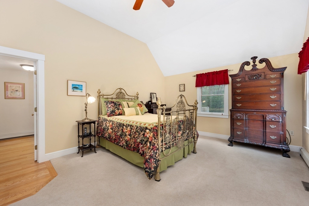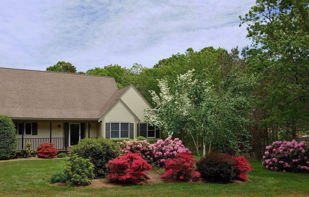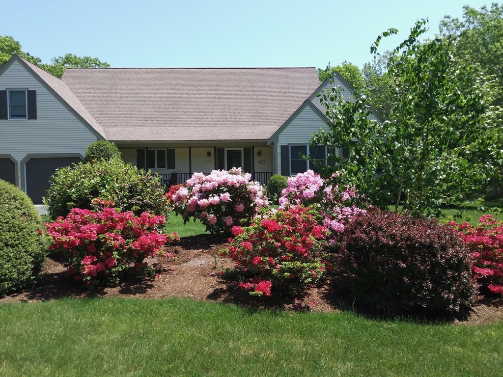 A contemporary Cape nestled next to the Flax Pond Conservation Area! A path out back links with trails leading to a golf course and 2 ponds! From the farmer's porch enter the expansive great room with vaulted ceilings, a gas fireplace, built-ins, and hardwood floors. The kitchen offers granite counters and tile floors. Relax in the screened porch or on the mahogany deck overlooking the private yard. The main BR suite includes a vaulted ceiling, dressing room, and a private bath with dual sinks and walk-in shower. Also on 1st floor, a guest room, a guest bath, laundry, and door to garage. Upstairs, 2 more guest rooms and a 3rd full bath. Lower level offers a huge family room, 2 other rooms (1 used as an office), a workshop, and slider to the backyard. A fenced vegetable garden behind the hedge. Outdoor shower too! Central AC in great rm, main BR, and office. So many great features, in a tranquil, private setting in a lovely neighborhood! Plse see video. Buyers/agents to confirm details.