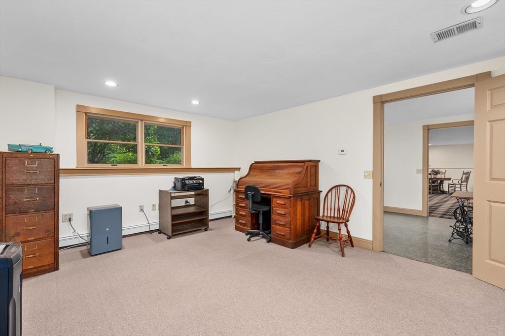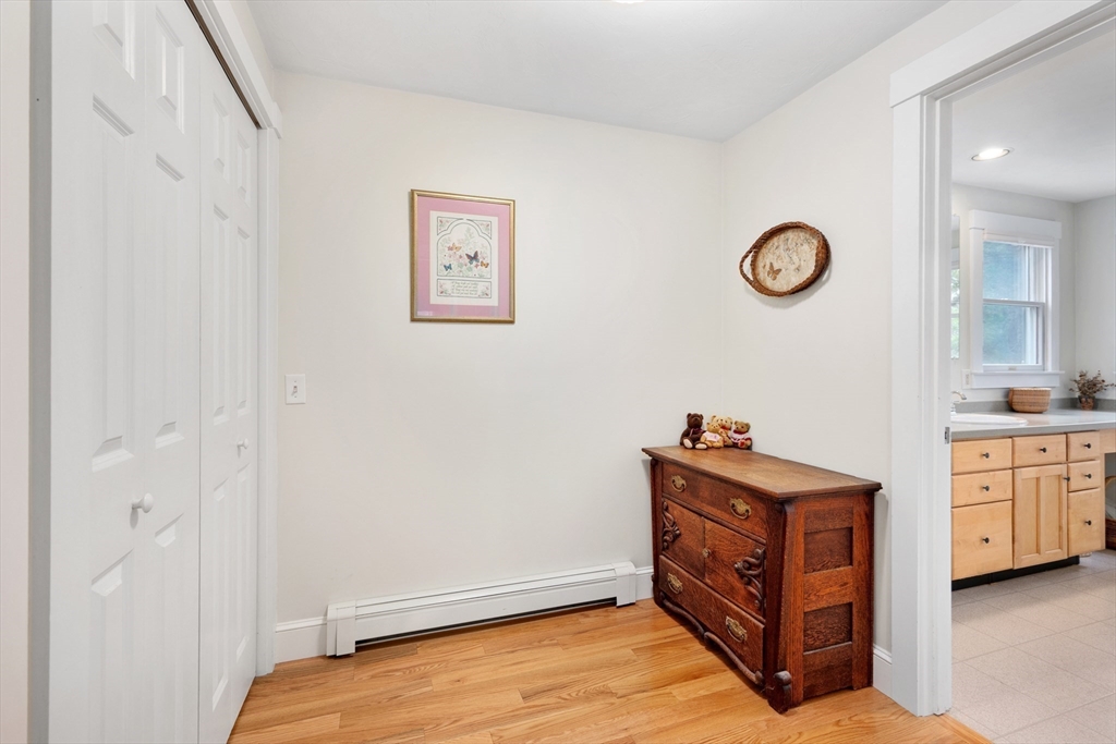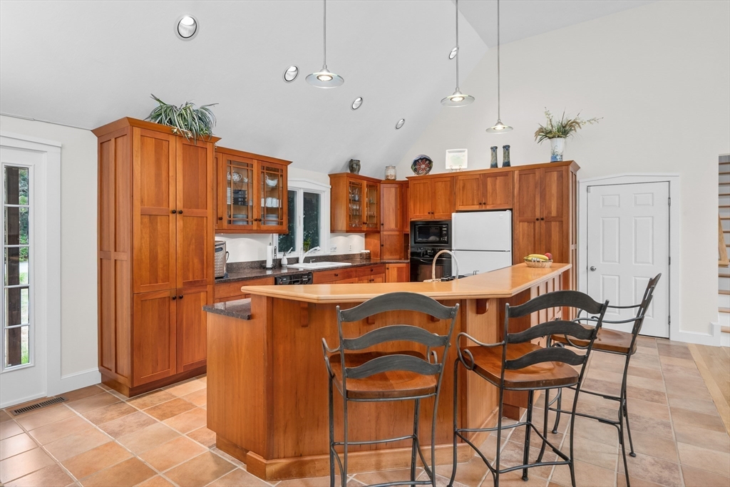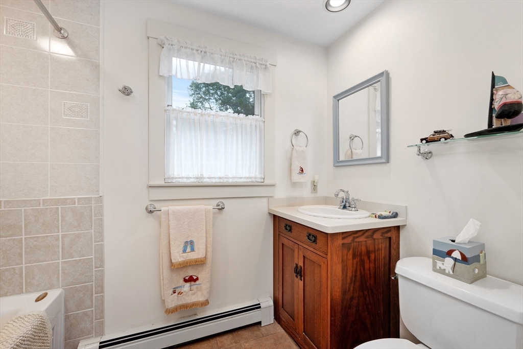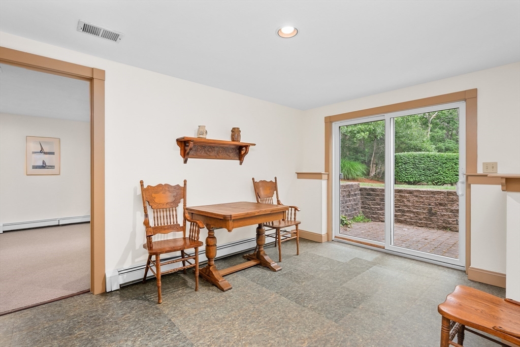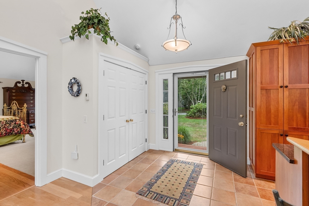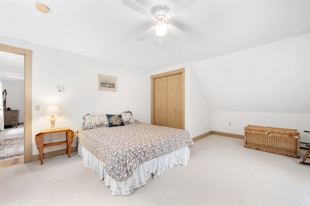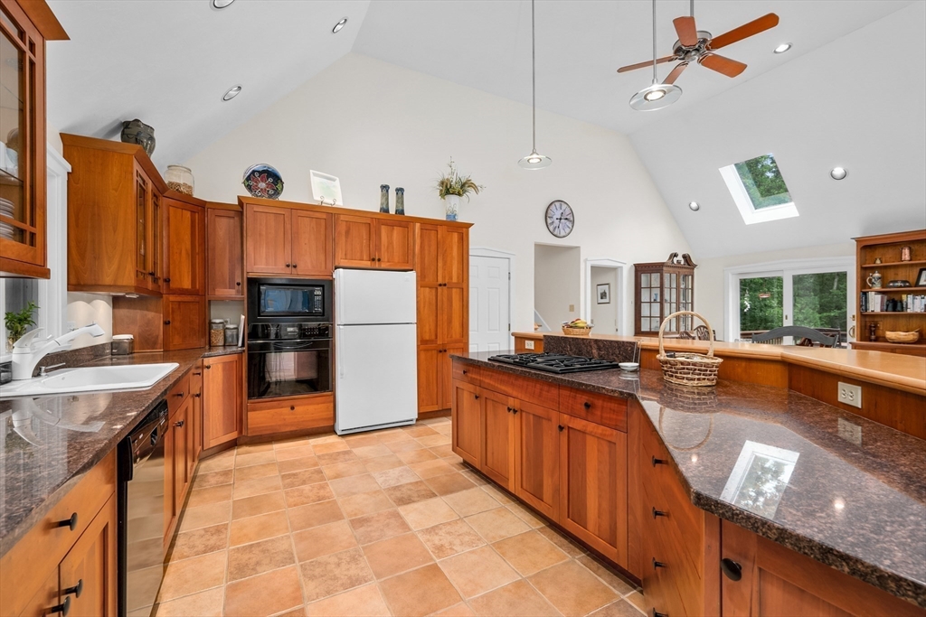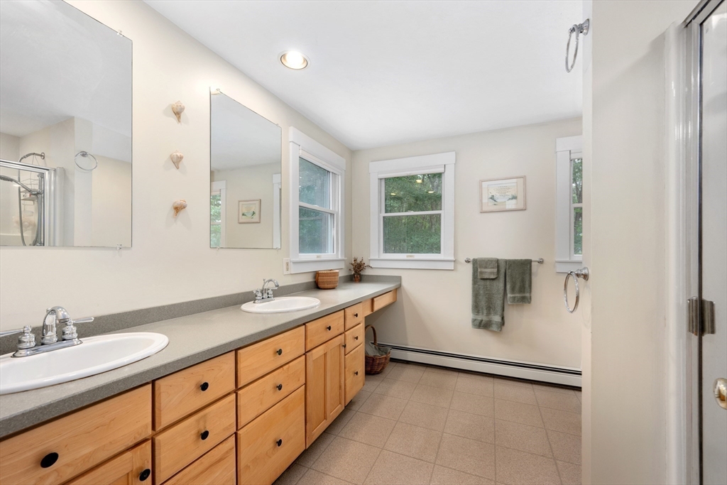 A contemporary Cape nestled next to the Flax Pond Conservation Area! A path out back links with trails leading to a golf course and 2 ponds! From the farmer's porch enter the expansive great room with vaulted ceilings, a gas fireplace, built-ins, and hardwood floors. The kitchen offers granite counters and tile floors. Relax in the screened porch or on the mahogany deck overlooking the private yard. The main BR suite includes a vaulted ceiling, dressing room, and a private bath with dual sinks and walk-in shower. Also on 1st floor, a guest room, a guest bath, laundry, and door to garage. Upstairs, 2 more guest rooms and a 3rd full bath. Lower level offers a huge family room, 2 other rooms (1 used as an office), a workshop, and slider to the backyard. A fenced vegetable garden behind the hedge. Outdoor shower too! Central AC in great rm, main BR, and office. So many great features, in a tranquil, private setting in a lovely neighborhood! Plse see video. Buyers/agents to confirm details.