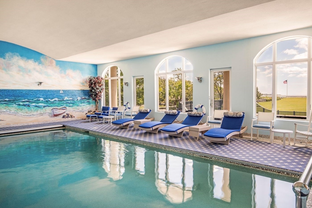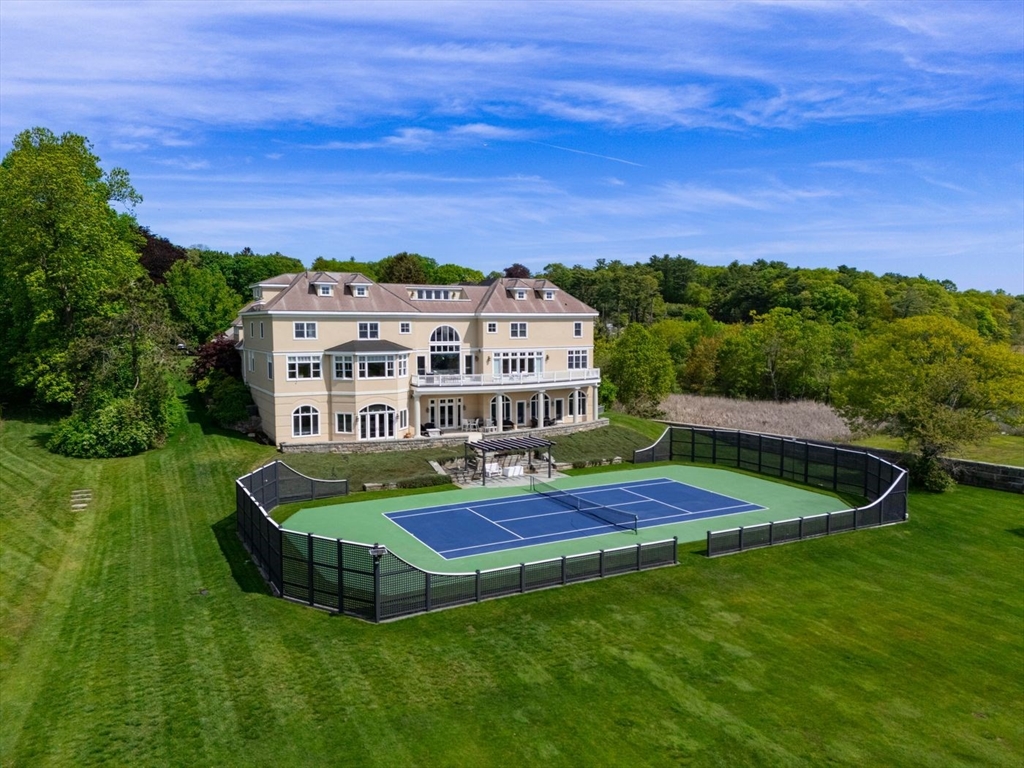 Experience refined coastal living in Prides Crossing, Beverly. Set on 5.6± private acres with 250 feet of frontage on a private sandy beach, this 15,000 SF estate offers sweeping Atlantic views. Built in 2005, the home blends timeless elegance with modern sophistication. A grand foyer with custom floor-to-ceiling windows opens to expansive living and dining spaces. The chef’s kitchen features top-tier appliances and bespoke finishes. The first-floor primary suite includes spa-like amenities and ocean views. The lower level is designed for entertaining with a full bar, media room, coffered ceilings, and an indoor pool. Additional highlights include a spacious home gym, professionally designed pickleball/tennis court, and lush lawn. Direct beach access completes this rare offering. A true legacy property—private, grand, and incomparable.