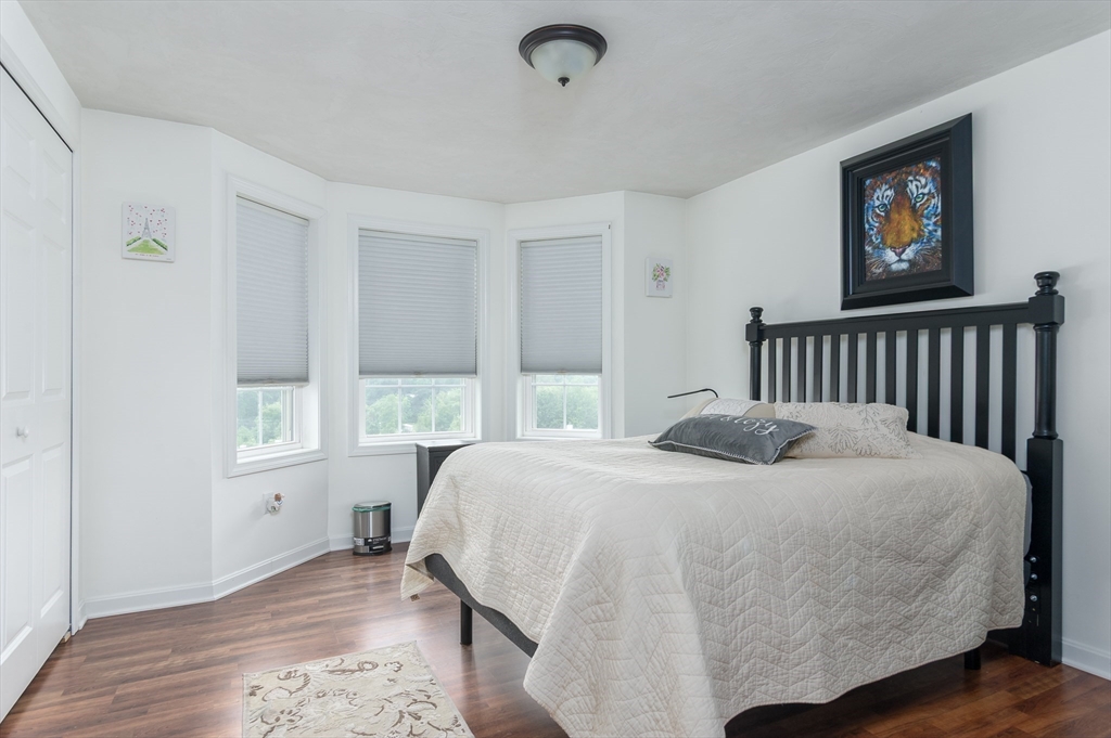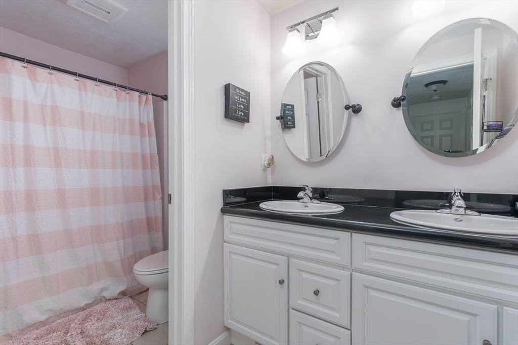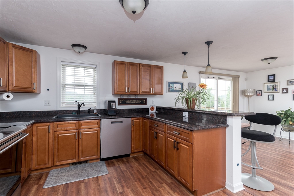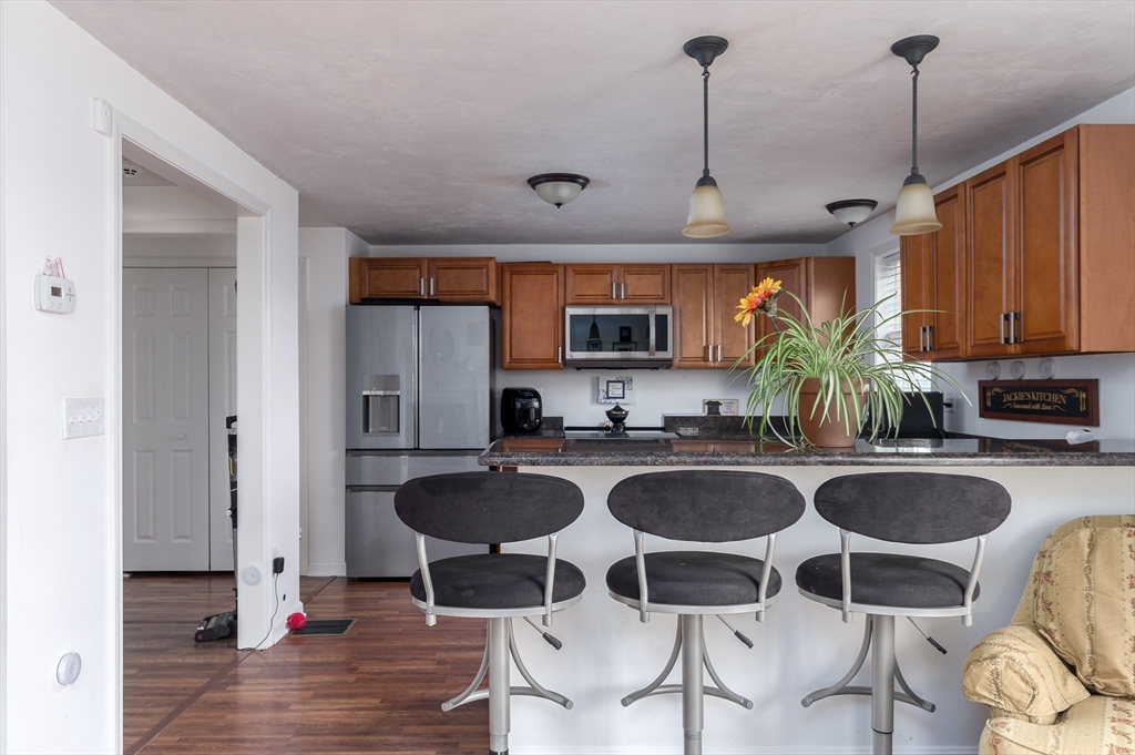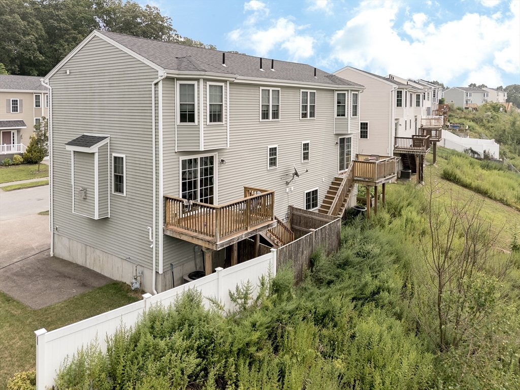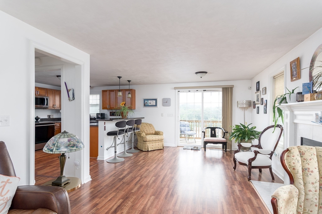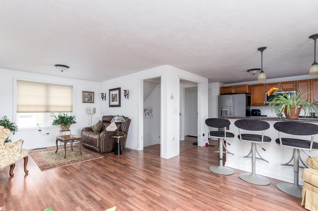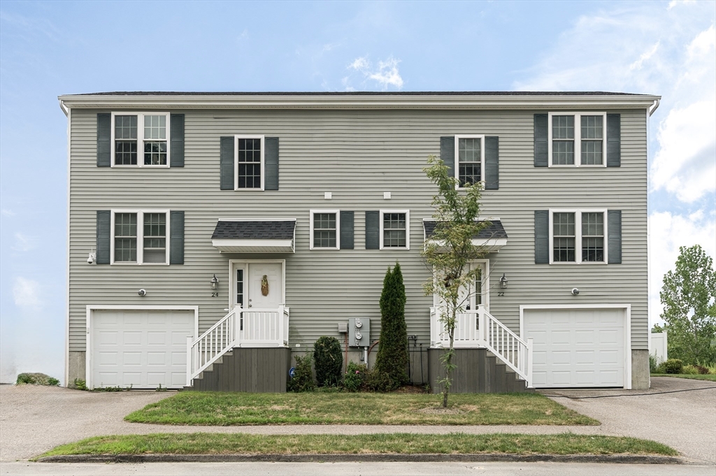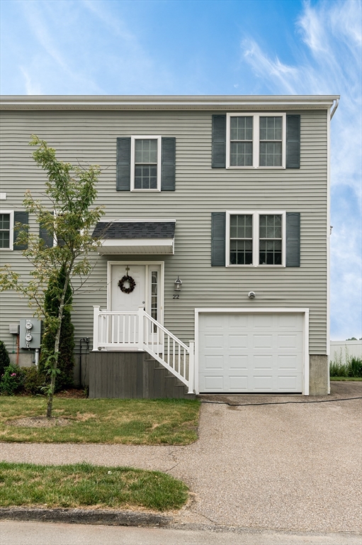 Welcome to Abroretum Village Estates in the heart of Worcester where you will find a neighborhood of well crafted duplex style homes. This home offers an open concept 1st floor with laminate flooring , cabinet packed kitchen with granite counters, pantry closet , stainless steel appliances, and breakfast bar for informal dining. Front to back living room/ dining room with gas fireplace and slider to deck plus half bath . 2nd floor offers 3 nice size bedrooms one with laminate flooring all with good closet space. Full bathroom has tile flooring, granite counters and double vanity. Lower level offers one car garage, mudroom and plenty of storage . Outside space offers deck overlooking cityscape , enclosed back area ideal for pets and under deck storage . Home offers neutral decor and is move in ready