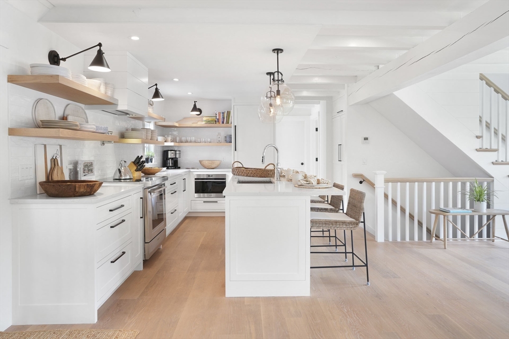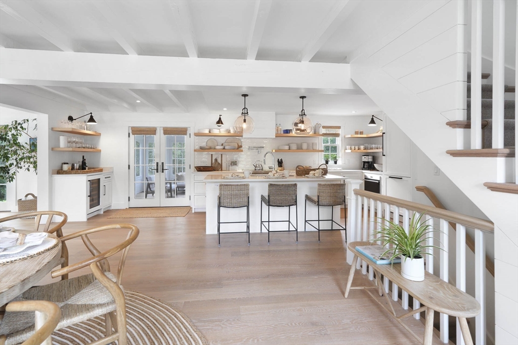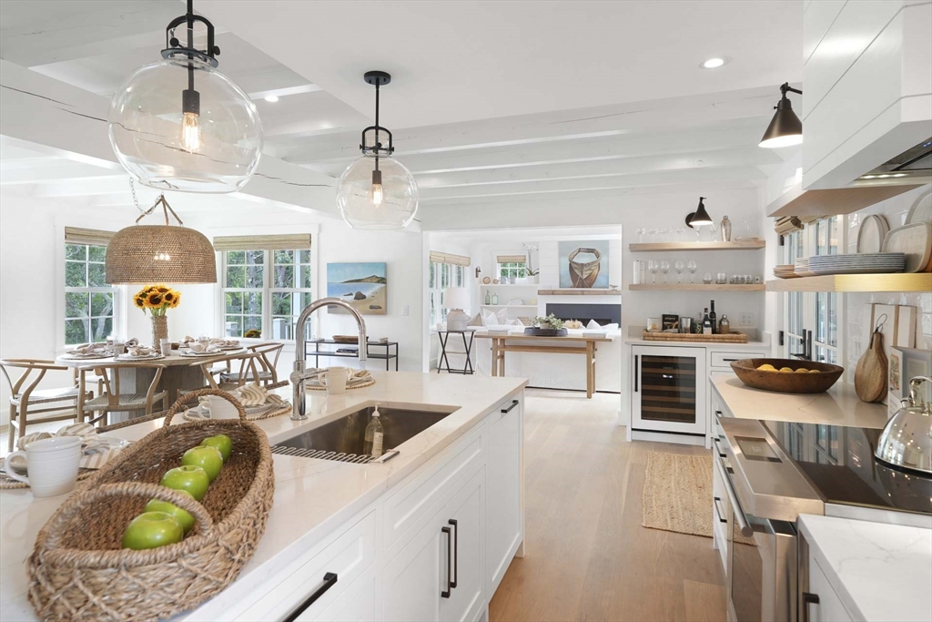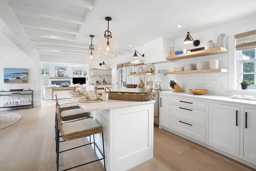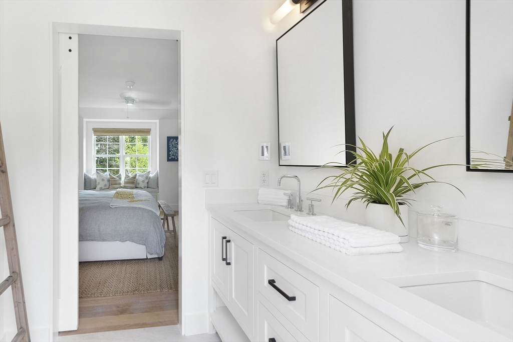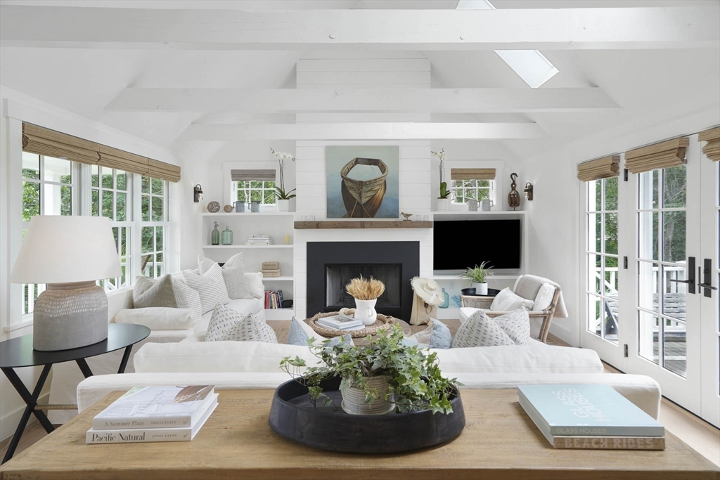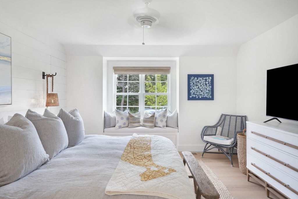 Exceptional Opportunity to Create Your Signature Vineyard Compound. Behind a charming white picket fence with blooming hydrangeas, this beautifully renovated Edgartown property blends island charm with new construction. Renovated in 2024 by top island builders, the nearly new home offers immediate comfort and timeless style, with potential for expansion into a luxury compound. On a private double-sized one-acre lot, it supports up to 7 bedrooms, including a future guest house, carriage house, and space for a pool, hot tub, and outdoor entertaining areas. The main residence features hardwood floors, shiplap, custom built-ins, designer fixtures, and an inviting chef’s kitchen with premium appliances, stone countertops, and custom cabinetry. Seamless indoor-outdoor living includes a covered porch, screened porch, expansive deck, outdoor shower, and mature landscaping. Whether enjoyed as-is or expanded, this coastal chic property combines quality finishes with a prime Edgartown location.