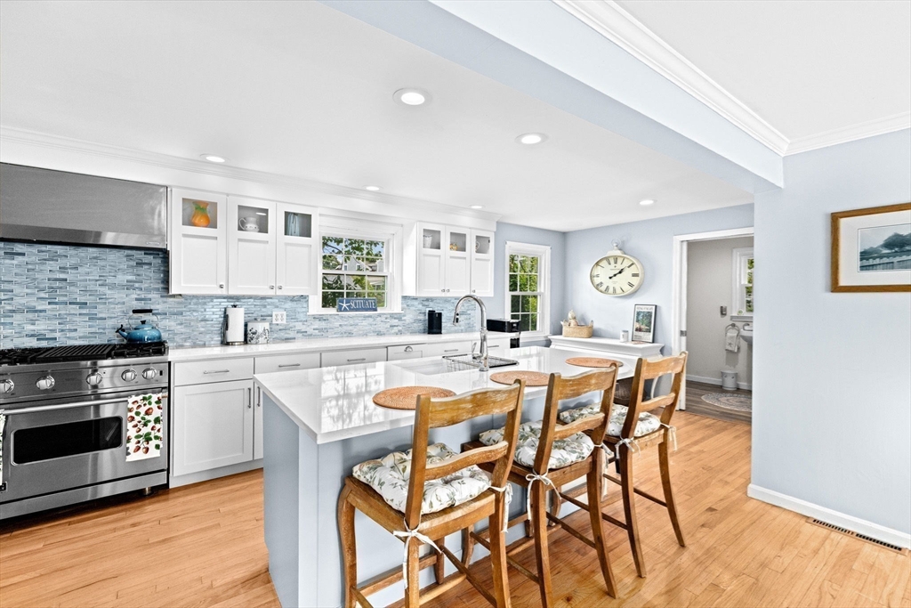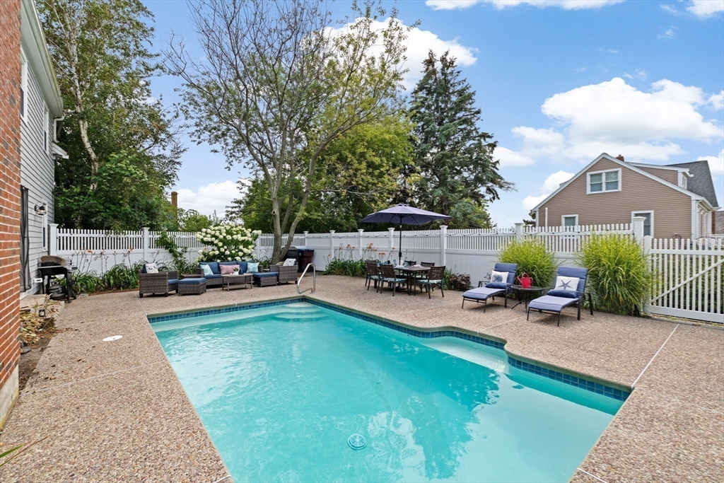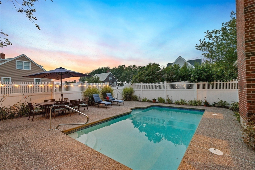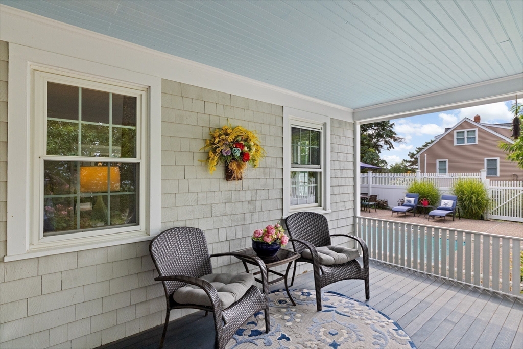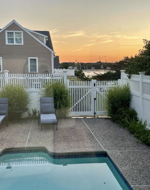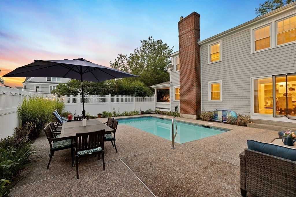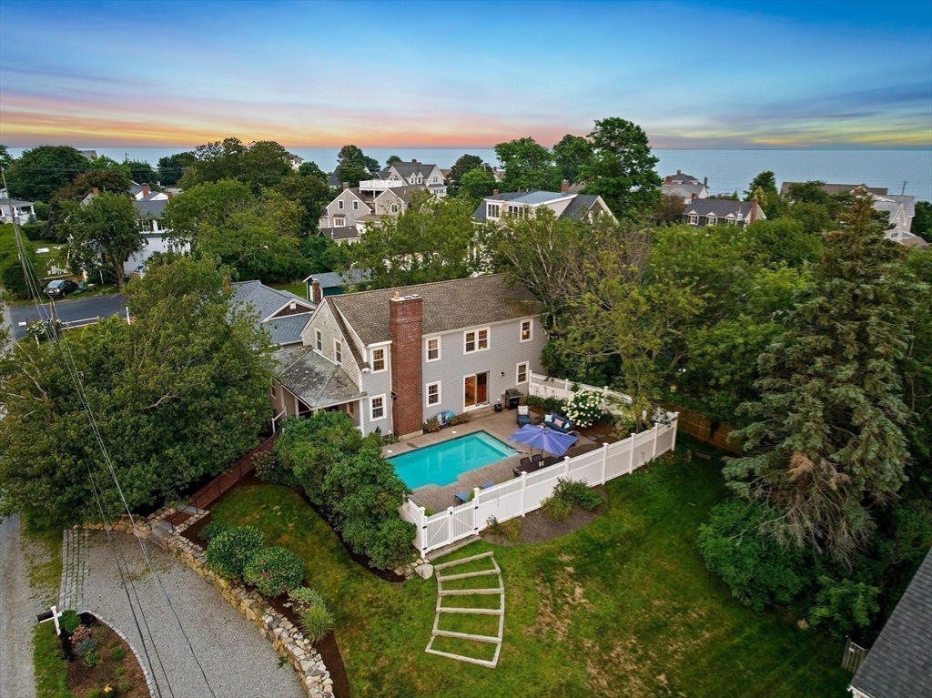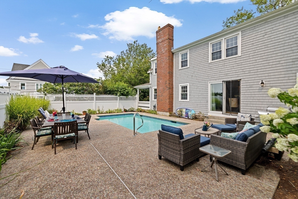 Nestled in Scituate's exclusive First Cliff neighborhood is this special 3 bedroom, 2 bath farmhouse showcasing picturesque harbor & water views. Optimal indoor/outdoor living areas enables effortless entertaining or relaxation. The open sunlit floor plan seamlessly connects the kitchen, dining and living areas. Sliding glass doors leads to the pool patio, which is superbly suited for sunset dinners after cooling off in the perfectly sized saltwater in-ground gunite pool. The newly updated kitchen features a gas Viking range, glass shaker cabinets, quartz counters, tile backsplash, & center island seating. Upstairs are 3 generous sized bedrooms with more captivating views of the boats floating in the harbor, a darling reading nook, a full bath with laundry and skylighted bathtub. Seize the chance to own this coveted coastal location in the heart of Scituate. This homes stylish comfort meets harborside convenience nearby bustling Front St., commuter train, golf, & sandy beaches.