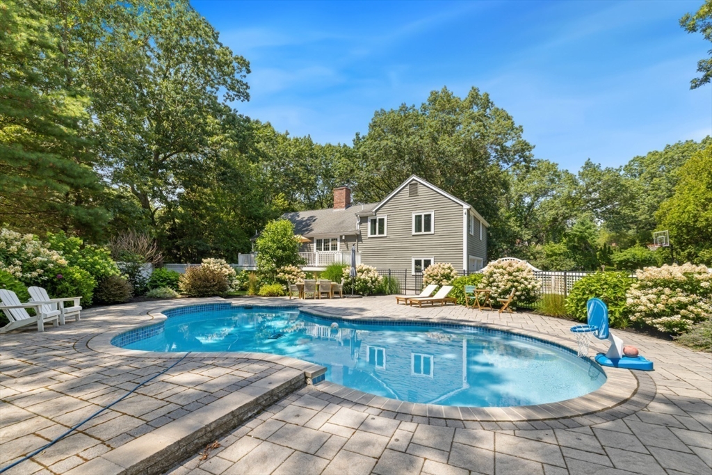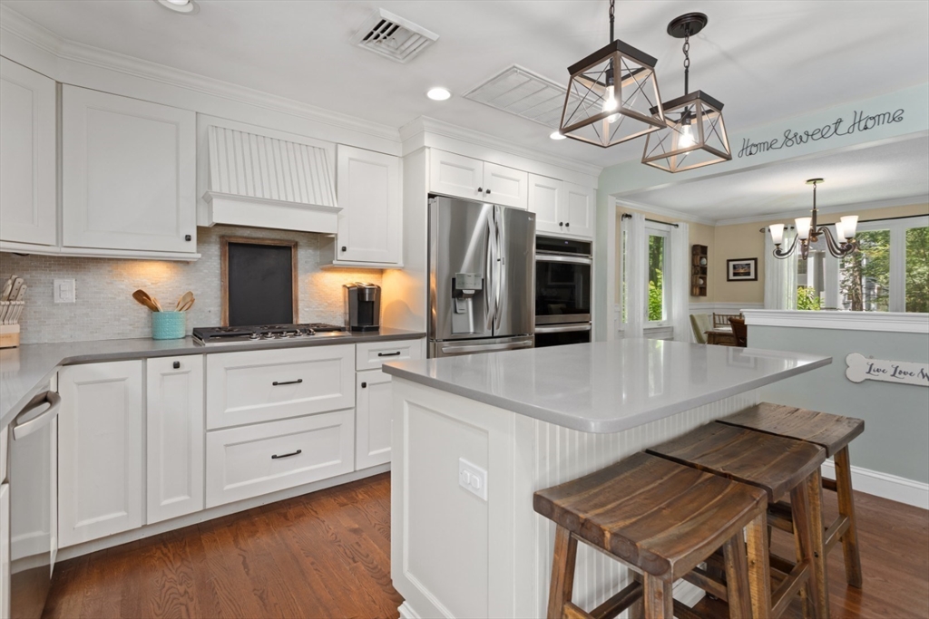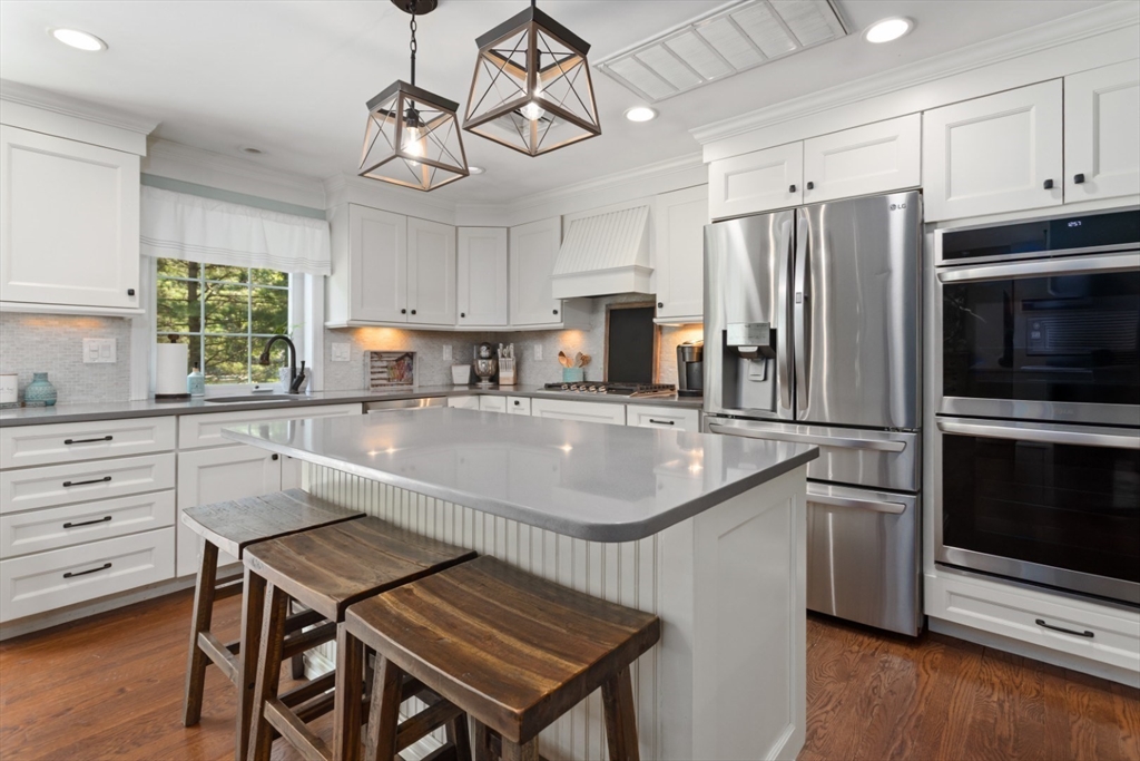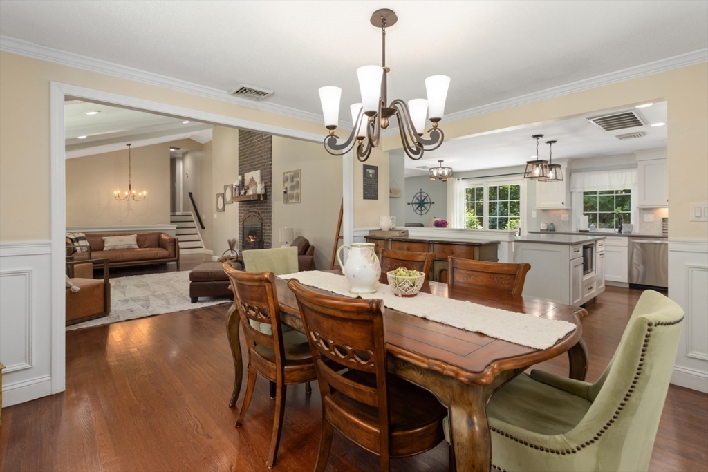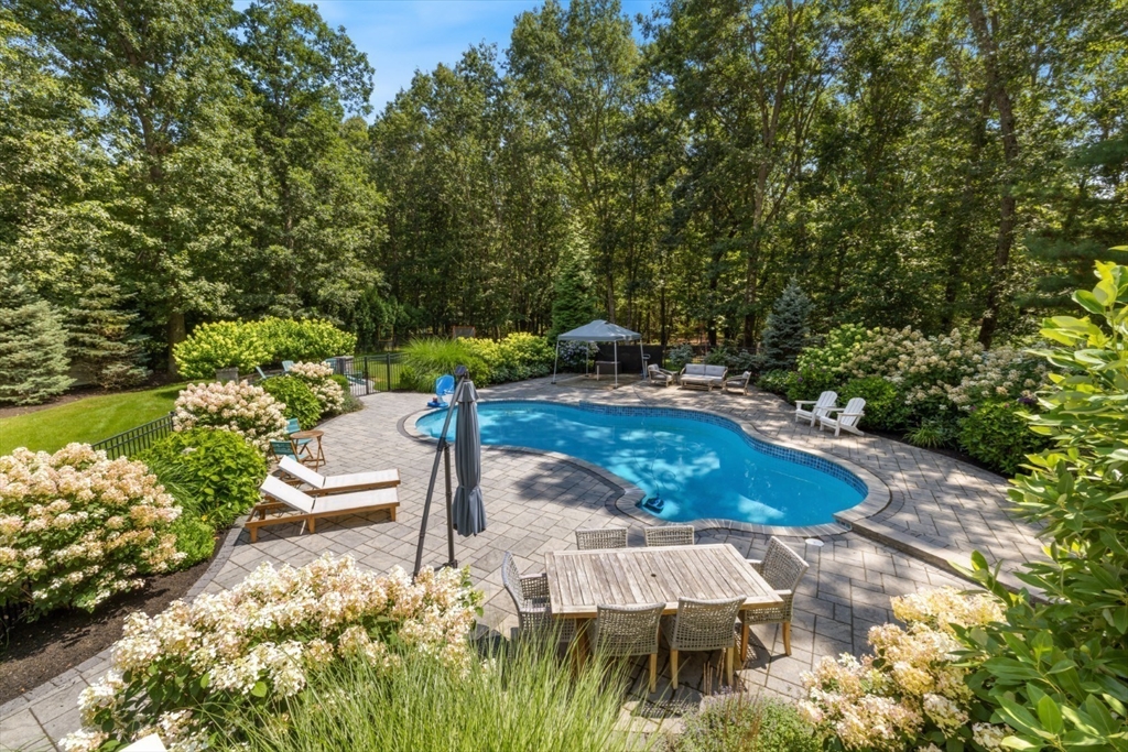 Stunning 4 bedroom Contemporary Split Entry on quiet side street in Wildewood Acres!! Open floor plan with fireplace living room opening to formal dining room. White updated kitchen has newer appliances ,island , pantry, and slider to expansive composite deck. Family room is open to kitchen for great flow. There are generous 3 bedrooms with primary having full bath with new vanity and walk in closet with barn door for easy entry. Lower level has fireplace family room, 4th bedroom / office , and newer full bath with oversize walk in tiled shower. Great mudroom and laundry room. Irrigation system with well for watering. Beautiful resort like acre lot. Inground gunite pool with eating area and separate sitting space outside pool with fire pit. The front and rear yard has exceptional plantings. No need to go on vacation with this yard. Home has gas heat, crown molding, and quality detail. There is a two car garage with great storage.