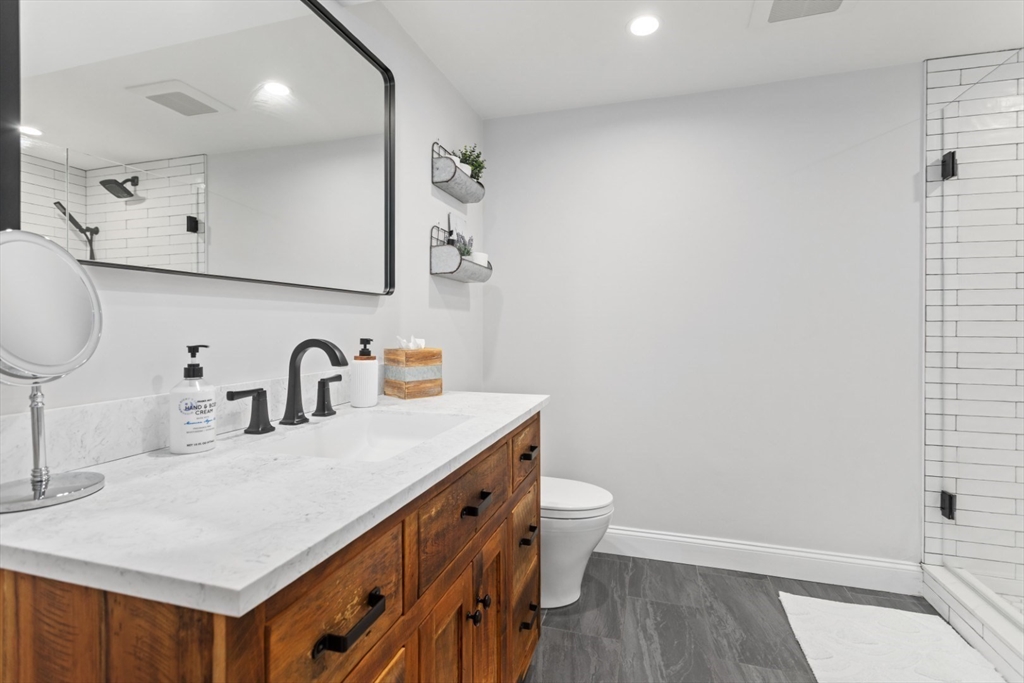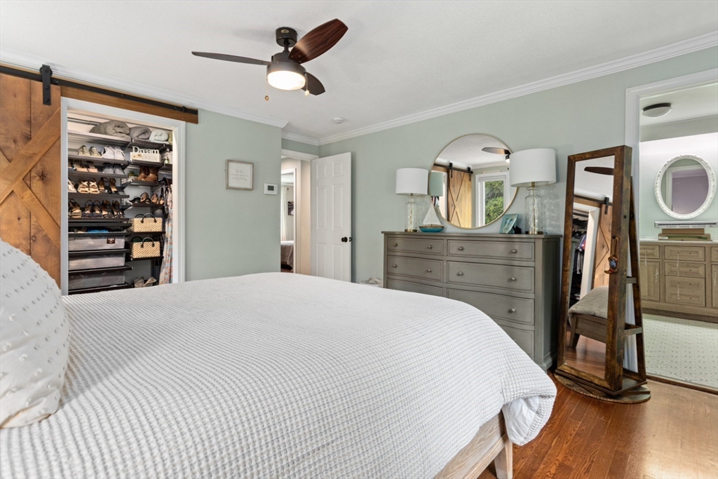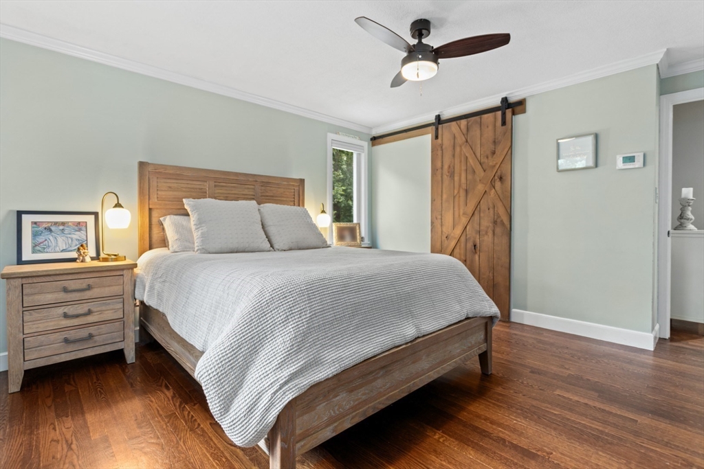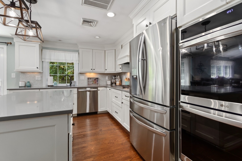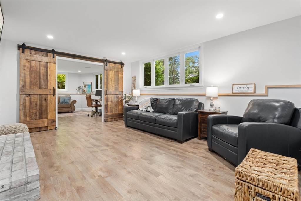 Stunning 4 bedroom Contemporary Split Entry on quiet side street in Wildewood Acres!! Open floor plan with fireplace living room opening to formal dining room. White updated kitchen has newer appliances ,island , pantry, and slider to expansive composite deck. Family room is open to kitchen for great flow. There are generous 3 bedrooms with primary having full bath with new vanity and walk in closet with barn door for easy entry. Lower level has fireplace family room, 4th bedroom / office , and newer full bath with oversize walk in tiled shower. Great mudroom and laundry room. Irrigation system with well for watering. Beautiful resort like acre lot. Inground gunite pool with eating area and separate sitting space outside pool with fire pit. The front and rear yard has exceptional plantings. No need to go on vacation with this yard. Home has gas heat, crown molding, and quality detail. There is a two car garage with great storage.
