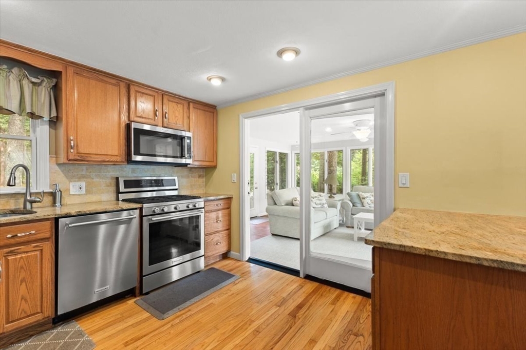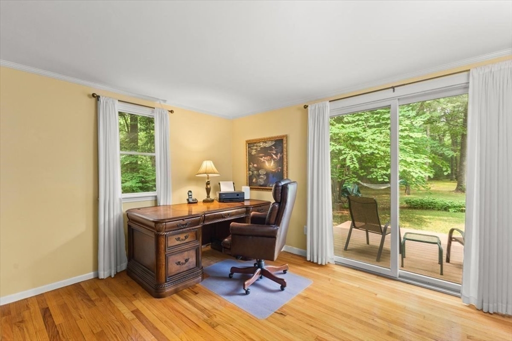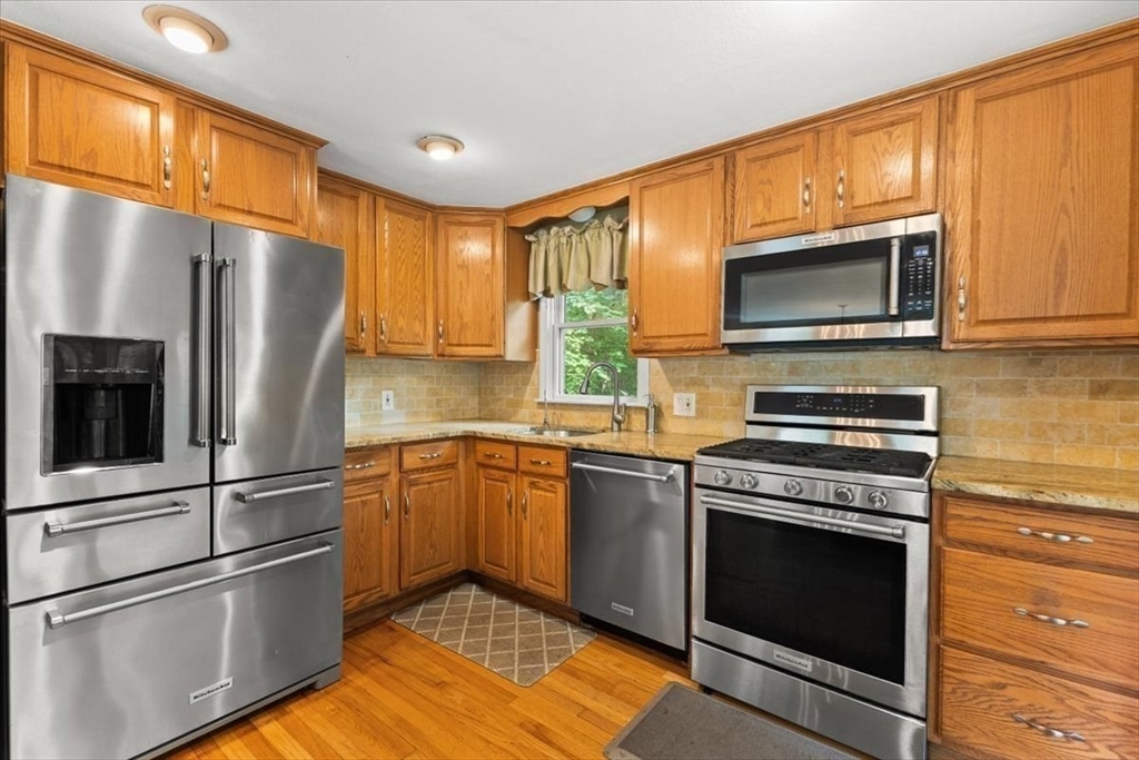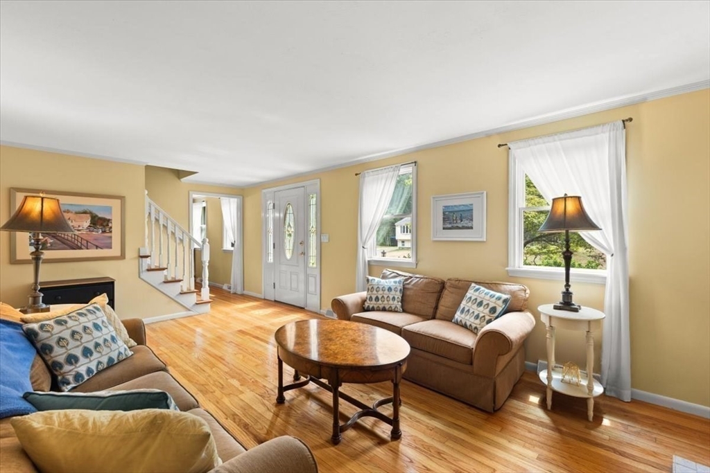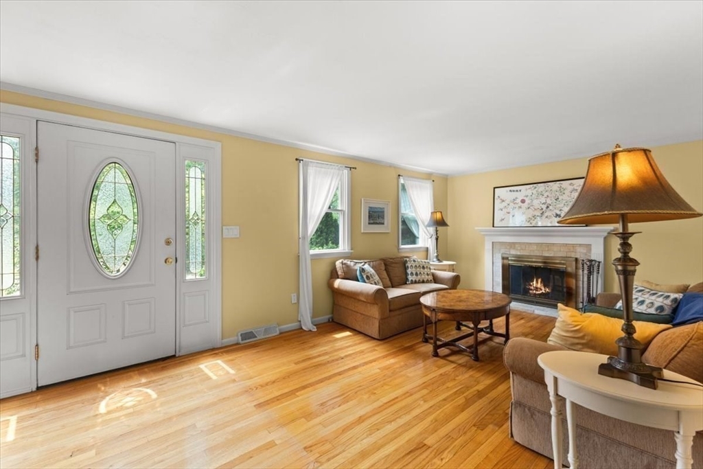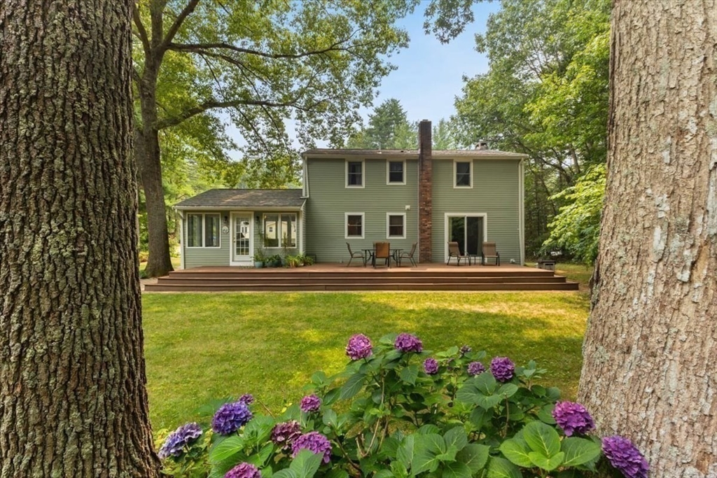 A beautiful stone wall and meticulously landscaped gardens welcome you to this bright and charming Colonial-style home. Step into a light-filled living room featuring a cozy fireplace—perfect for cold winter nights. The stunning kitchen boasts an abundance of pretty, cabinets, granite countertops, stainless steel appliances, and a cozy breakfast nook. A first-floor office with sliding doors opens to a spacious deck, ideal for work-from-home. The sunroom is a true highlight, filled with windows that invite natural light in year-round, making it the perfect retreat in any season. Upstairs, you’ll find four generously sized bedrooms, each offering ample closet space. Gleaming hardwood floors run throughout the home, adding warmth and elegance. Step outside to your private backyard oasis - large, beautifully landscaped yard with a deck spanning the back of the home, overlooking serene woods. Pride of ownership is evident in every corner of this stunning property. Located minutes to 495!