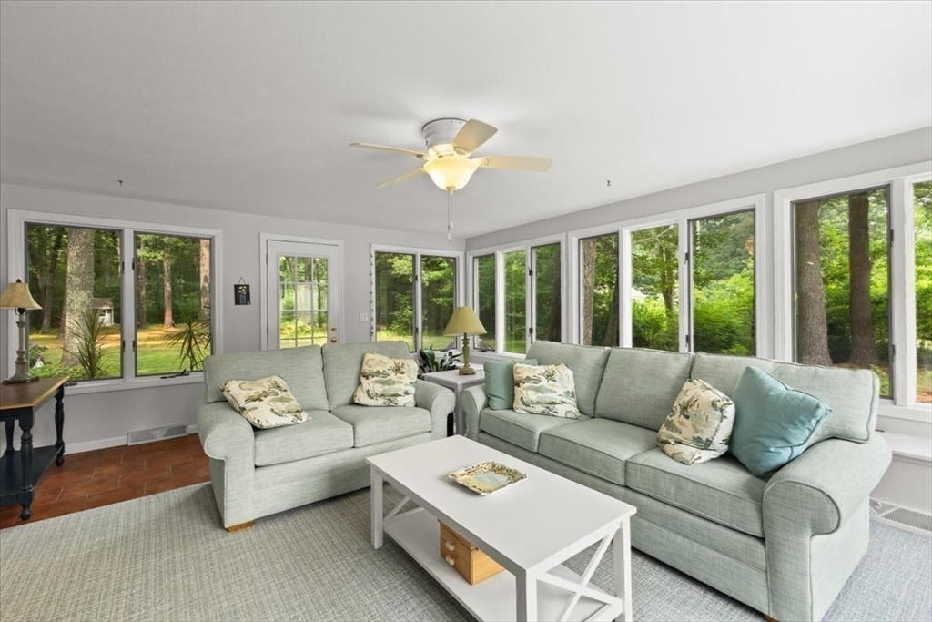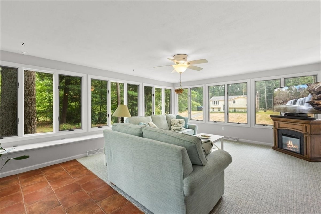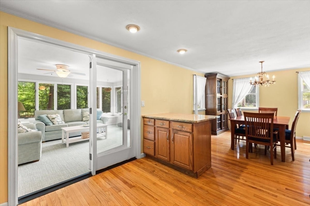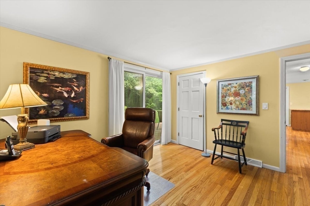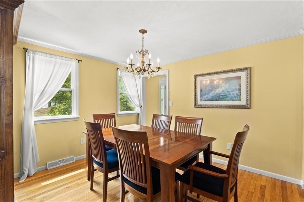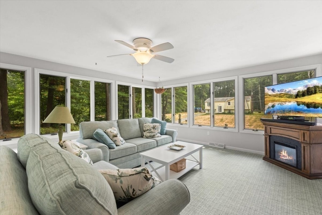A beautiful stone wall and meticulously landscaped gardens welcome you to this bright and charming Colonial-style home. Step into a light-filled living room featuring a cozy fireplace—perfect for cold winter nights. The stunning kitchen boasts an abundance of pretty, cabinets, granite countertops, stainless steel appliances, and a cozy breakfast nook. A first-floor office with sliding doors opens to a spacious deck, ideal for work-from-home. The sunroom is a true highlight, filled with windows that invite natural light in year-round, making it the perfect retreat in any season. Upstairs, you’ll find four generously sized bedrooms, each offering ample closet space. Gleaming hardwood floors run throughout the home, adding warmth and elegance. Step outside to your private backyard oasis - large, beautifully landscaped yard with a deck spanning the back of the home, overlooking serene woods. Pride of ownership is evident in every corner of this stunning property. Located minutes to 495!