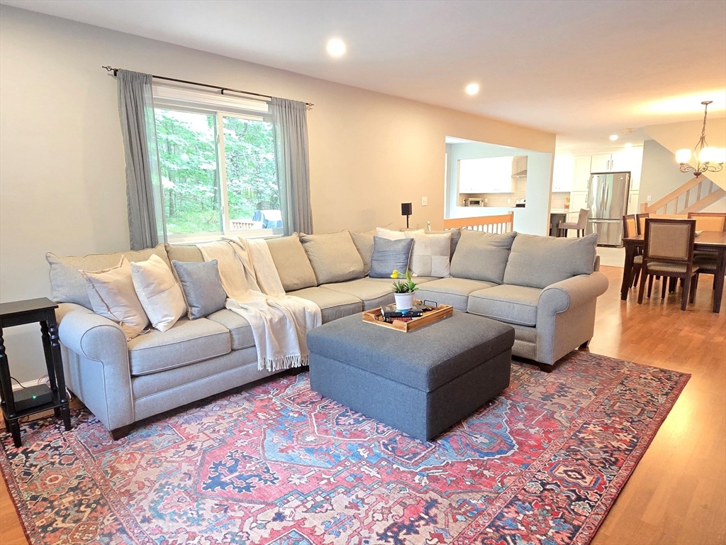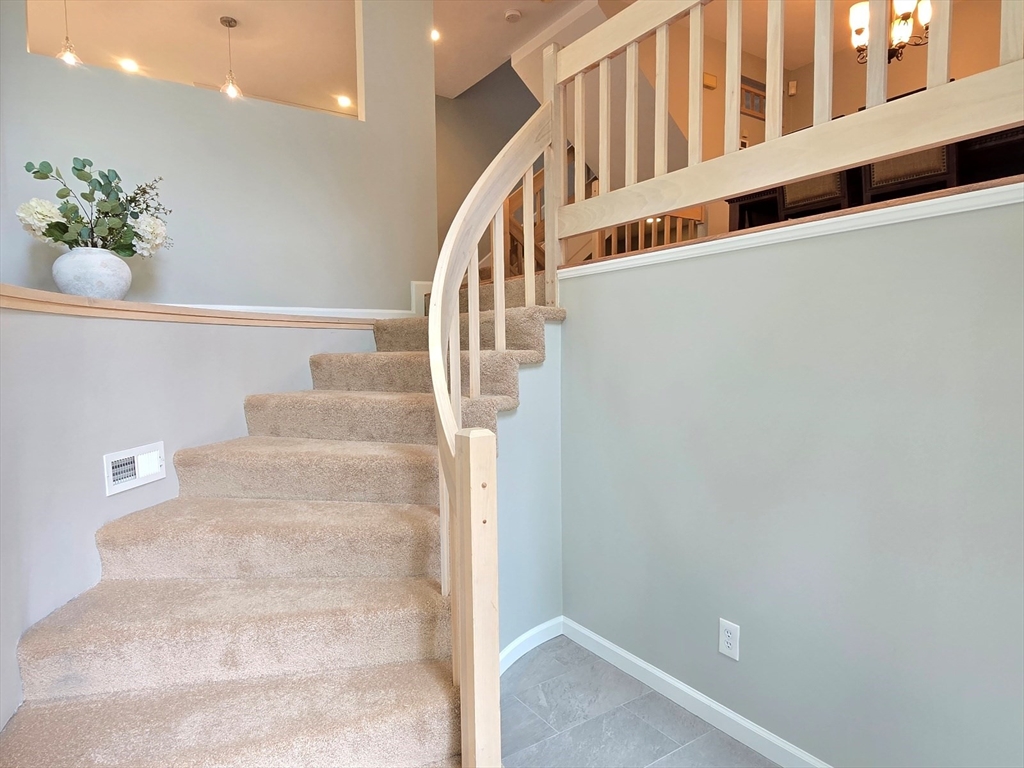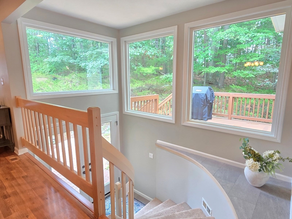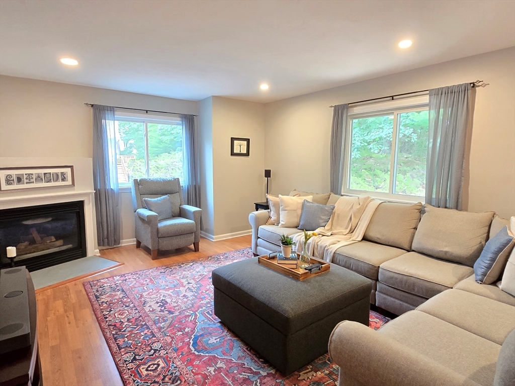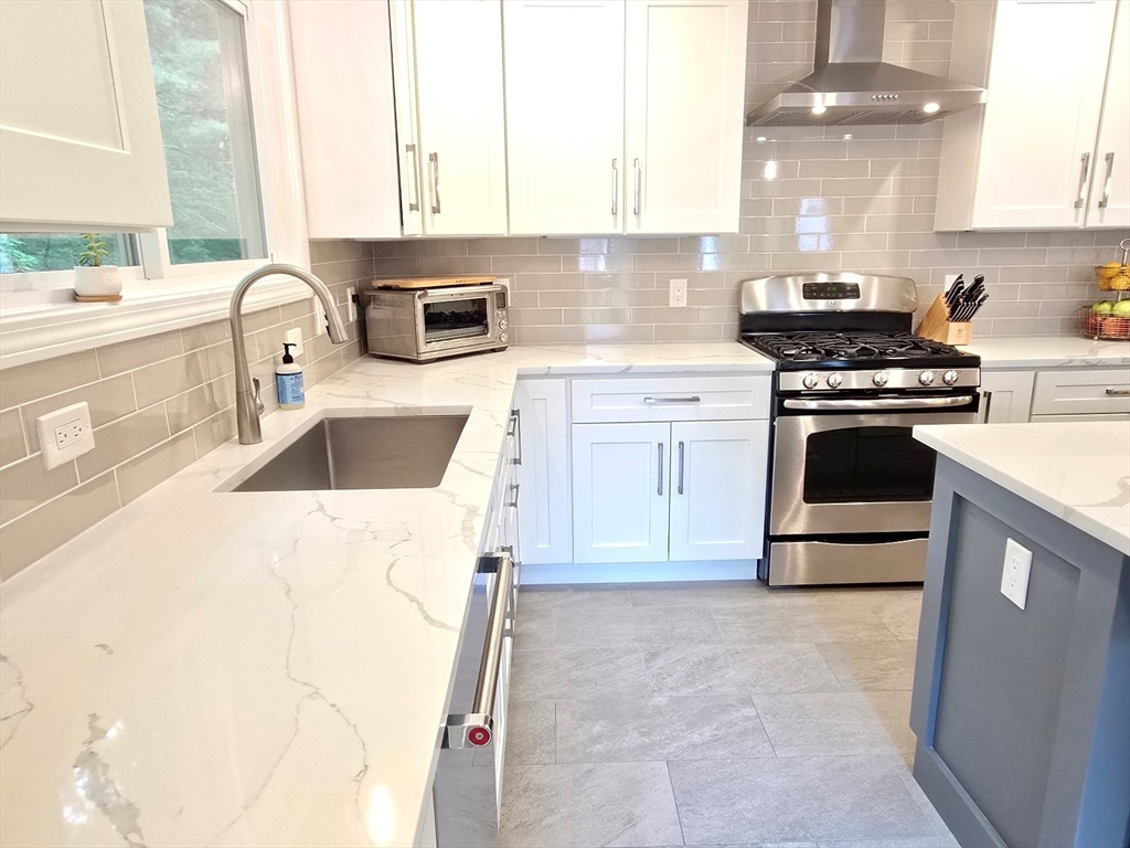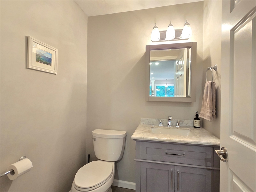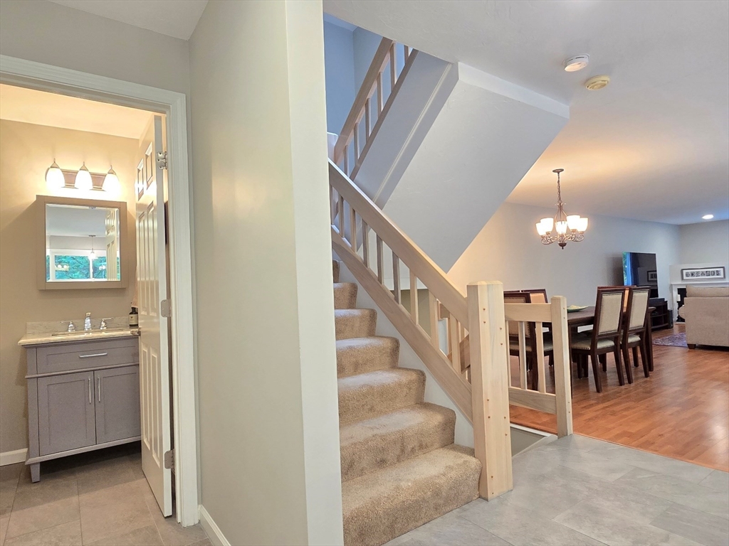 This townhome style condo is an absolute gem! Located in a desirable community within minutes of schools, shopping, restaurants, commuter train station, walking trails, Ashland State Park, and highway access. But wait until you step inside and see the new remodeled kitchen and bathrooms!! Enter into the two story foyer with huge windows that overlook a deck with private wooded views. Large kitchen with quartz counters, big center island, tile backsplash, stainless steel appliances, and vent hood that vents to the outside! Dining and living room open to each other with a gas fireplace. New half bath with marble countertop. Spacious main bedroom with cathedral ceilings, walk-in closet and the bathroom of your dreams recently remodeled with double sinks, quartz counters, and gorgeous soaking tub and large tiled walk-in shower with frameless glass doors. The 2nd bedroom also has cathedral ceilings and private full bath. Walk-up storage closet and skylight round out the 2nd floor.