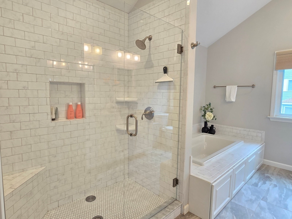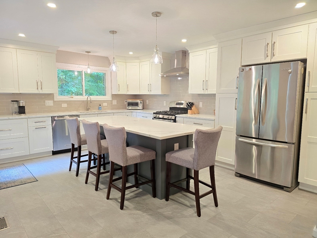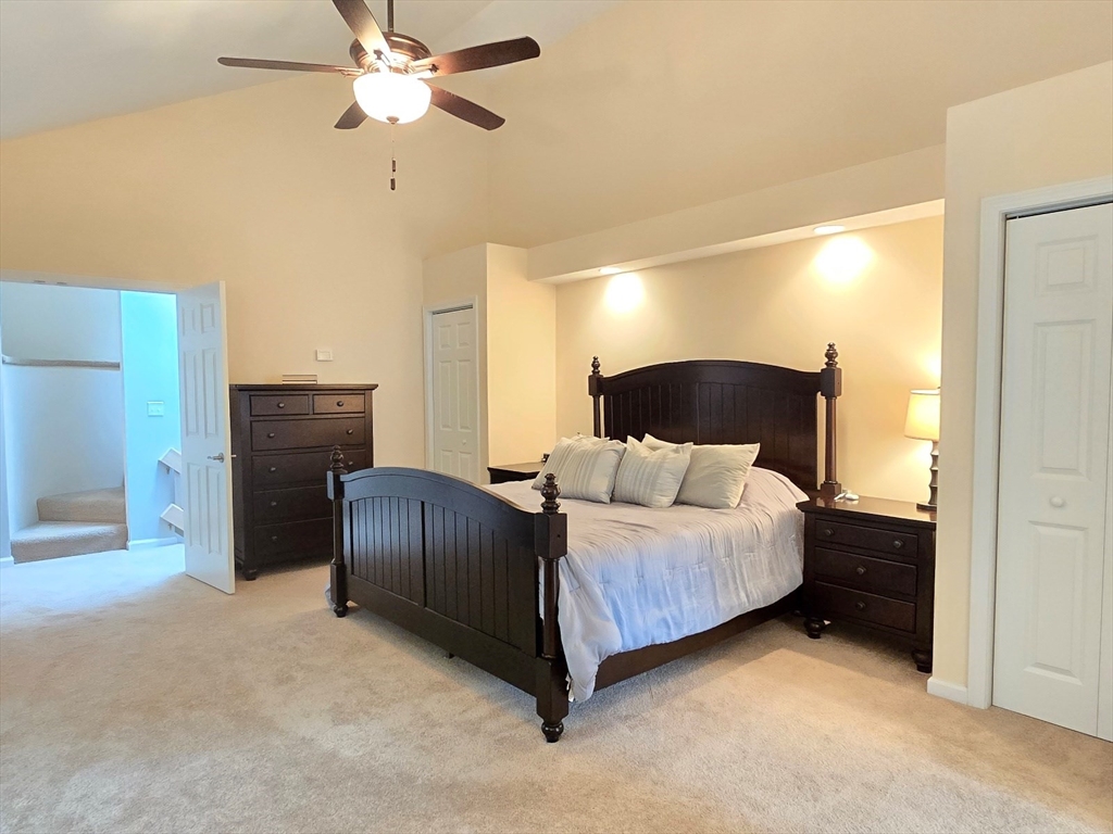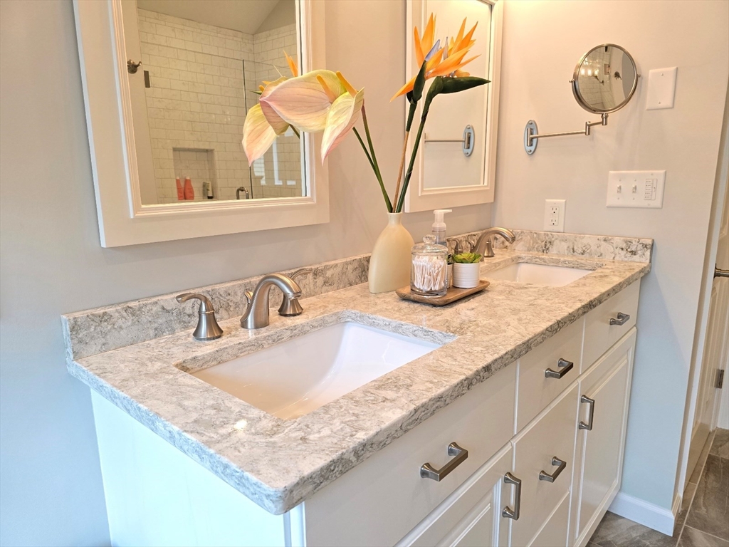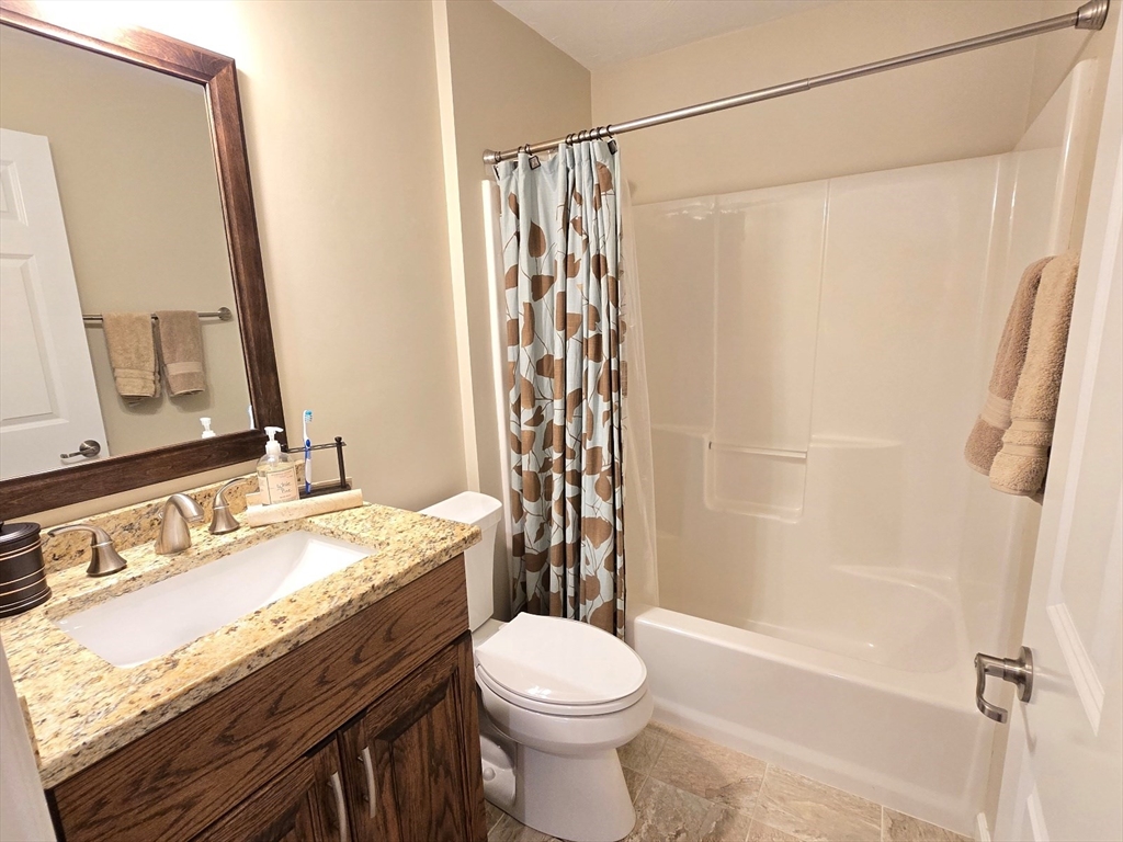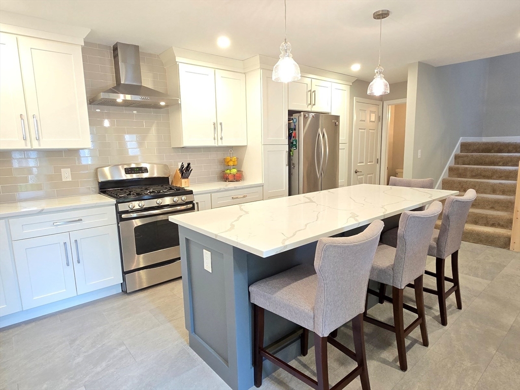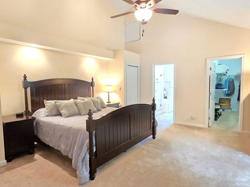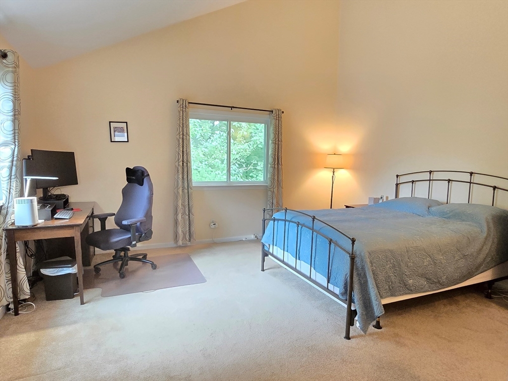 This townhome style condo is an absolute gem! Located in a desirable community within minutes of schools, shopping, restaurants, commuter train station, walking trails, Ashland State Park, and highway access. But wait until you step inside and see the new remodeled kitchen and bathrooms!! Enter into the two story foyer with huge windows that overlook a deck with private wooded views. Large kitchen with quartz counters, big center island, tile backsplash, stainless steel appliances, and vent hood that vents to the outside! Dining and living room open to each other with a gas fireplace. New half bath with marble countertop. Spacious main bedroom with cathedral ceilings, walk-in closet and the bathroom of your dreams recently remodeled with double sinks, quartz counters, and gorgeous soaking tub and large tiled walk-in shower with frameless glass doors. The 2nd bedroom also has cathedral ceilings and private full bath. Walk-up storage closet and skylight round out the 2nd floor.