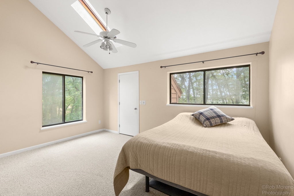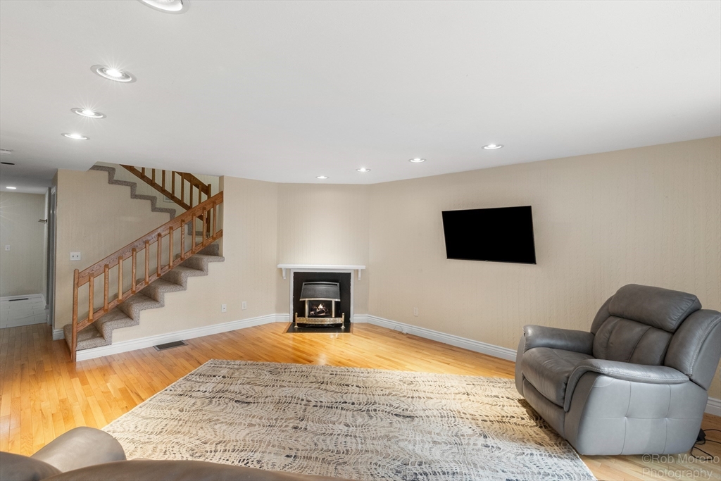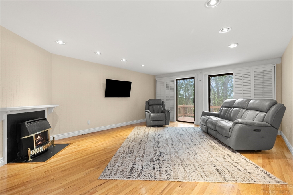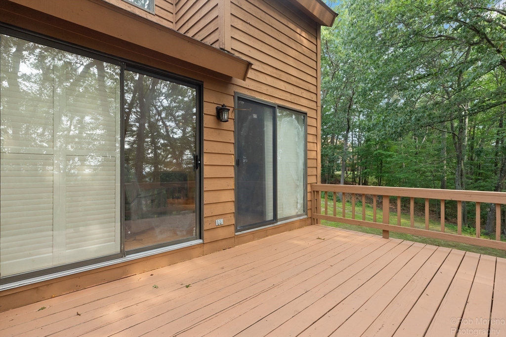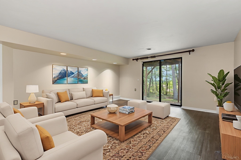 Bright and spacious 4-level townhome in the tranquil West Meadow Hill community! This 3-bedroom, 1.5-bath home offers over 2,100 sq ft of thoughtfully designed living space. The main level features a generous eat-in kitchen, half bath and a cozy living room with gas fireplace and sliders to a private deck with peaceful wooded views. Upstairs offers two spacious bedrooms and a full bath, plus a third bedroom on the top floor. The walk-out lower level includes a large family room with sliders to a stone patio area, laundry and storage—plus potential for an additional bath (with proper permits). Enjoy low condo fees, beautifully maintained park-like grounds and top-tier amenities including a pool, tennis courts and walking trails. Detached garage and two more deeded parking spaces included. Location, location, location! Convenient to shopping, dining, major routes and the commuter rail complete this exceptional offering. Easily accessible and inviting on-site management team.