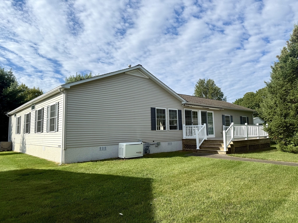 Charming 2-Bedroom Home in a Vibrant 55+ Community ! Welcome to this beautifully maintained 2-bedroom, 2 full bath manufactured home with attached porch with slider to deck (with automatic sunsetter awning)and move-in ready Enjoy brand new flooring throughout and freshly painted rooms that create a bright, welcoming atmosphere. Bonus features include elevator,generator, and walk in jacuzzi tub! The home is nestled in a beautifully landscaped setting within a sought-after community that offers exceptional amenities including , recreation center, tennis , pickleball,a library, and indoor pool.. Whether you're relaxing at home or enjoying all the community has to offer, this home is the perfect blend of comfort, convenience, and active living. Park rules do not allow motorcycles, dogs, only residents may use pool. Please note that all offers are subject to Park approval and credit application (attached) monthly fee is $871