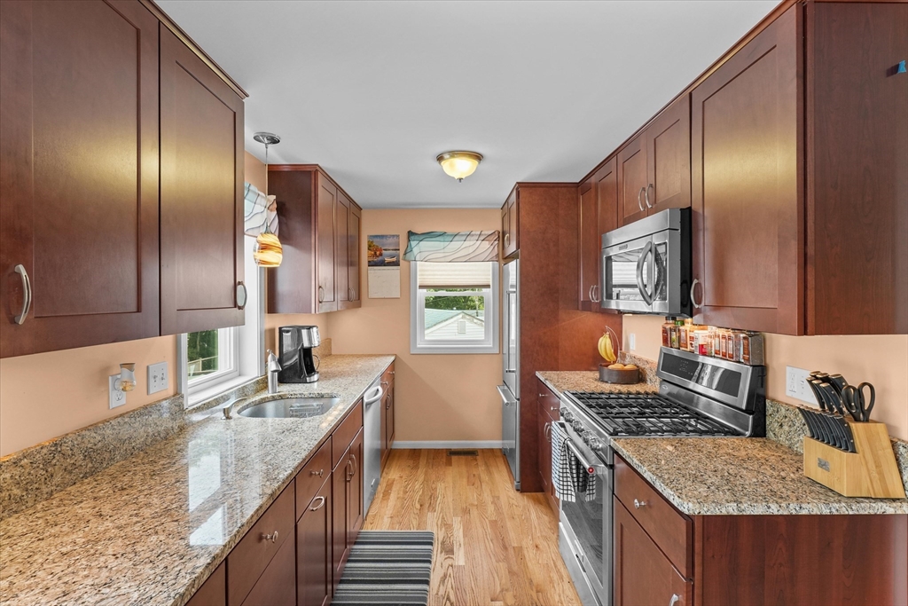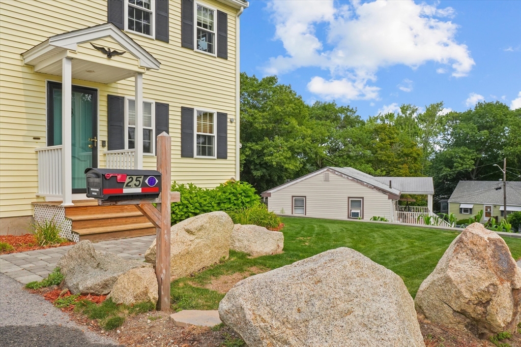 Welcome Home, 25 Gordon Road, Lynn. Custom Built 2015 home w/ 1,752 sq. ft. of prime living space, on a 12,380 sq. ft. private fenced lot of meticulously maintained property. Located at the end of a quiet dead end street, w/ views of Sluice Pond, Lynn Woods & beyond. No detail has been missed; HE HVAC system w/ Nest thermostat, 200 AMP electric w/ generator transfer switch, HE AC compressor, CAT 5 wired throughout & more. Roof deck hot tub installed as part of build. 1st level w/ Kitchen, Dining, Living space w/ gas fireplace & a half bath. Large deck off of the kitchen overlooking the rear yard. The 2nd level has 3 bedrooms & a full bath. The primary has a private entry to bath along w/ slider to large 2nd level private deck w/ hot tub. Lower Level is finished w/ walk out. Lg. oversized 2 MV heated garage w/ H/C water. Lg. shed/workshop. Gas line for grill. Perfectly situated off Lynnfield Street on a dead end, near Gannon Golf, Lynn Woods, Sluice Pond, Rte.'s 1, 128, 95.