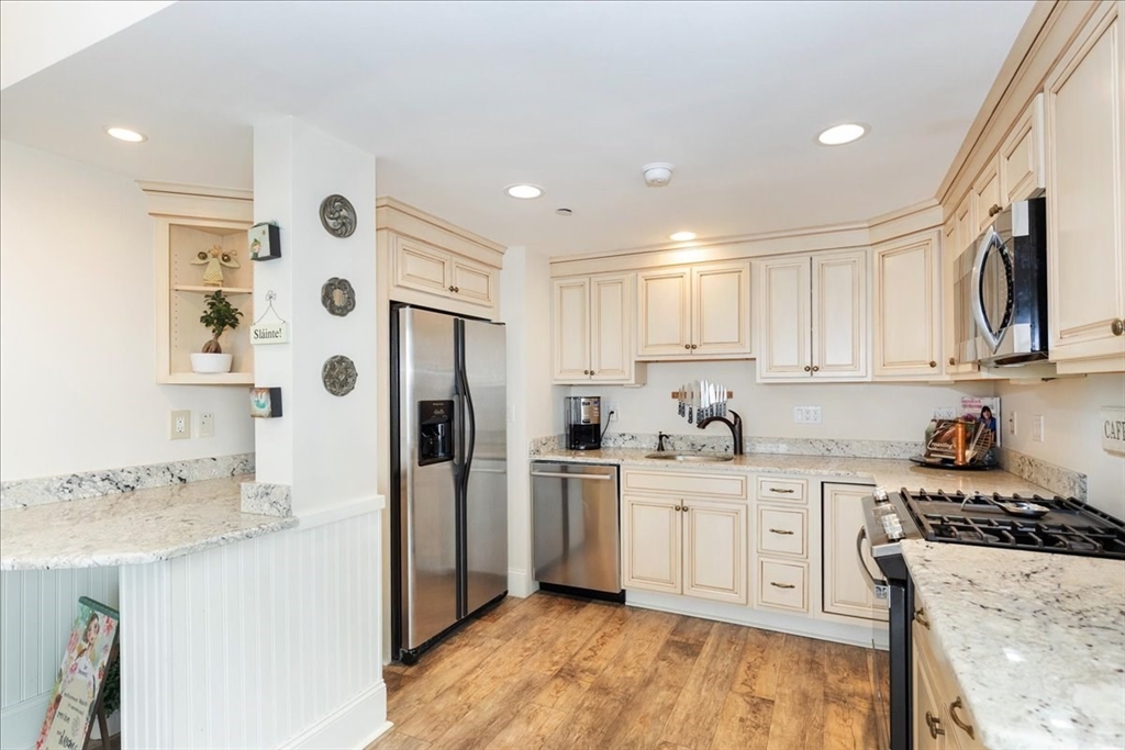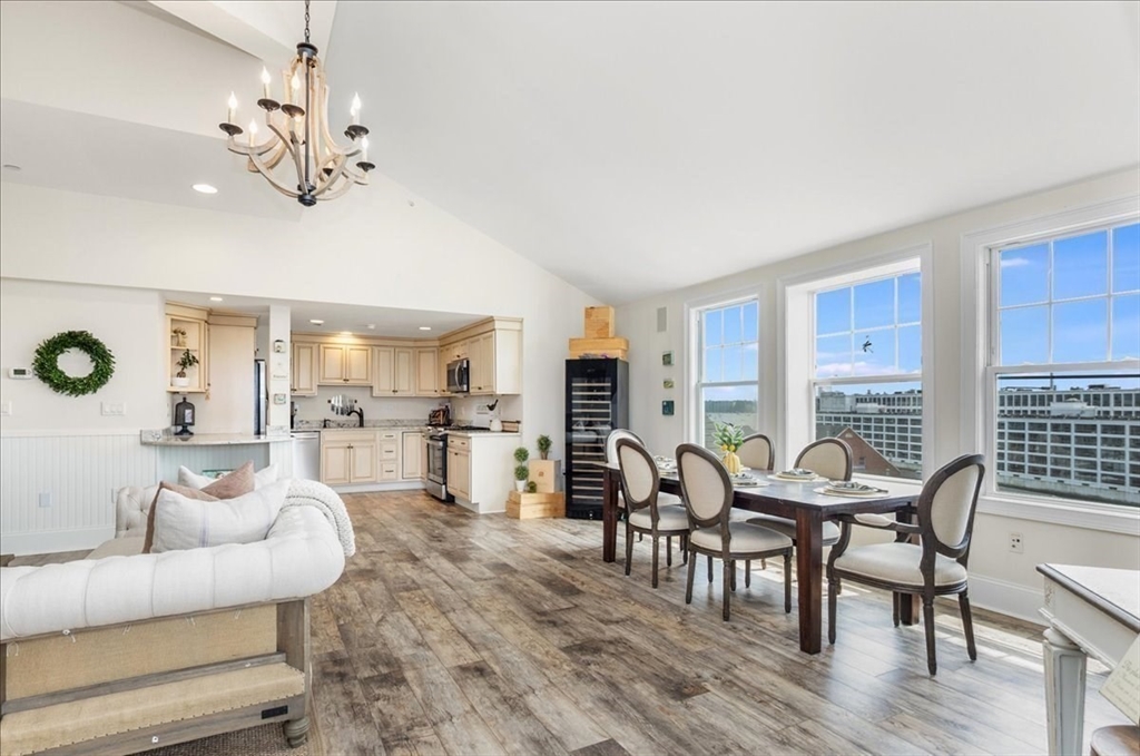 Stylish Penthouse with Harbor Views! Live the good life at Pickering Wharf in this sleek 2BR/2BA corner penthouse at the celebrated Salem Waterfront Hotel. This luxurious sun-splashed unit offers a lovely open floor plan with cathedral ceilings, gas fireplace and Juliet balcony overlooking vibrant city and harbor views. The designer granite and stainless kitchen flows into the bright living and dining space—perfect for entertaining. The primary suite features a large walk-in closet and a spacious private bath. Enjoy exclusive hotel amenities including a heated indoor pool, on-site dining and bar and patio access . Units are rarely offered at this highly desirable complex and deeded parking is included. Moments from historic downtown Salem, the PEM, commuter rail, ferry to Boston, and the best in dining, shopping, and seaside charm. Welcome to 225 Derby Street—where every day feels like a getaway.