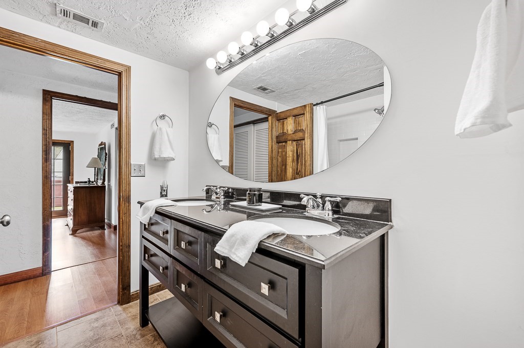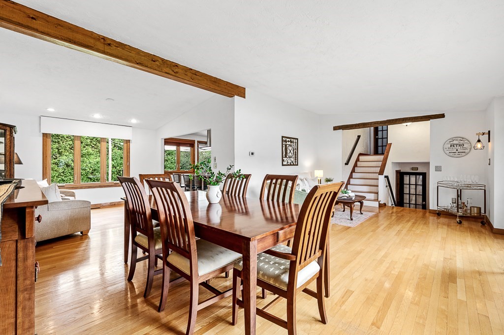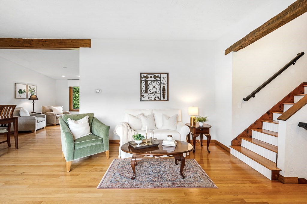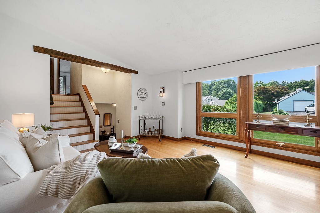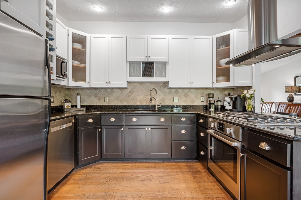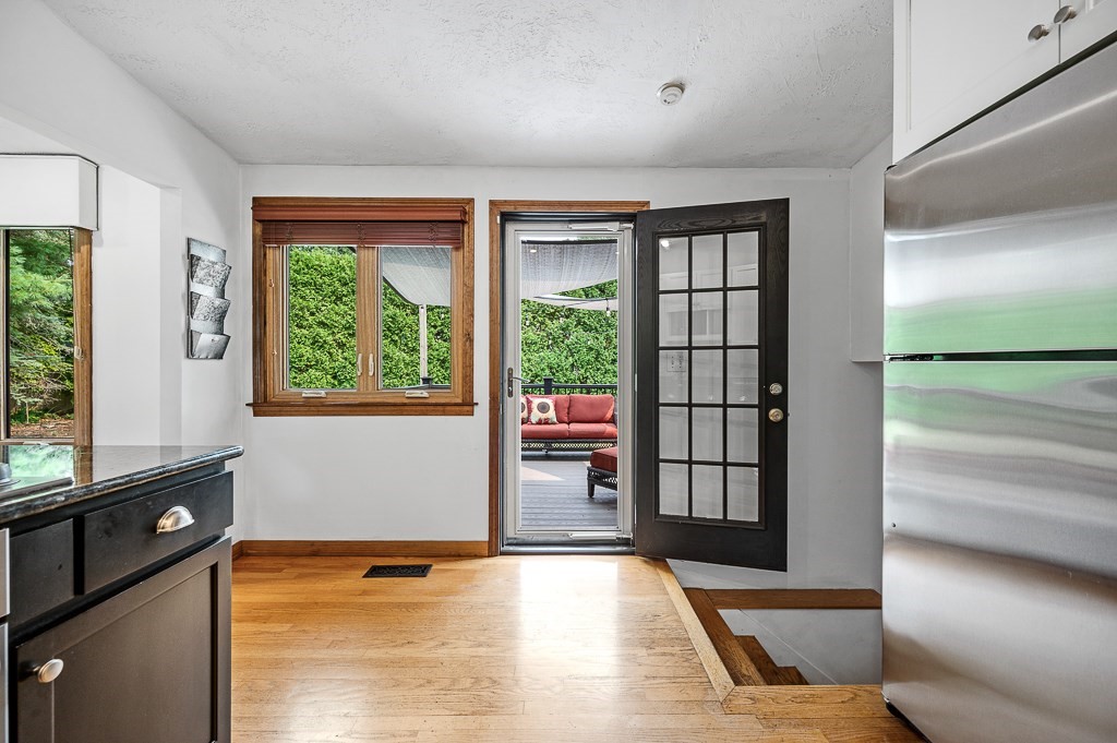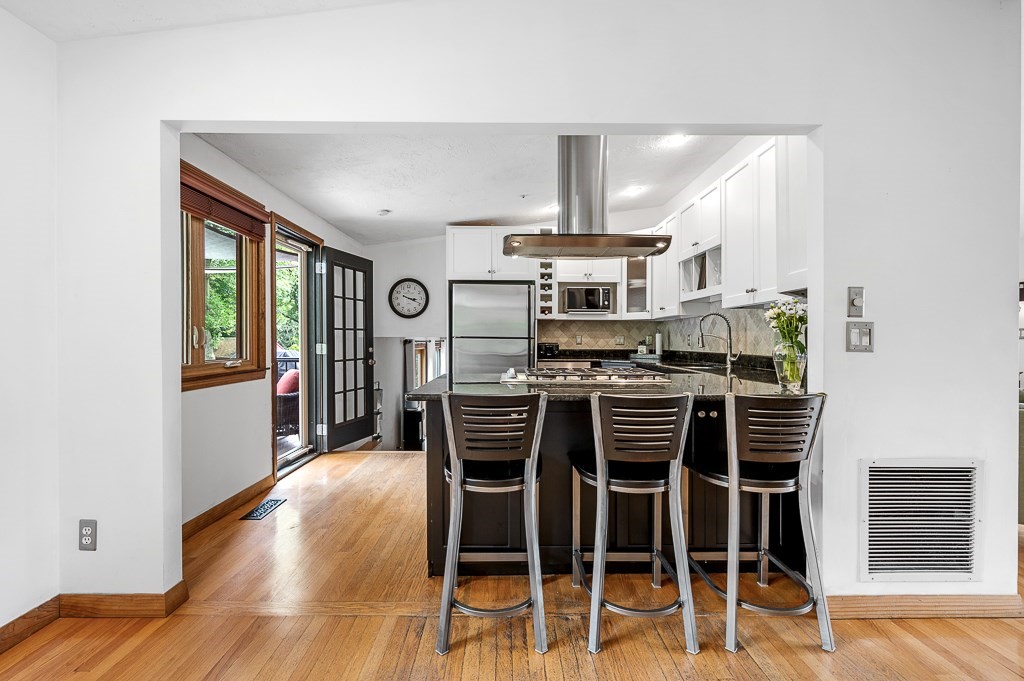 Escape the ordinary in this well-maintained tri-level contemporary! Designed for daily comfort & easy entertaining, you'll discover a flexible open floor plan with stylish updates. The tile foyer leads into a spacious family room perfect for movie nights or cozying up by the gas fireplace. A half flight up, the main level offers hardwood floors in the sun-filled living & dining rooms as well as the tastefully remodeled kitchen w/custom cabinetry, granite counters, tile backsplash, & a gas stove w/oversized vent hood ideal for home chefs. The top floor features 3 bedrooms, inc. a spacious master suite w/dual closets, updated bath w/walk-in tile shower, & access to a private balcony. Head out to the young, tiered composite deck overlooking a level yard, paver patio, & firepit to enjoy camaraderie by, then fire up the direct-line gas grill for a burger. A newer roof (2022), central air, 5-zone irrigation system, heat pump, & thoughtful upgrades throughout make this one move-in ready!