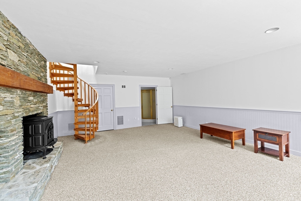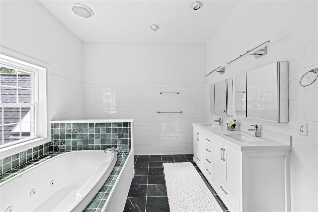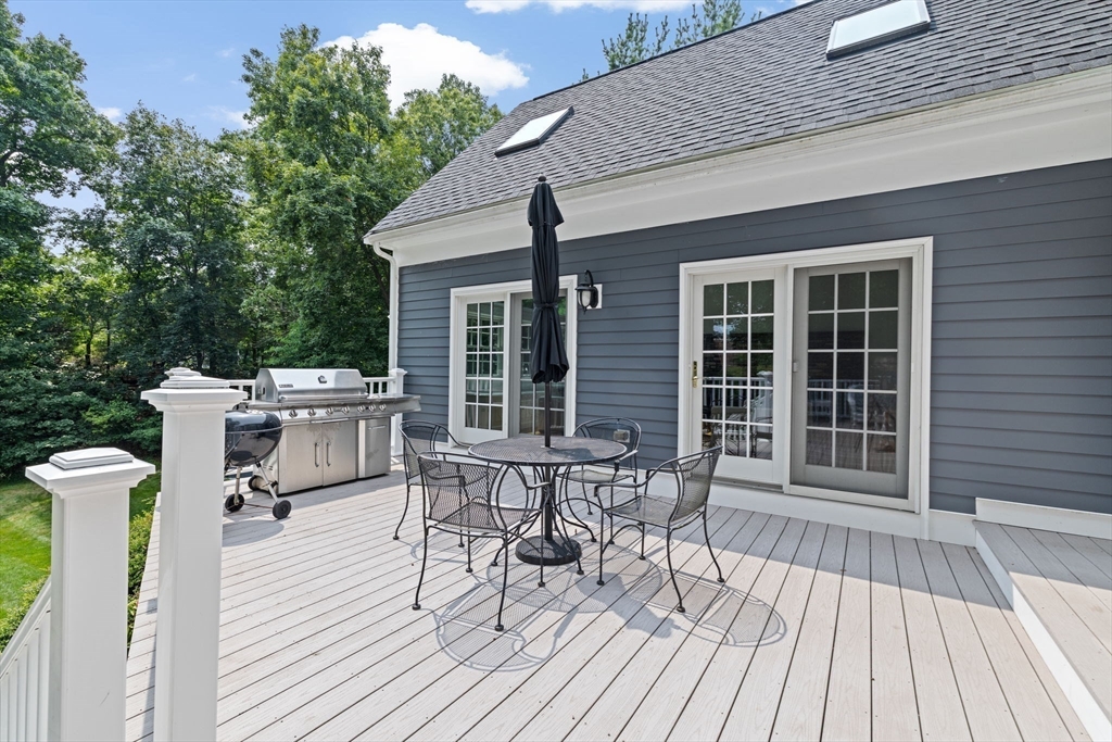 Welcome to your private estate retreat, set on a spectacular lot behind East Elementary School. This stately Colonial offers timeless elegance, privacy, and a prime Hingham location. A two-story foyer leads to a sunlit kitchen with breakfast nook, flowing into a cathedral-ceiling family room with a wood-burning fireplace and views of the beautifully landscaped backyard. The main level features a formal living room, dining room, home office with built-ins, and laundry. Upstairs, a stunning landing with built-ins and a dramatic window overlooks the circular driveway. The spacious primary suite includes a sitting area with fireplace, walk-in closet, and en suite bath. Three additional bedrooms and full bath complete the second floor. The walk-out lower level offers a full bath and bonus space ideal for a playroom. A 3-car garage and private path to East Elementary complete this exceptional home, just minutes to Hingham Harbor, library, and train. Open House Fri 10-12 and Sat 11-1
